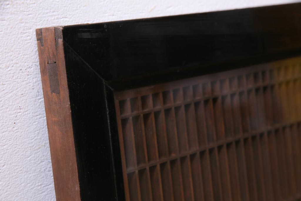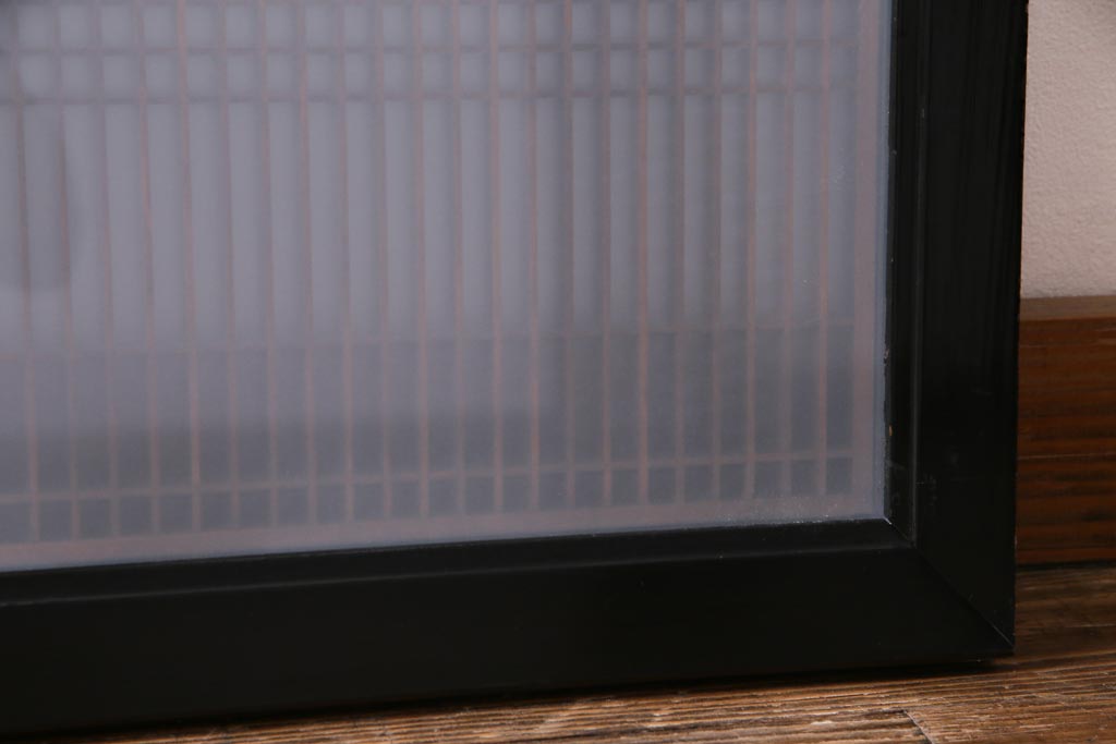 昭和中期 両面ガラス入り 漆塗りのフレームに繊細な組子が映える欄間(明り取り、ディスプレイ)です。