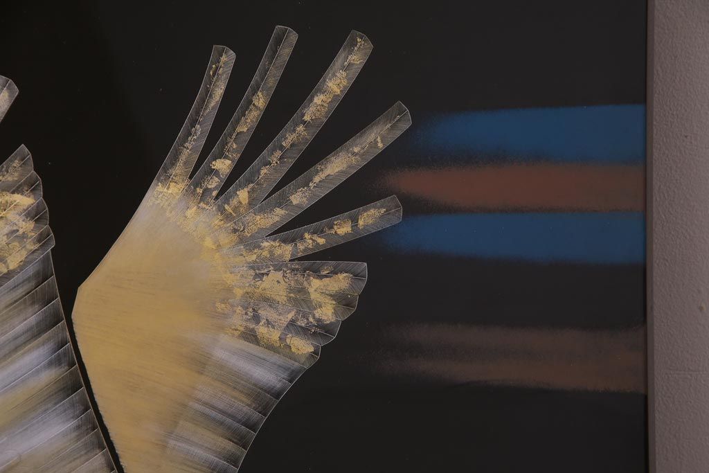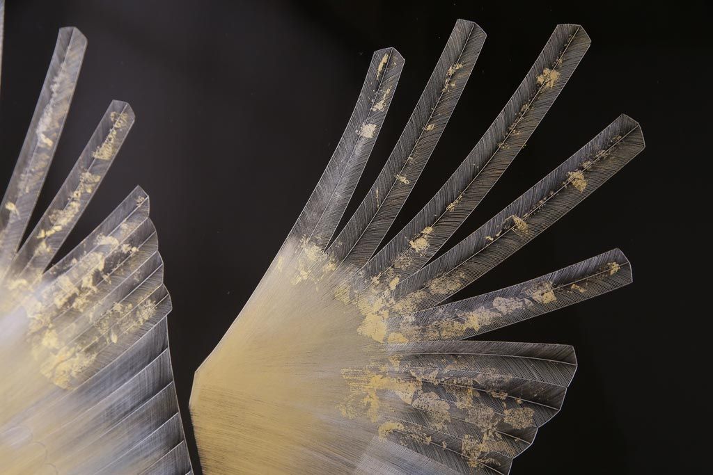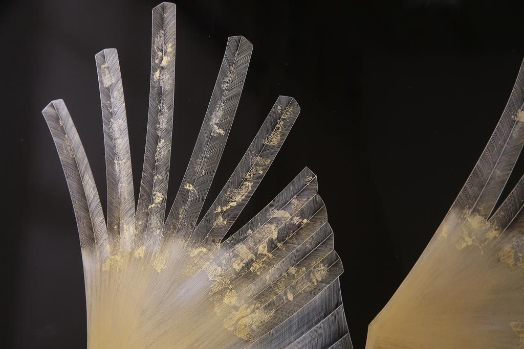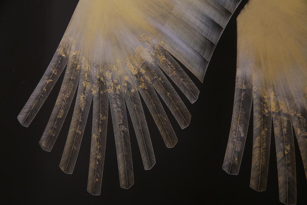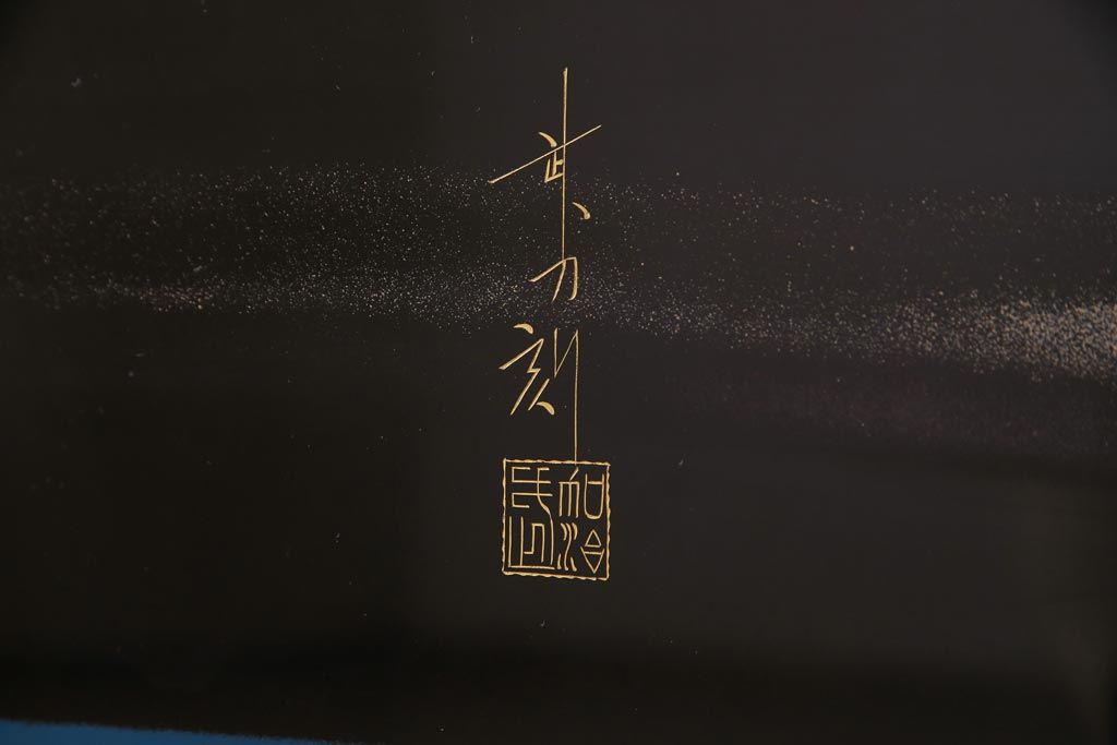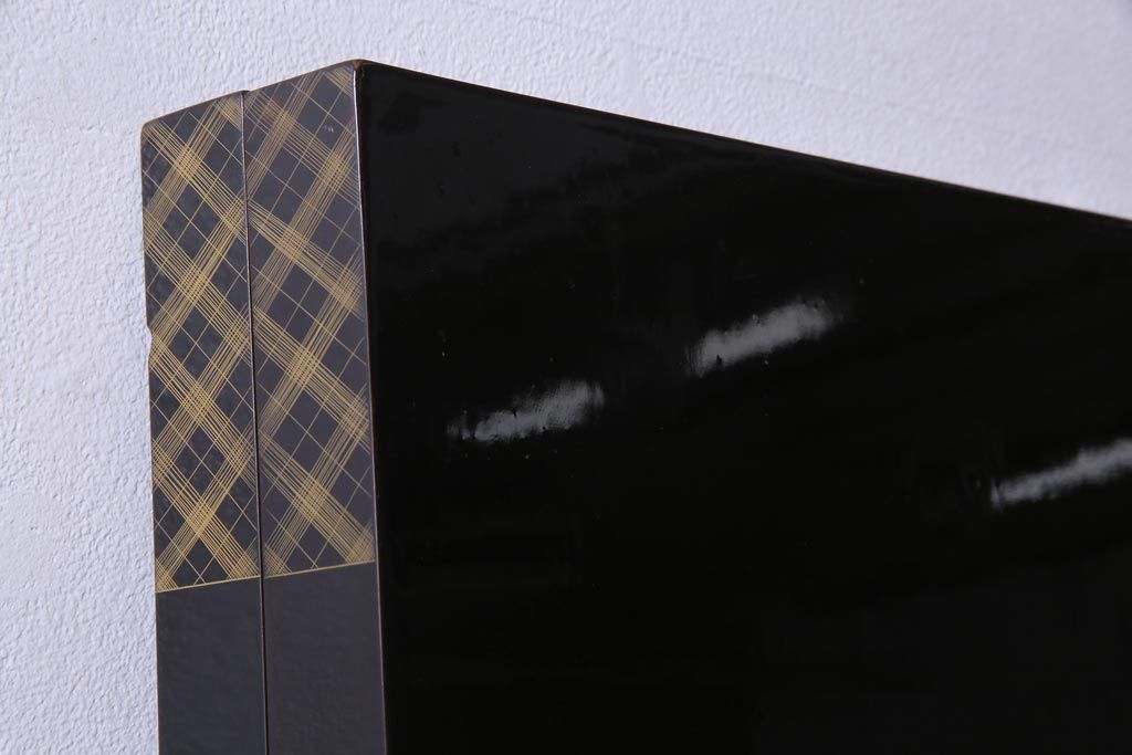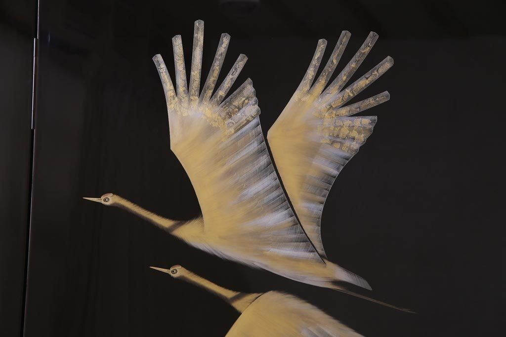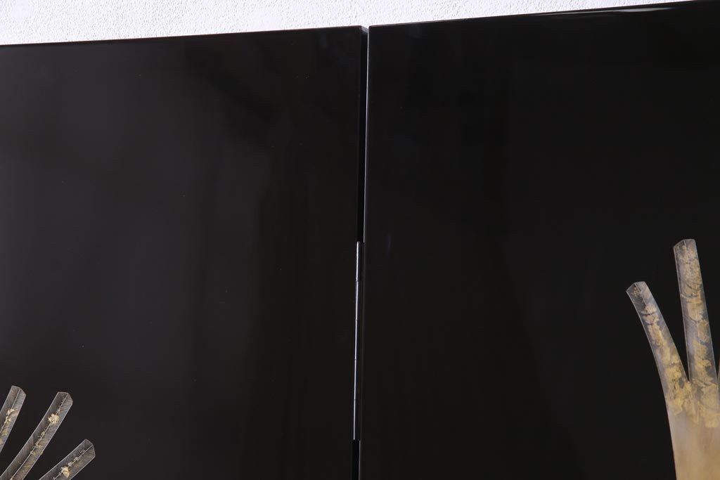 中古 日展作家 加治武 大作 輪島塗 沈金 翔鶴図 透けるような繊細さと躍動感が目を引く衝立(つい立て)