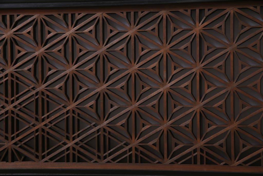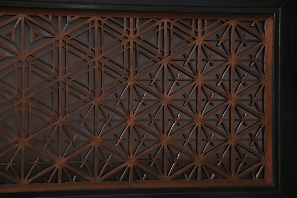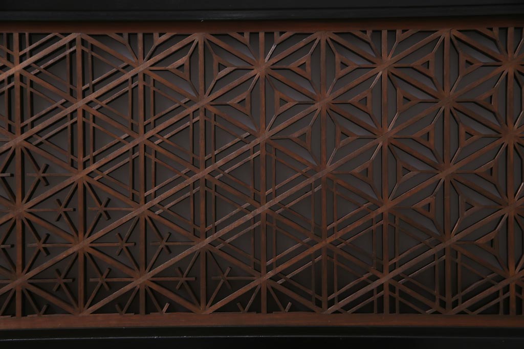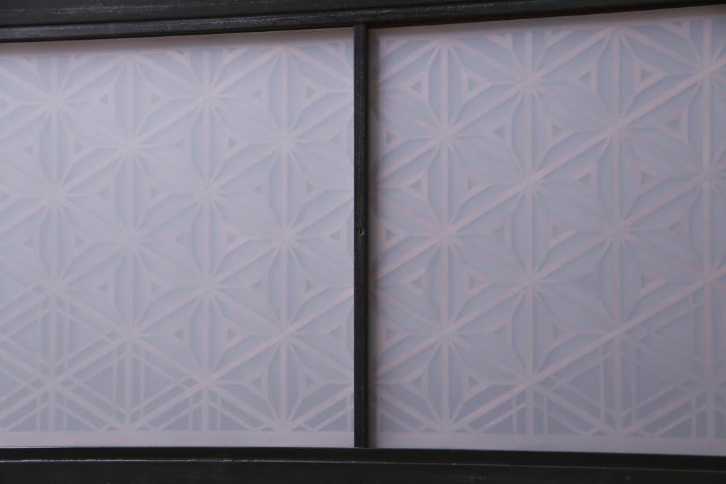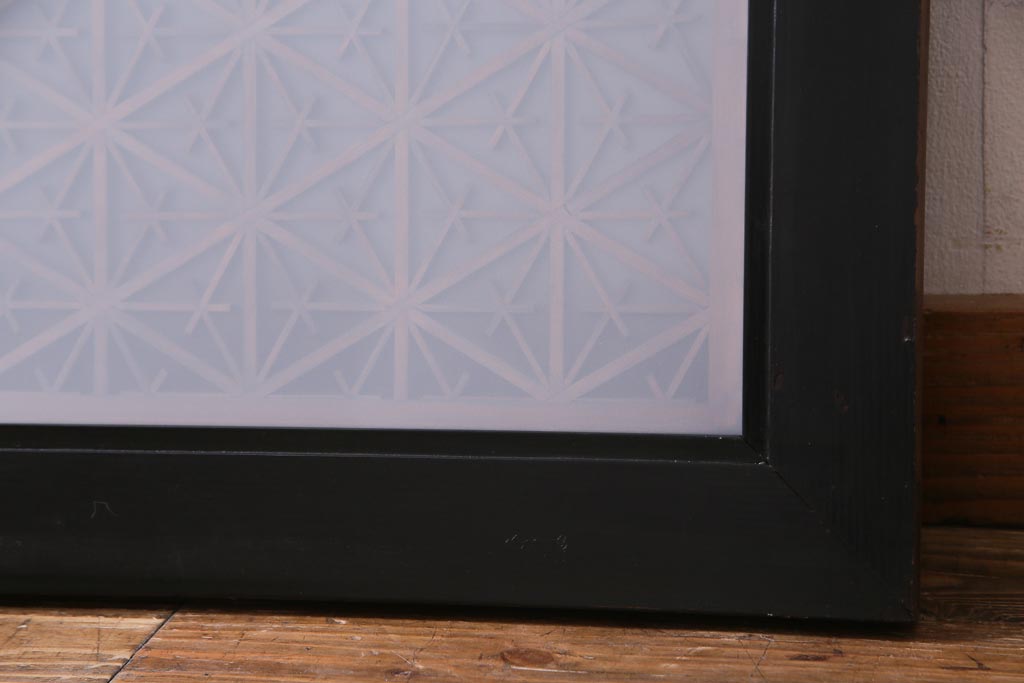 和製アンティーク すりガラス入り 組子と漆塗りが上品な雰囲気醸し出す欄間(ディスプレイ、明り取り)