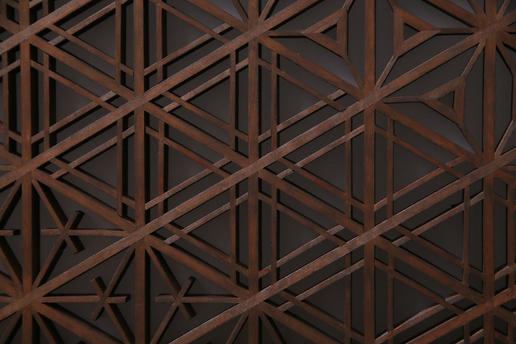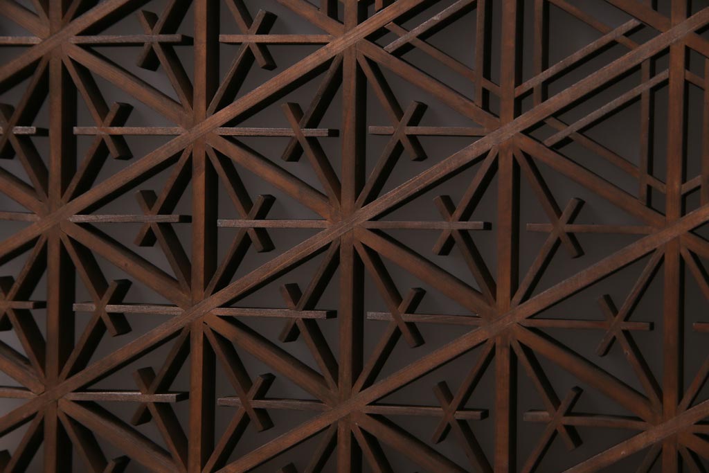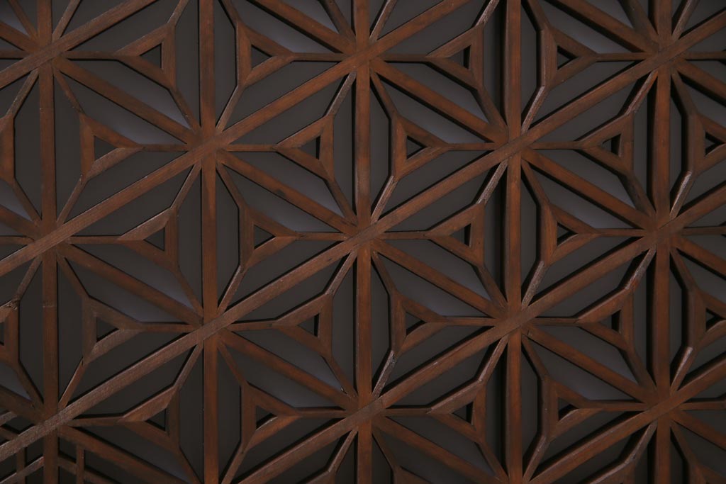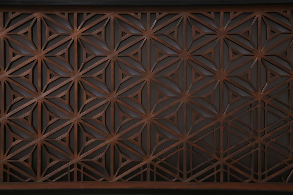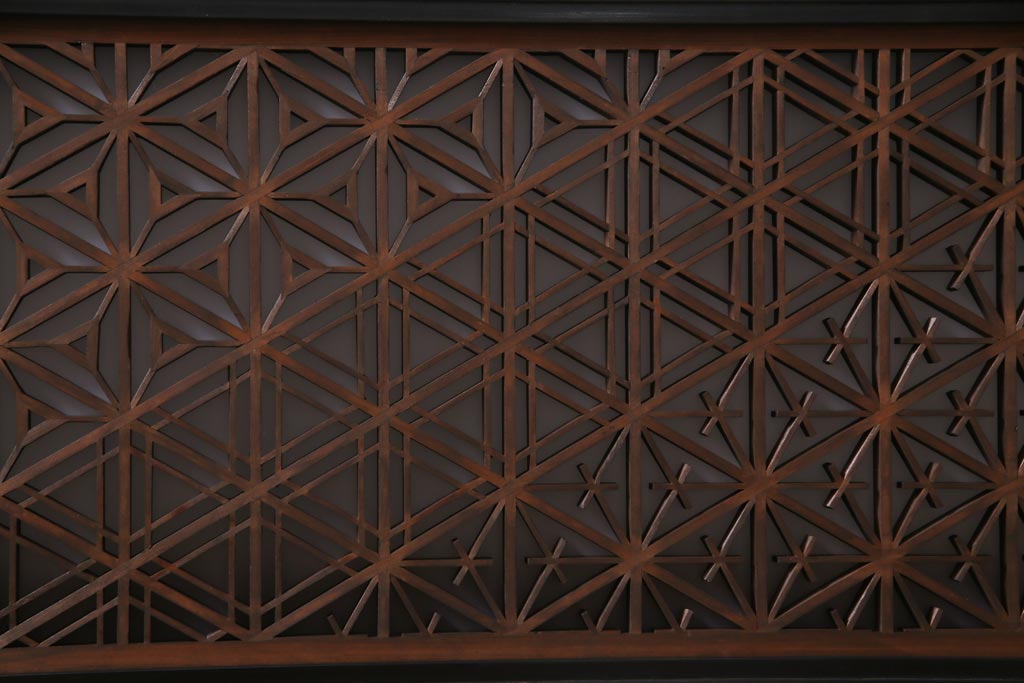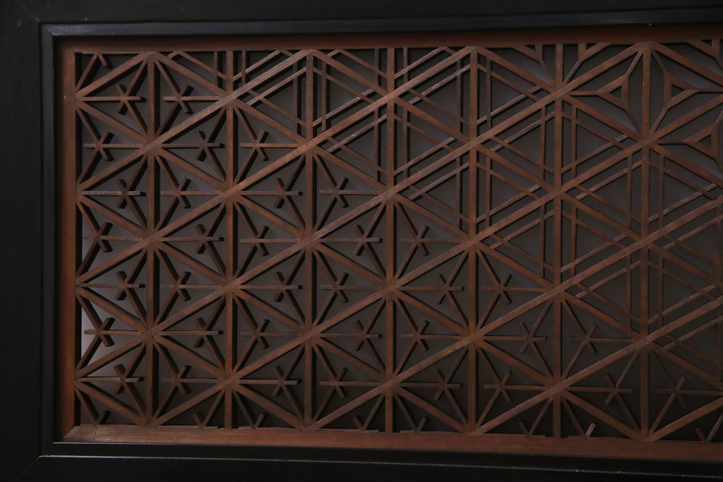 和製アンティーク すりガラス入り 組子と漆塗りが上品な雰囲気醸し出す欄間(ディスプレイ、明り取り)