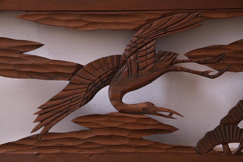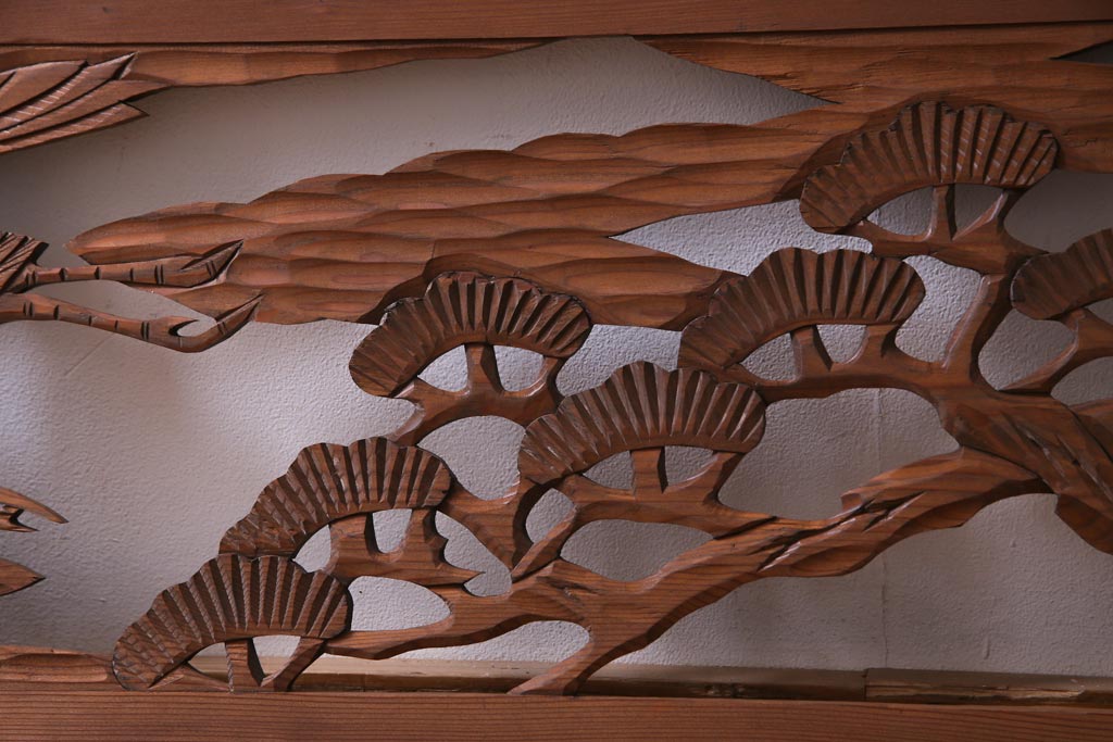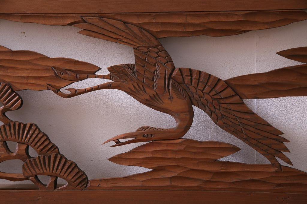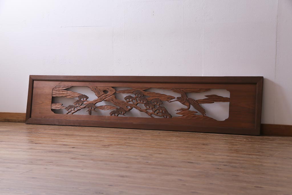 昭和初期 鶴と松 特大 吉祥モチーフが和の雰囲気盛り上げる欄間(明り取り、ガラス無し)