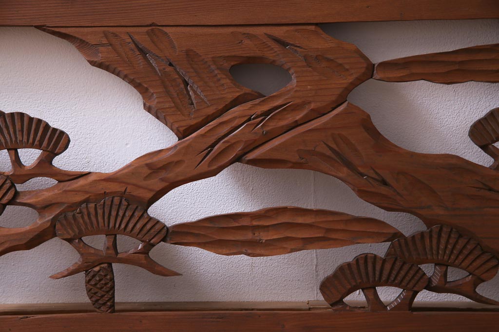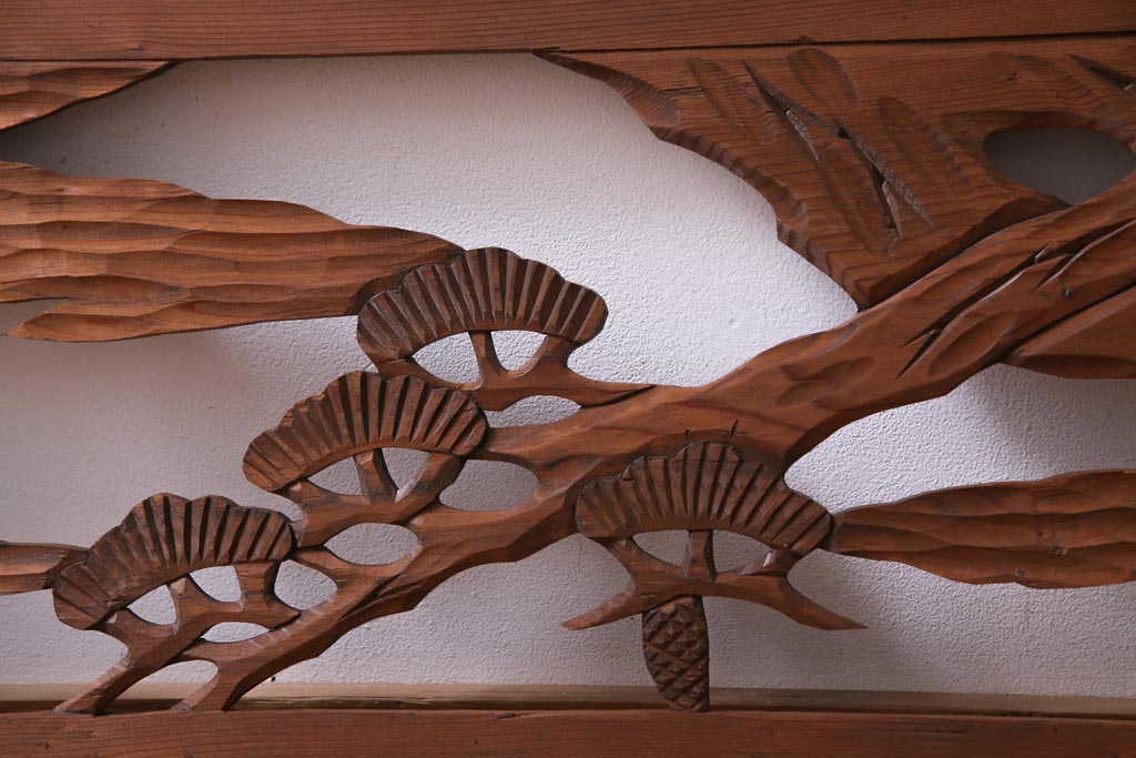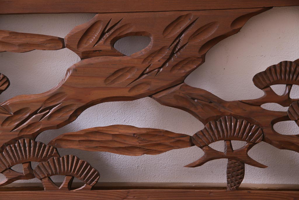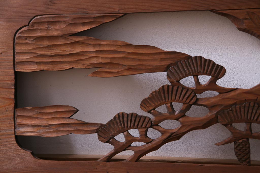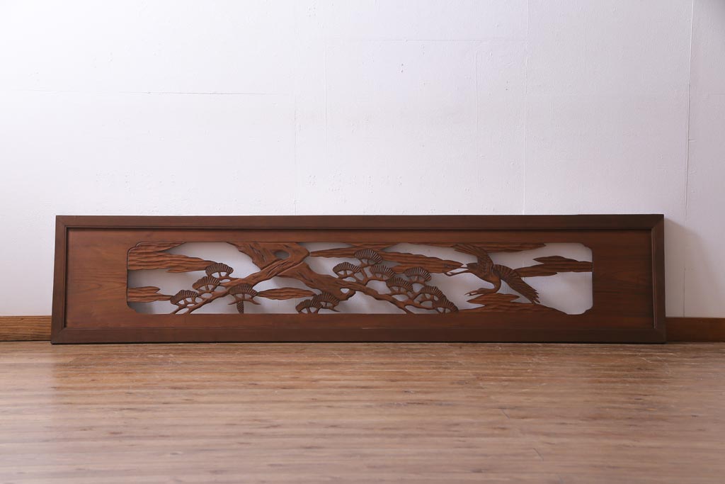 昭和初期 鶴と松 特大 吉祥モチーフが和の雰囲気盛り上げる欄間(明り取り、ガラス無し)