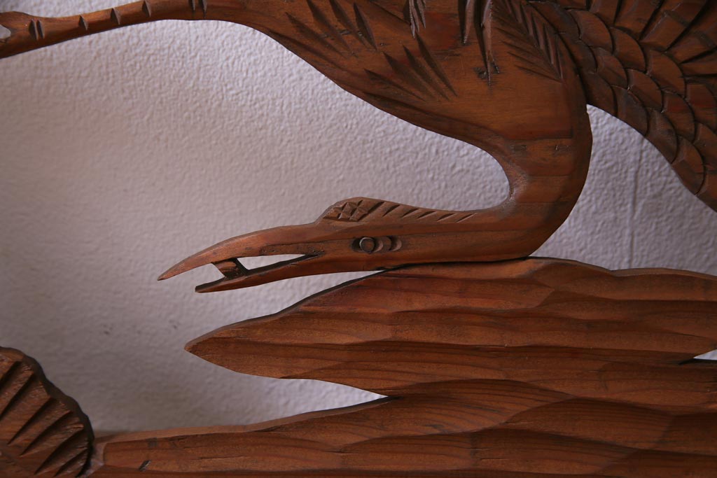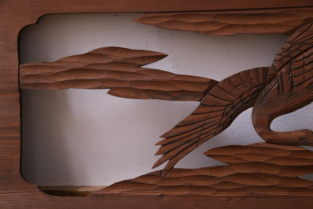昭和初期 鶴と松 特大 吉祥モチーフが和の雰囲気盛り上げる欄間(明り取り、ガラス無し)です。