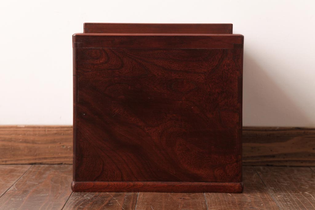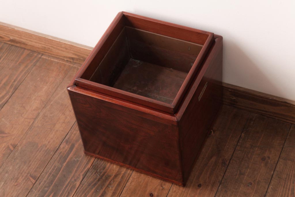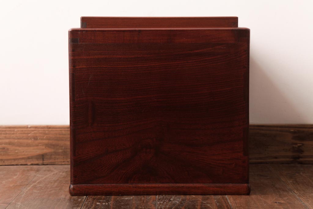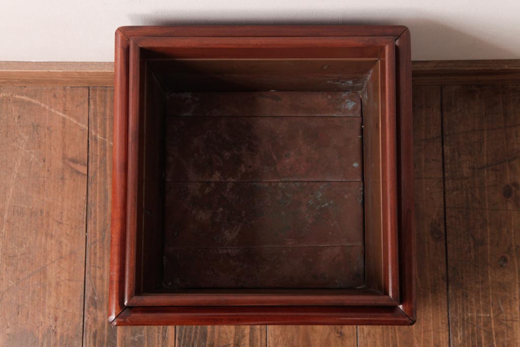 火鉢> 木製火鉢 > アンティーク雑貨 和製アンティーク ケヤキ材 シンプルながらも気品を感じる漆塗りの角火鉢(手あぶり、箱火鉢)(1)