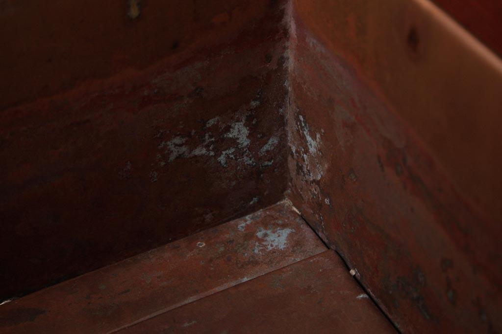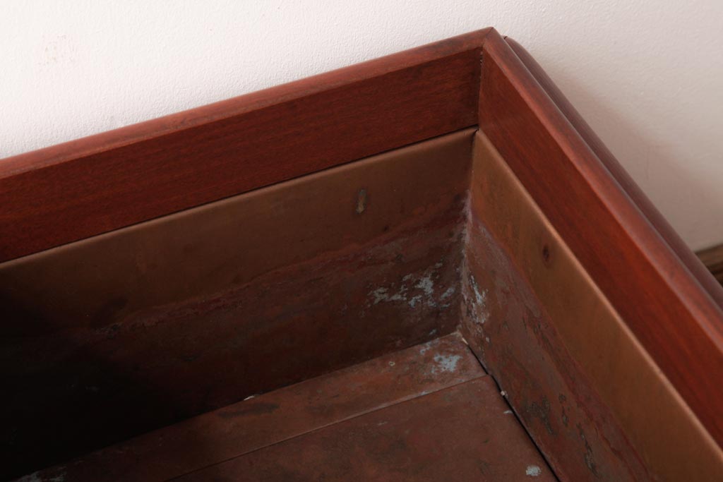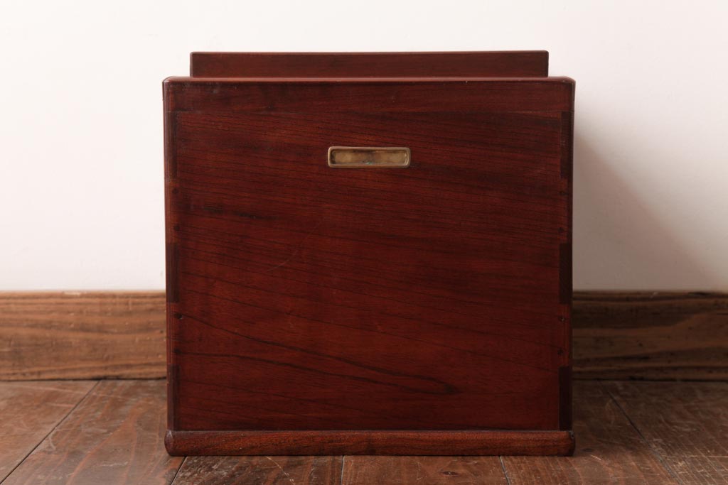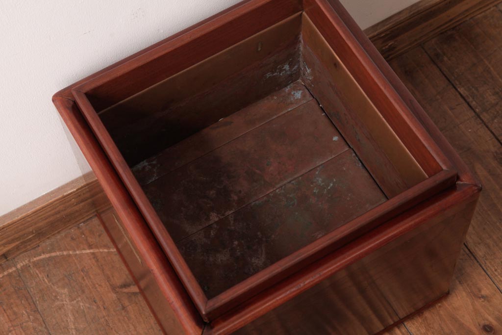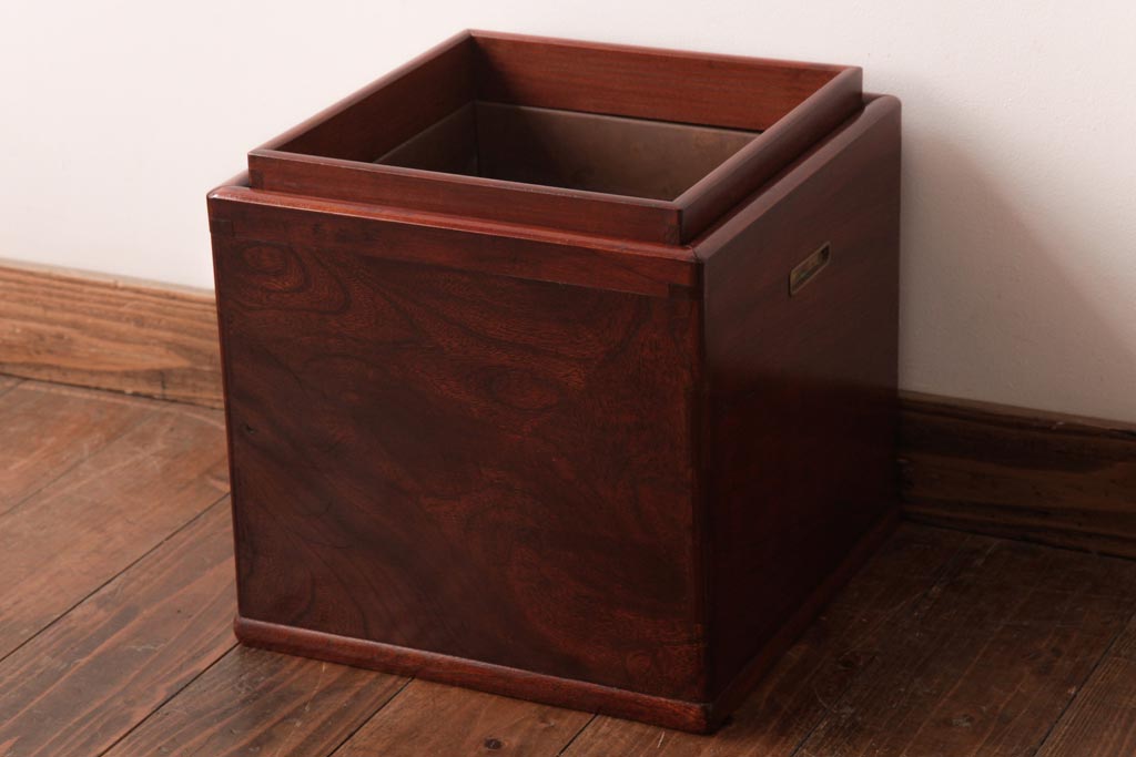 火鉢> 木製火鉢 > アンティーク雑貨 和製アンティーク ケヤキ材 シンプルながらも気品を感じる漆塗りの角火鉢(手あぶり、箱火鉢)(1)