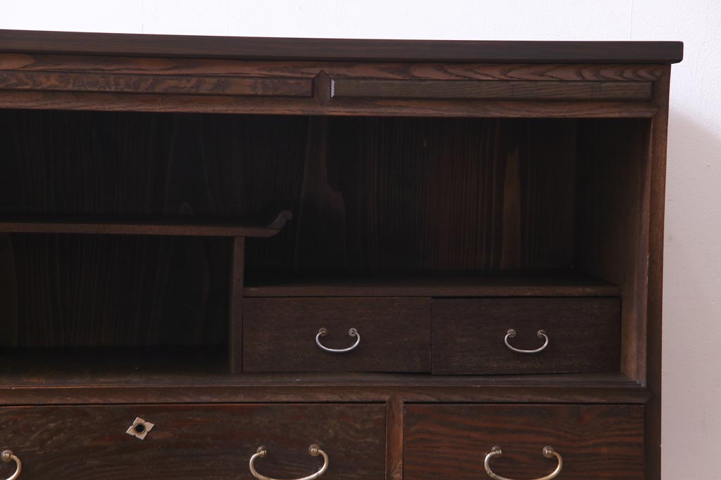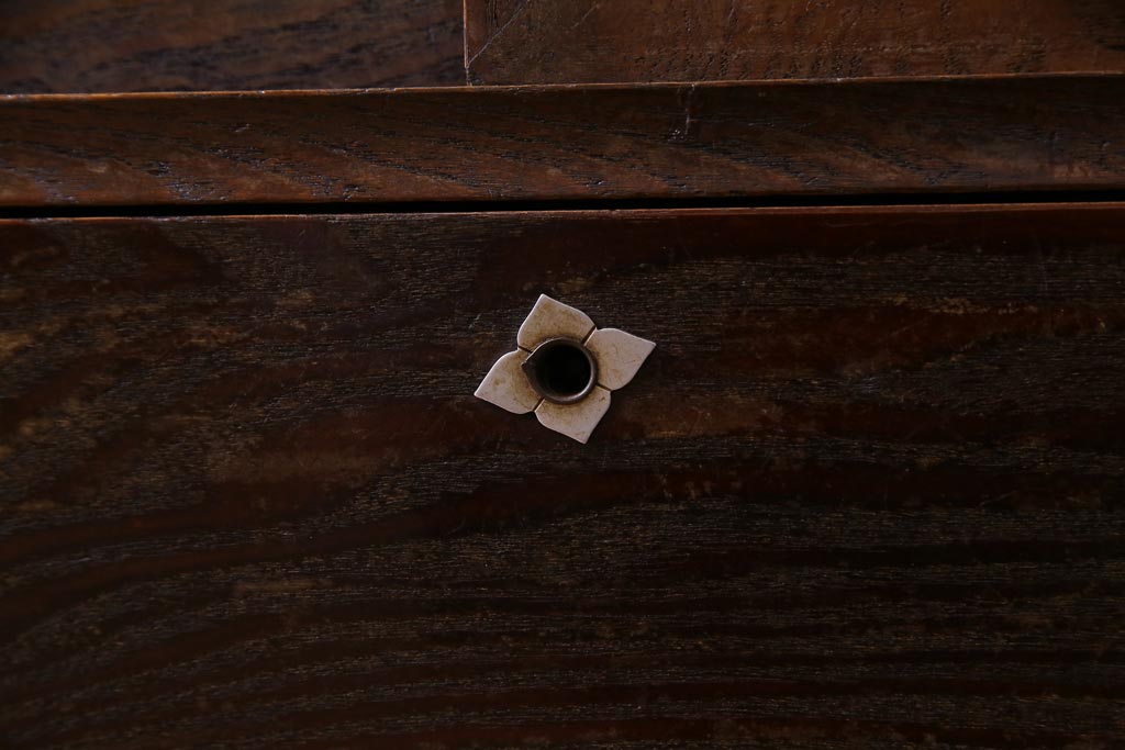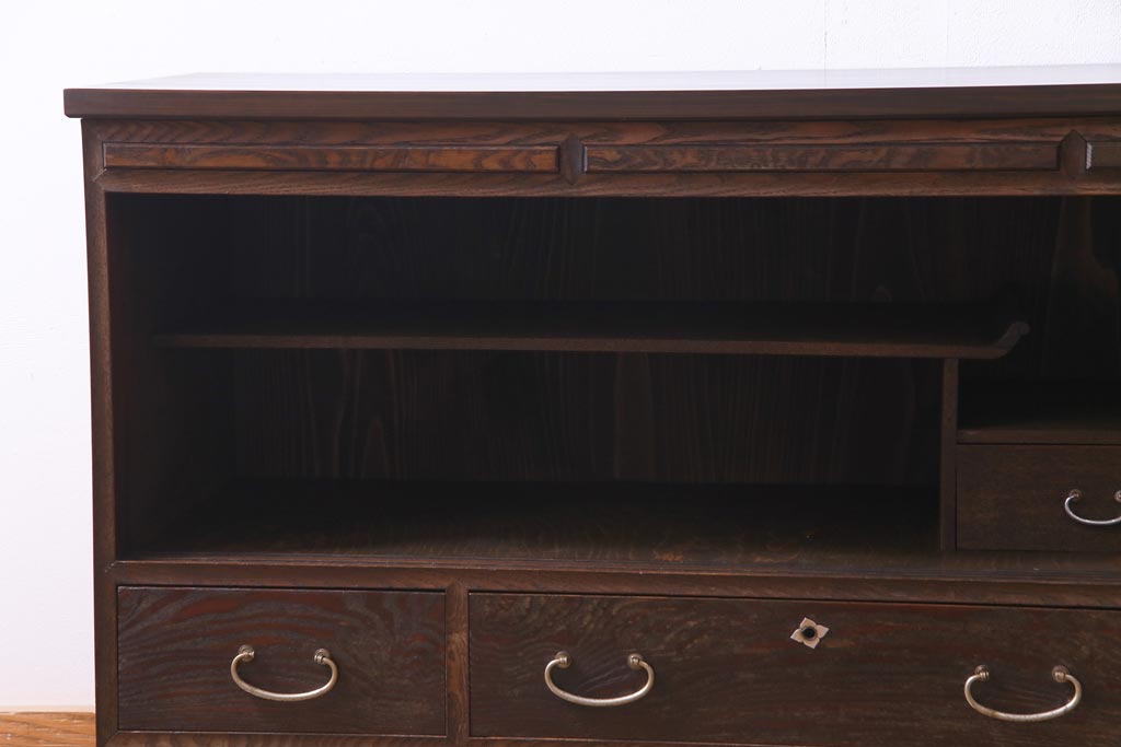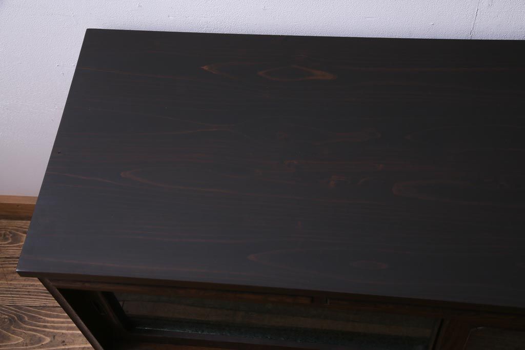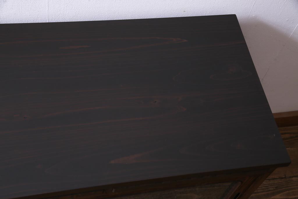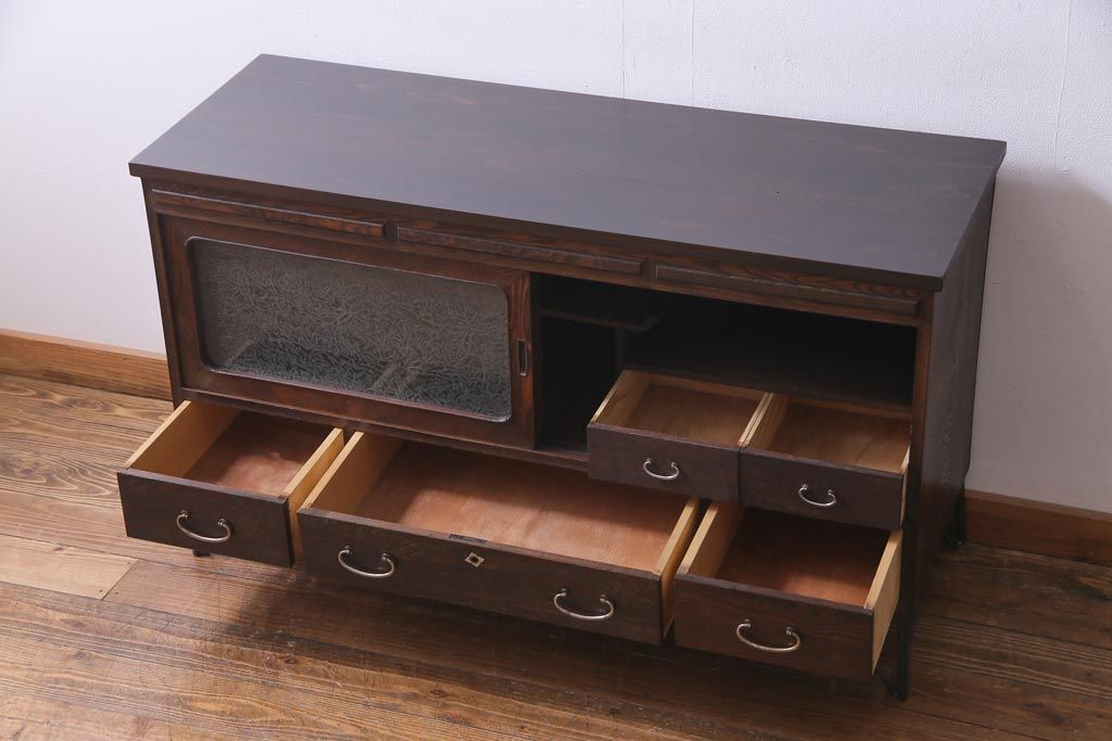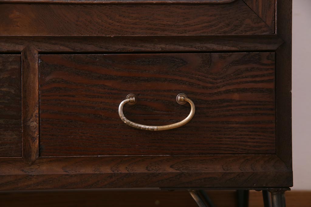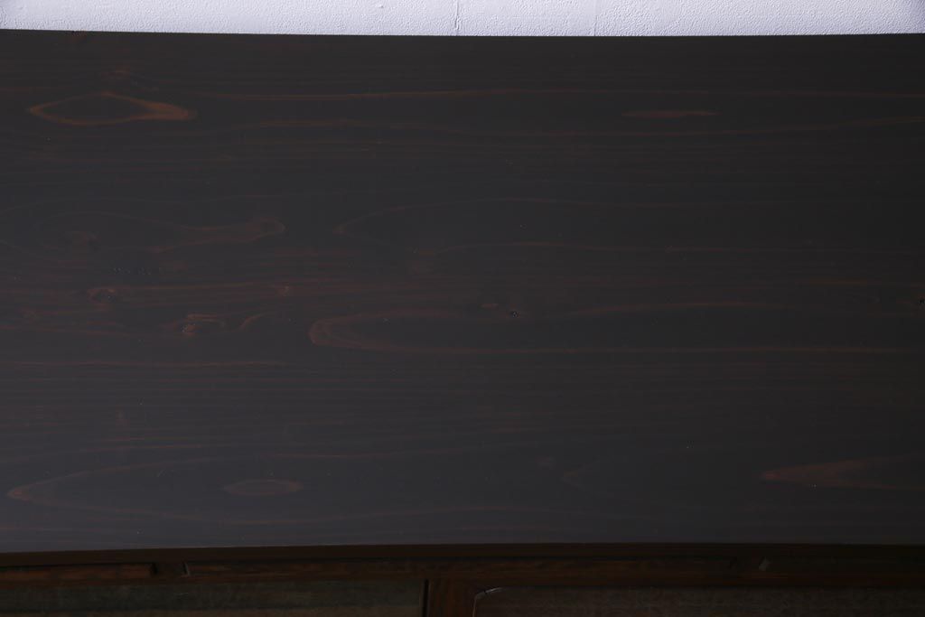 レトロ家具 昭和レトロ 前面桑材 鉄脚付リメイク 趣きある木味が魅力的なリビングボード(ローボード、戸棚、収納棚)