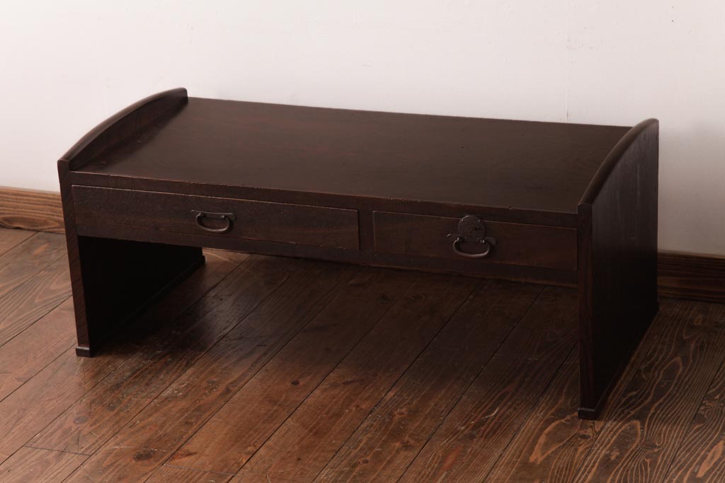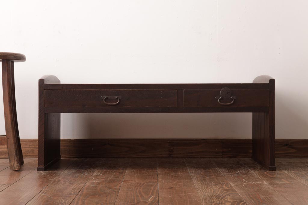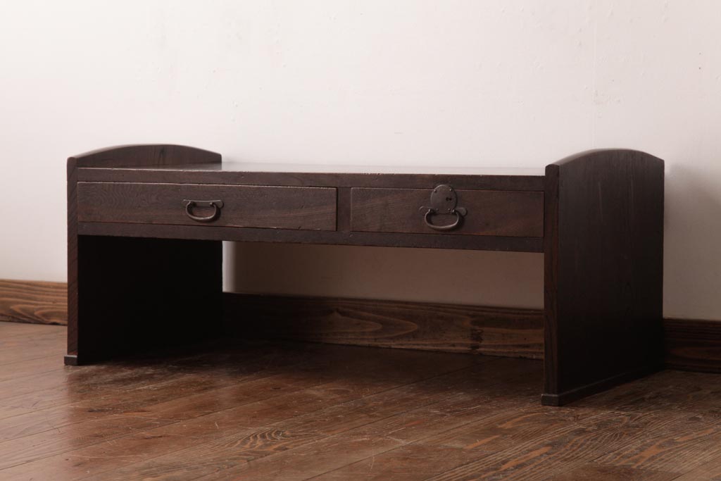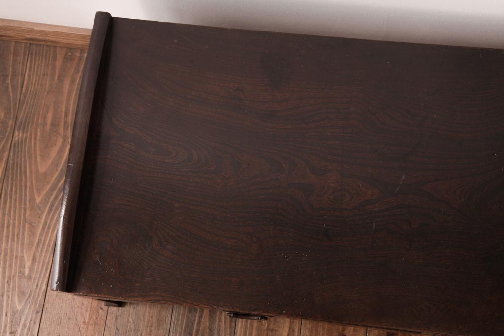 アンティーク家具 明治大正期 総ケヤキ材 重厚な質感と味のある杢目が魅力の文机(ローテーブル)