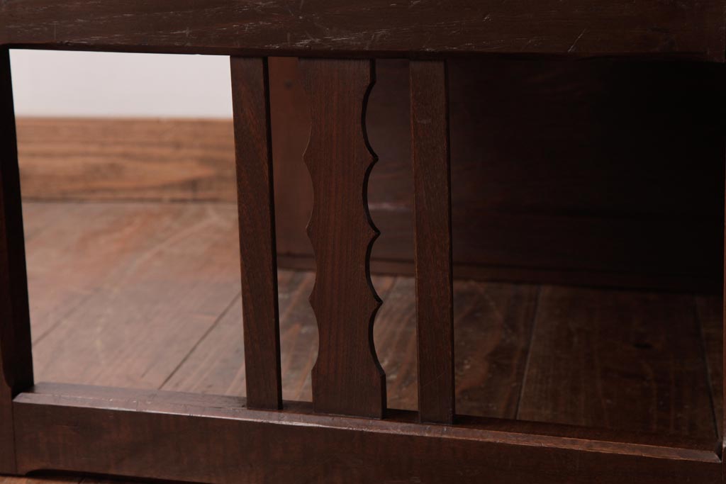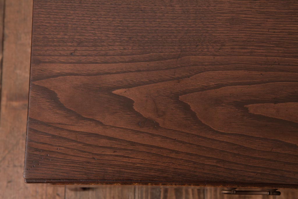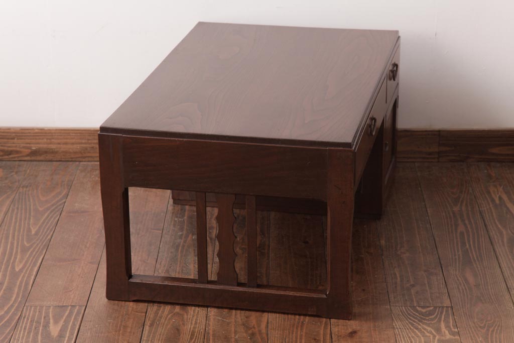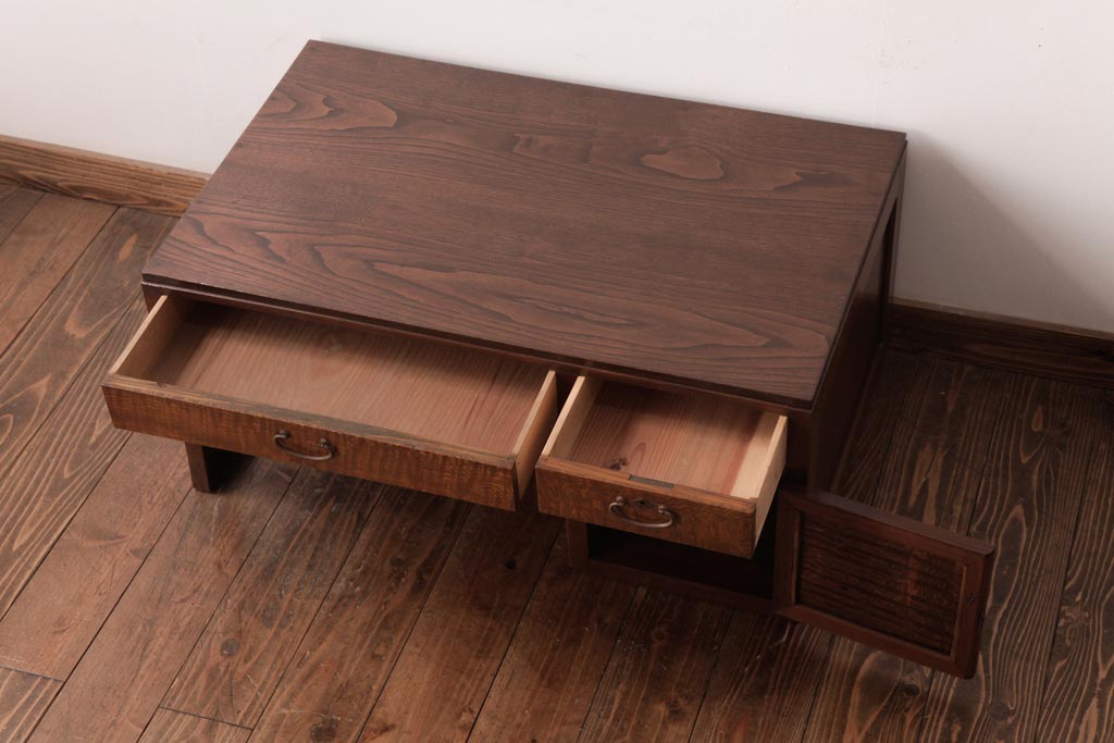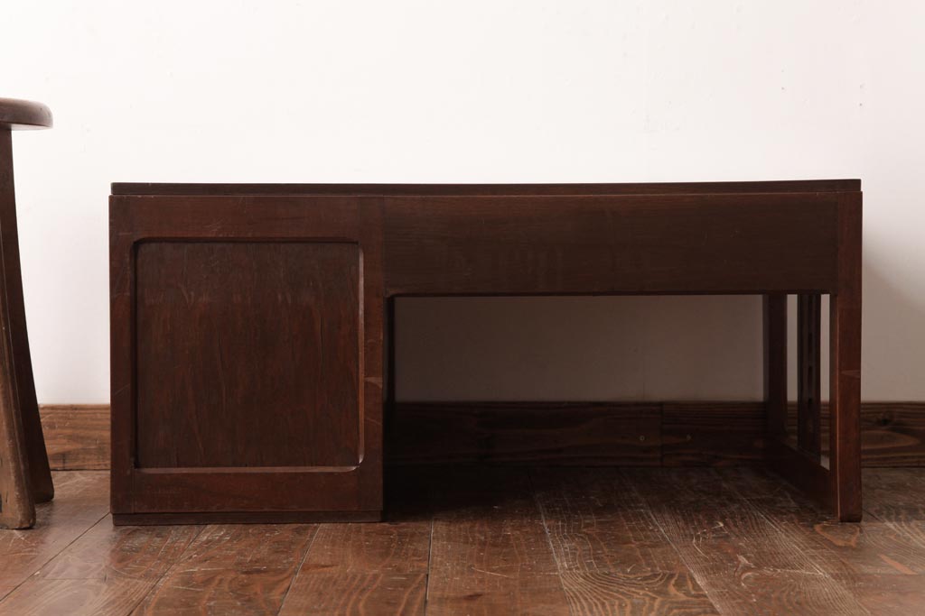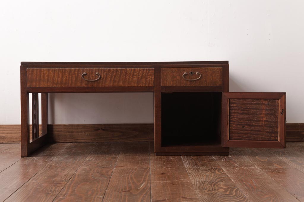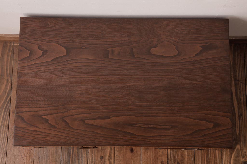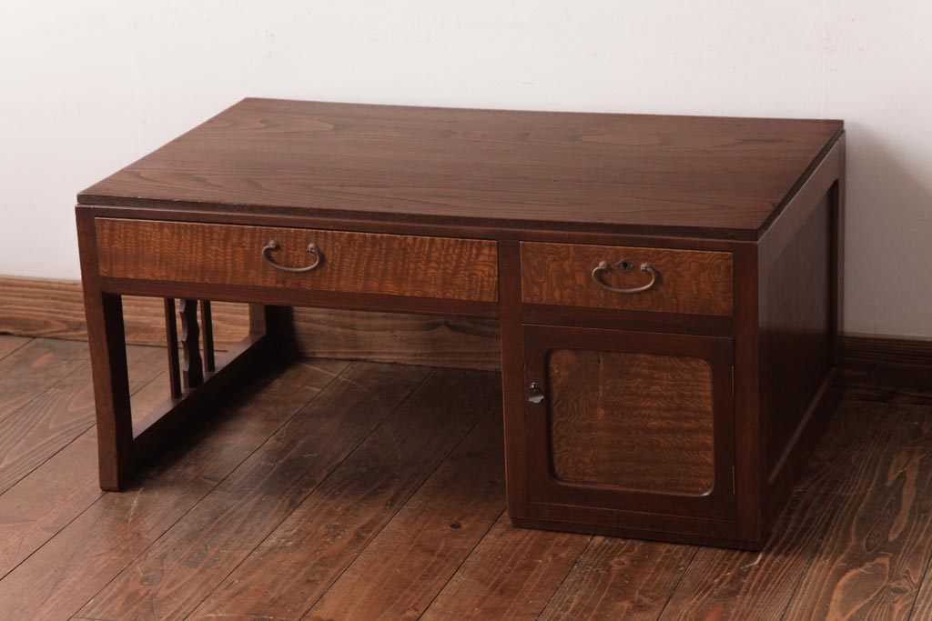 和製アンティーク タモ・栗材 木目がアクセントになっている片袖机(文机、ローテーブル)です。