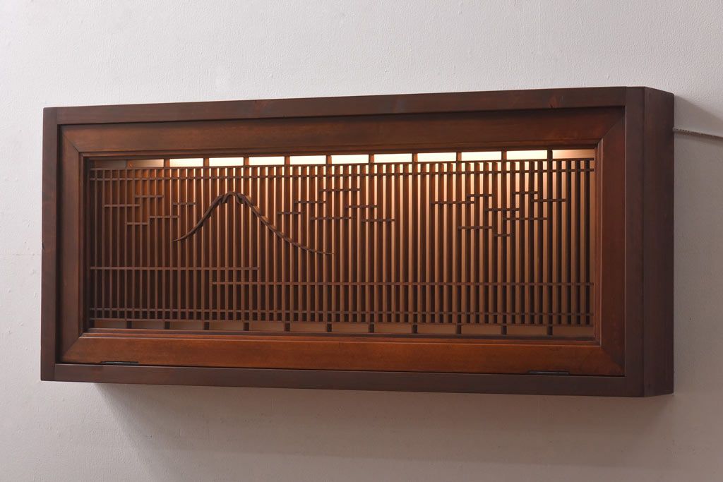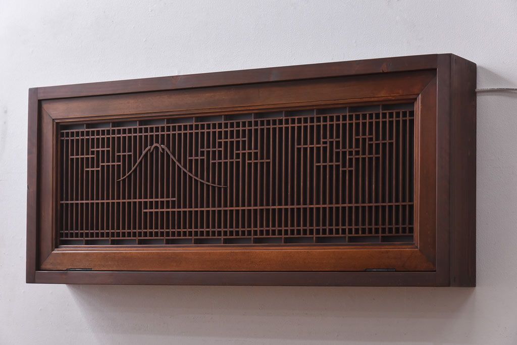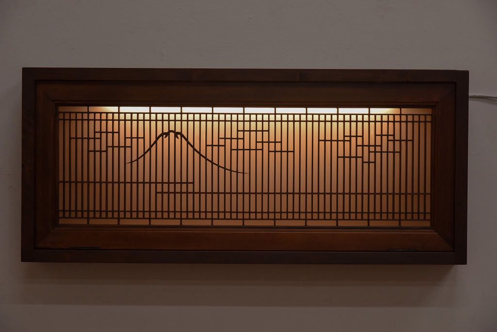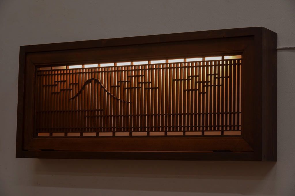 ラフジュ工房オリジナル 古建具リメイク 片面ガラス 富士が素敵な組子欄間の壁付け照明(ウォールランプ)