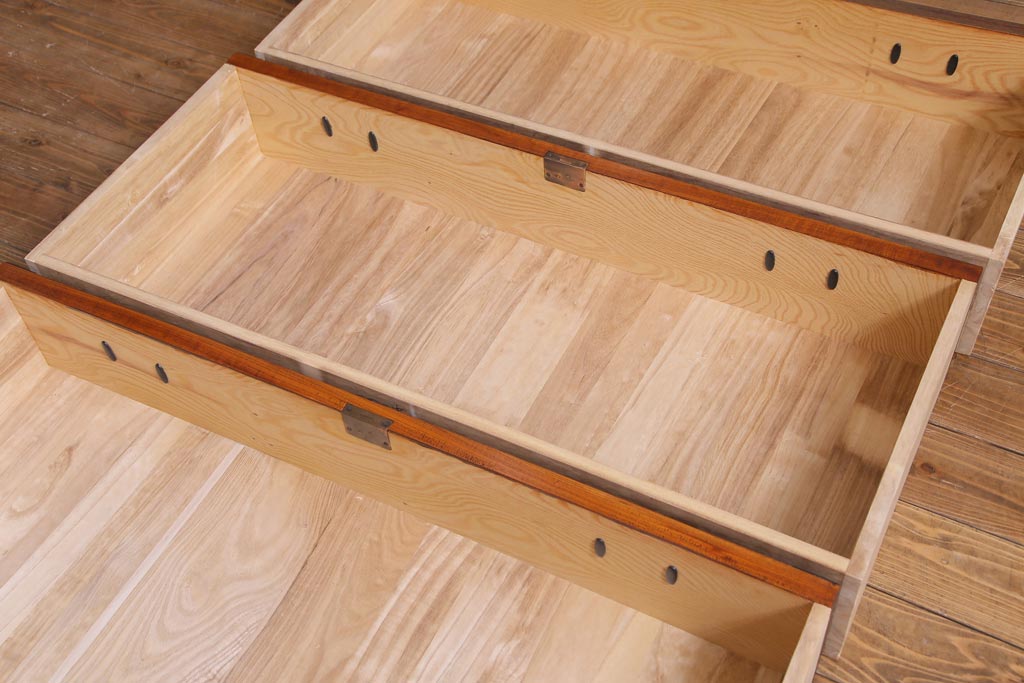 ラフジュ工房> 民芸家具 > 伝統民芸 岩谷堂箪笥 天板リメイク・栗無垢材 迫力ある杢目が存在感を放つ衣装箪笥(リビングボード、チェスト)