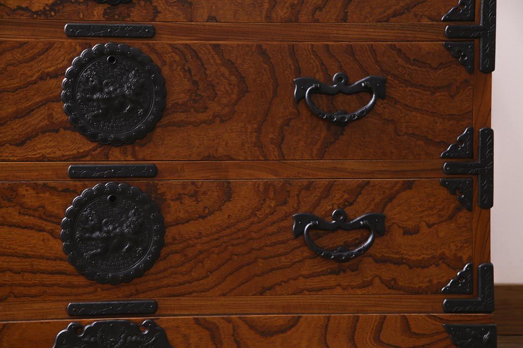 ラフジュ工房> 和箪笥> 衣装箪笥 > 伝統民芸 岩谷堂箪笥 天板リメイク・栗無垢材 迫力ある杢目が存在感を放つ衣装箪笥(リビングボード、チェスト)
