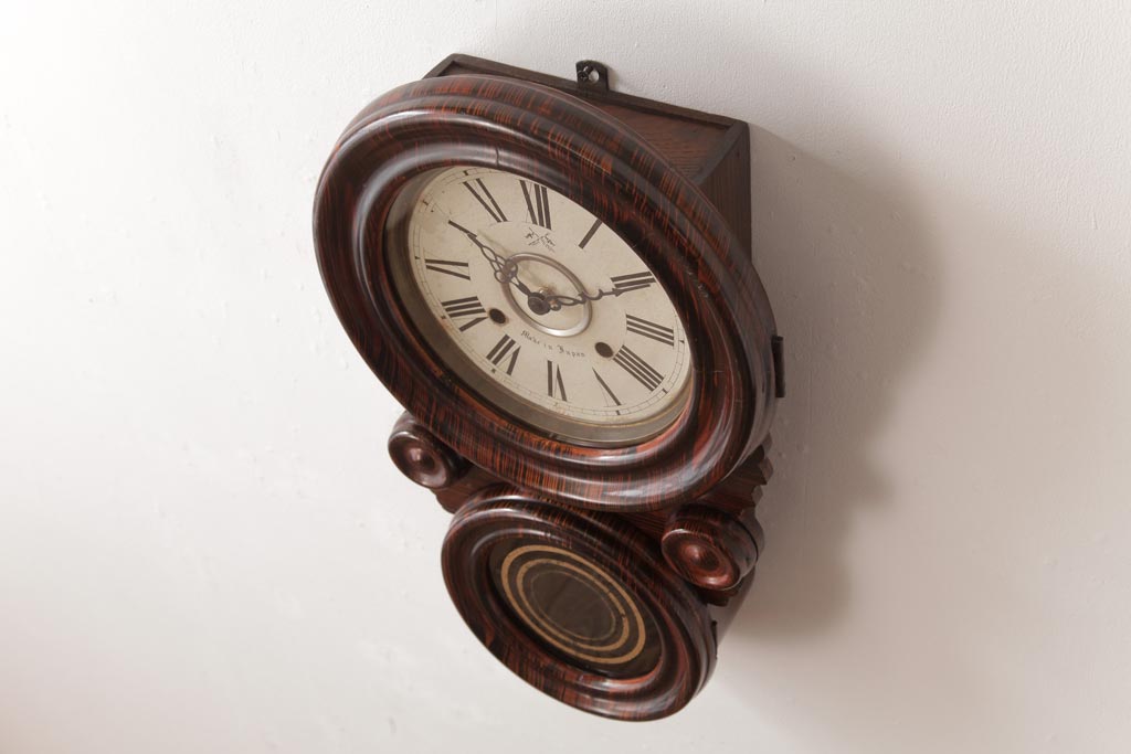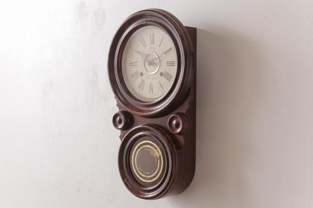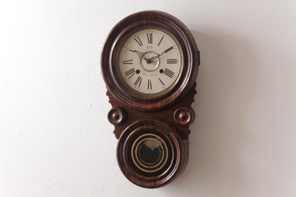 時計> 掛け時計 > アンティーク雑貨 和製アンティーク タカノ(高野精密工業) 内部交換済・電池式 四ツ丸 だるま時計(掛け時計、柱時計)
