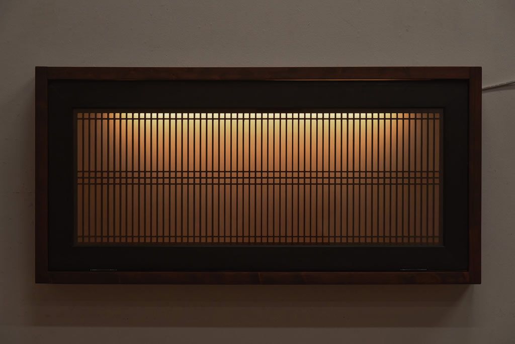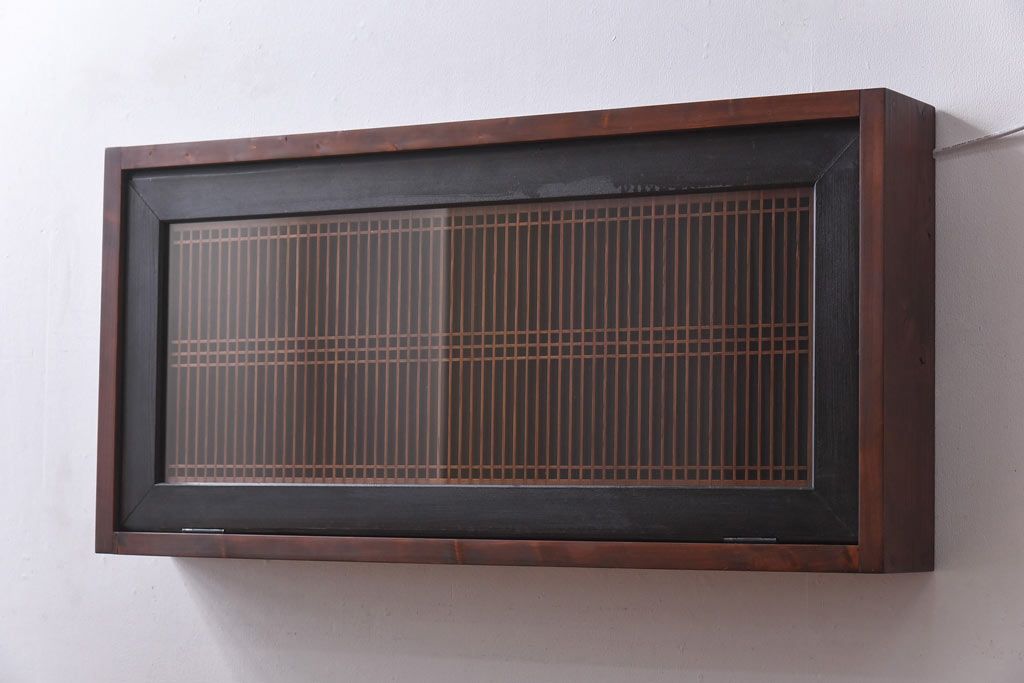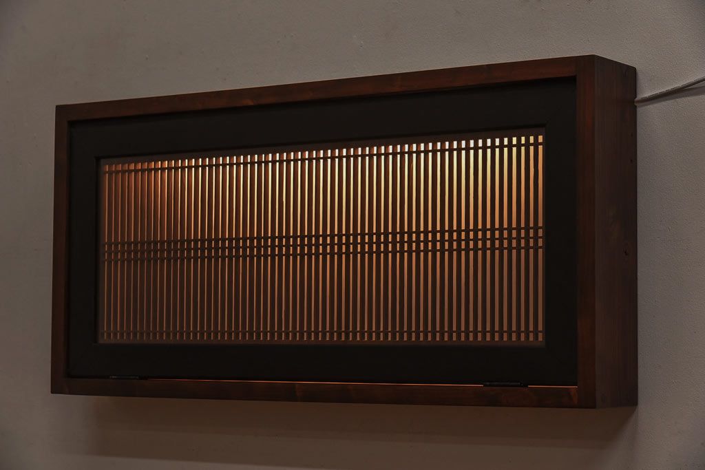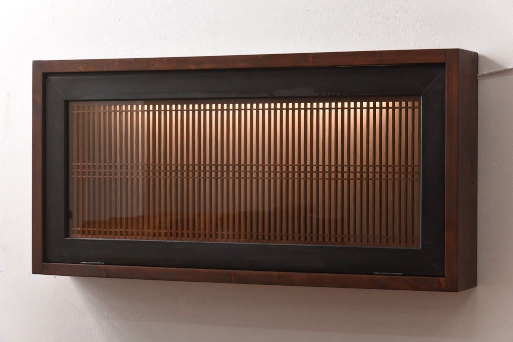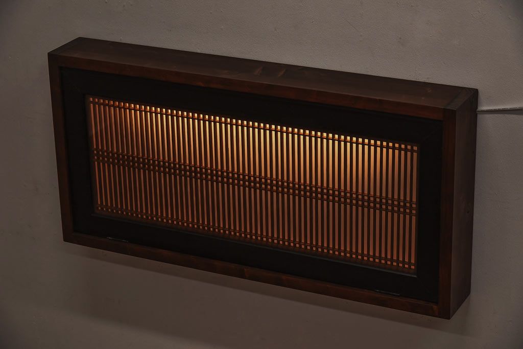 ラフジュ工房オリジナル 古建具リメイク 両面ガラス シンプルな格子がモダンな組子欄間の壁付け照明(ウォールランプ)