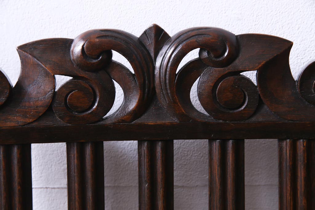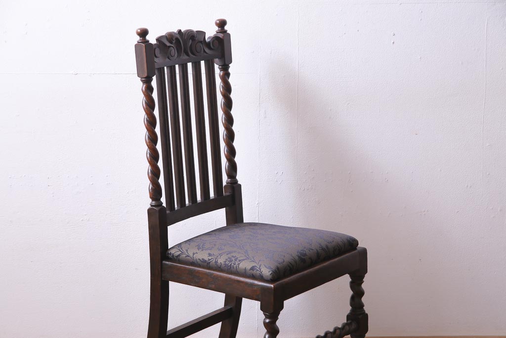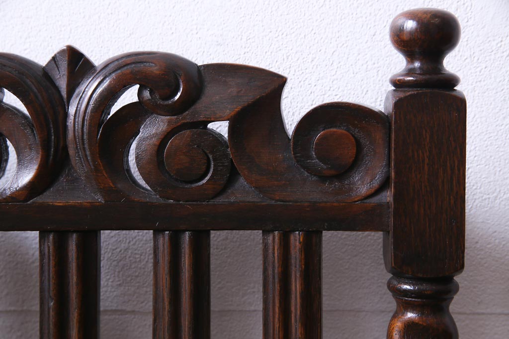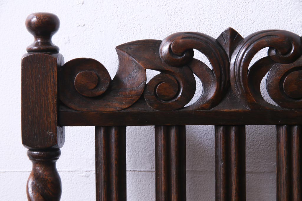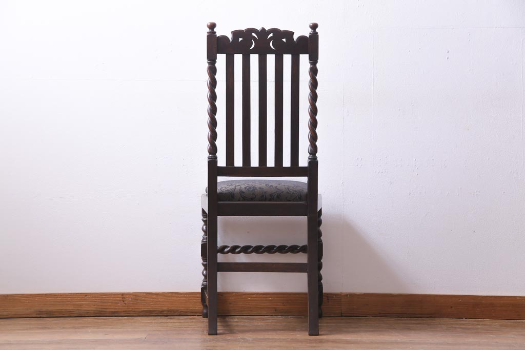 アンティーク家具 イギリスアンティーク ジャコビアン様式 彫刻が目を引くダイニングチェア(ハイバックチェア、椅子)(1)