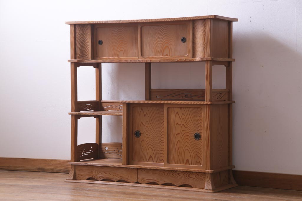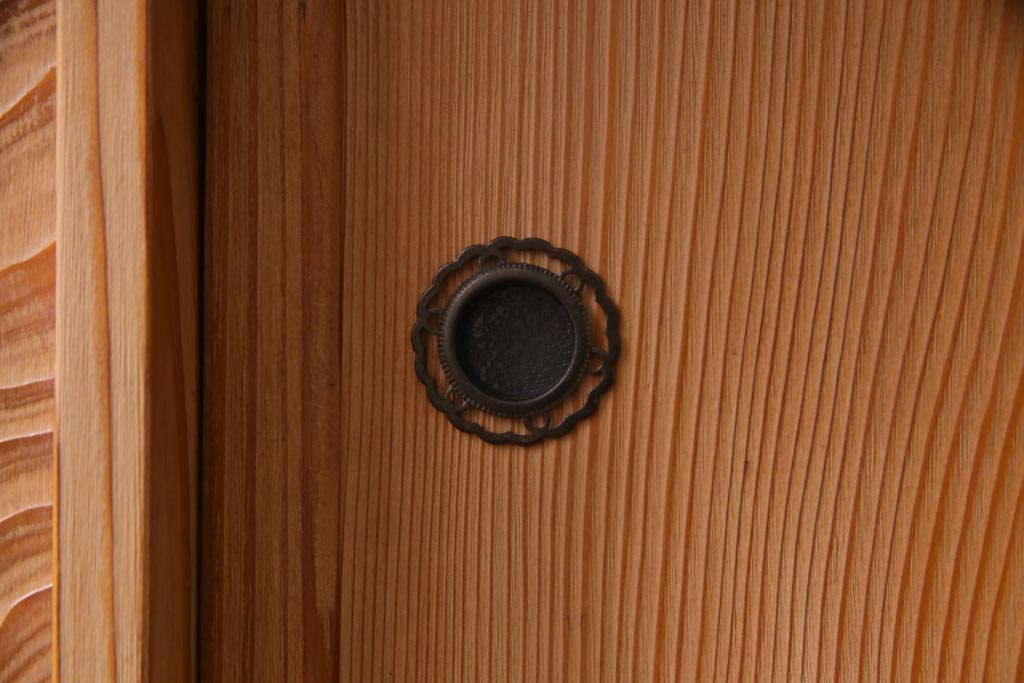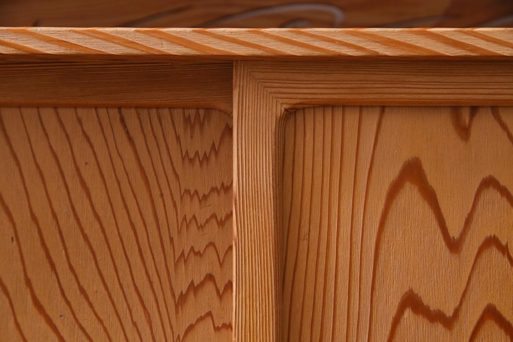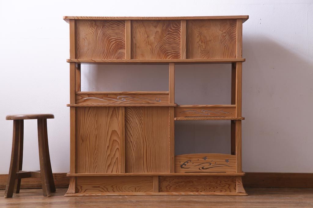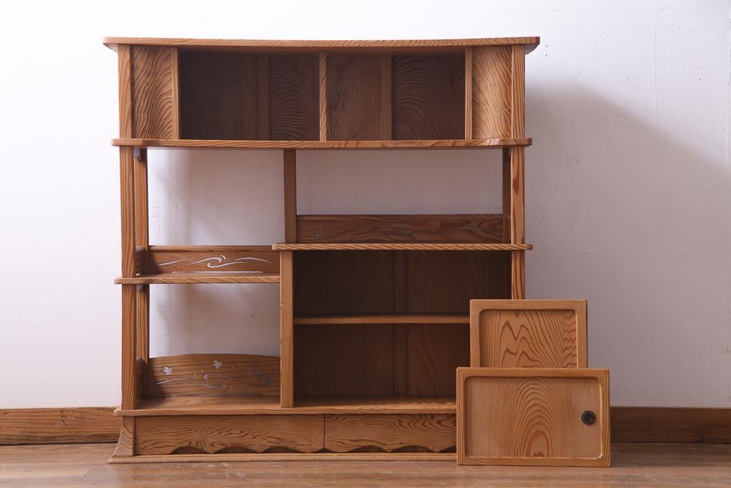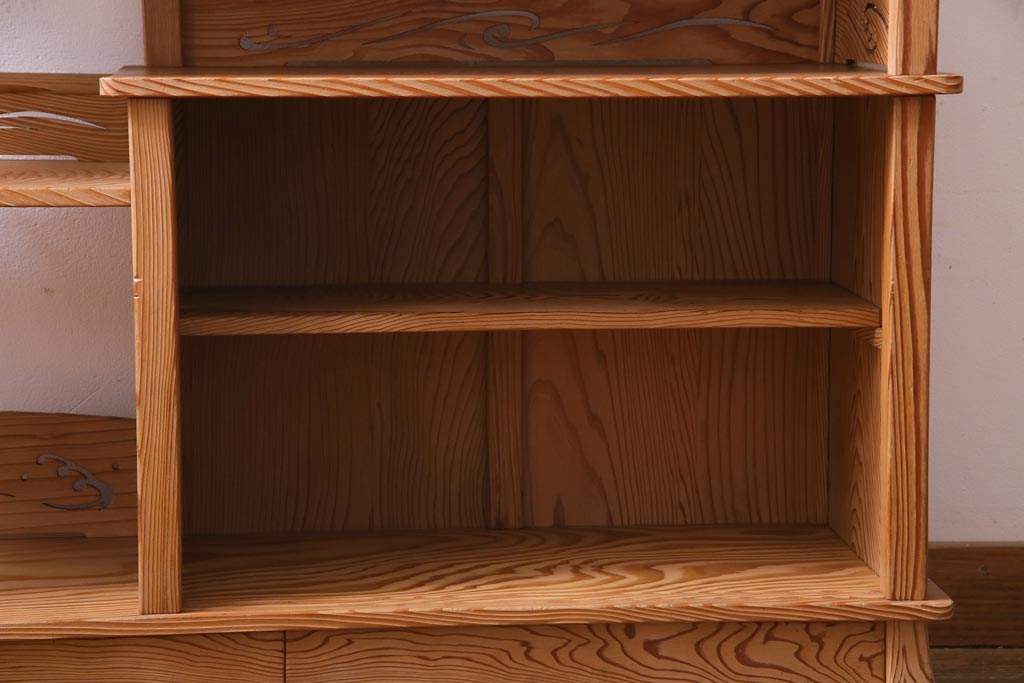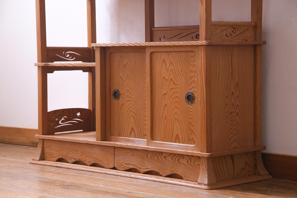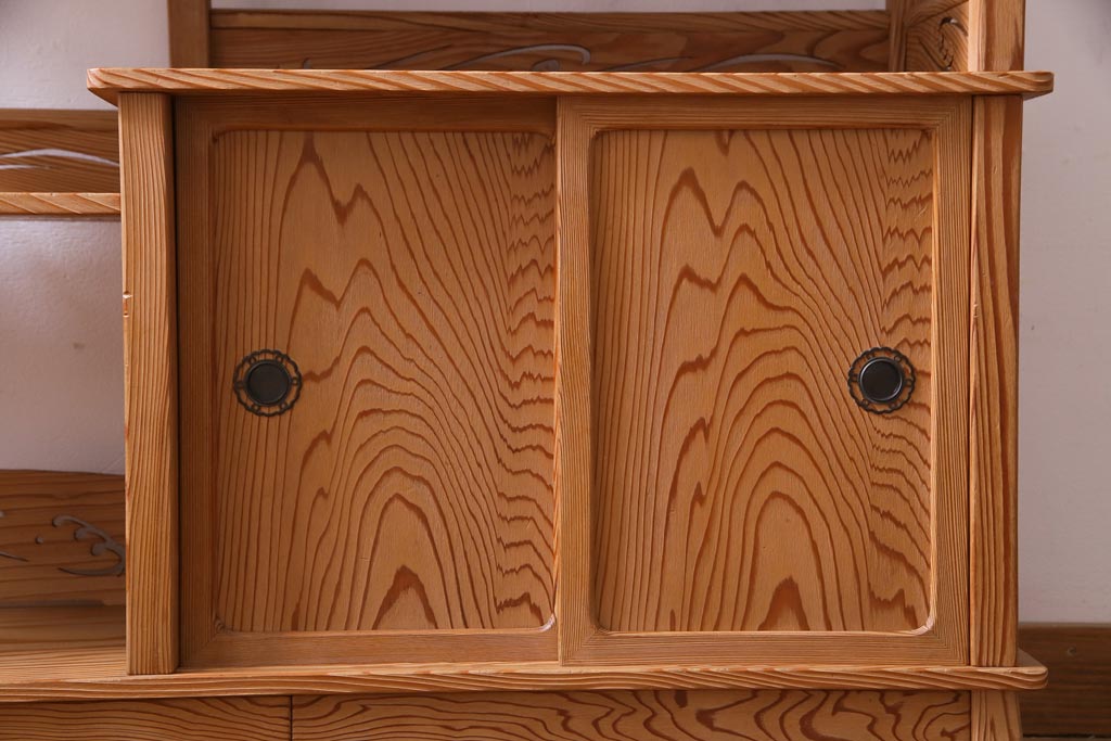 和箪笥> 茶箪笥・茶棚 > 中古 高級杉材使用 浮造り 職人のこだわりを感じる細部までつくり込まれた茶棚(飾棚)