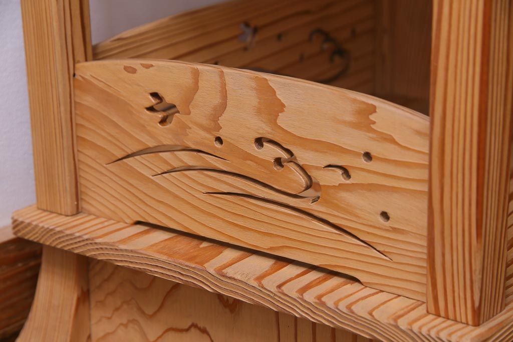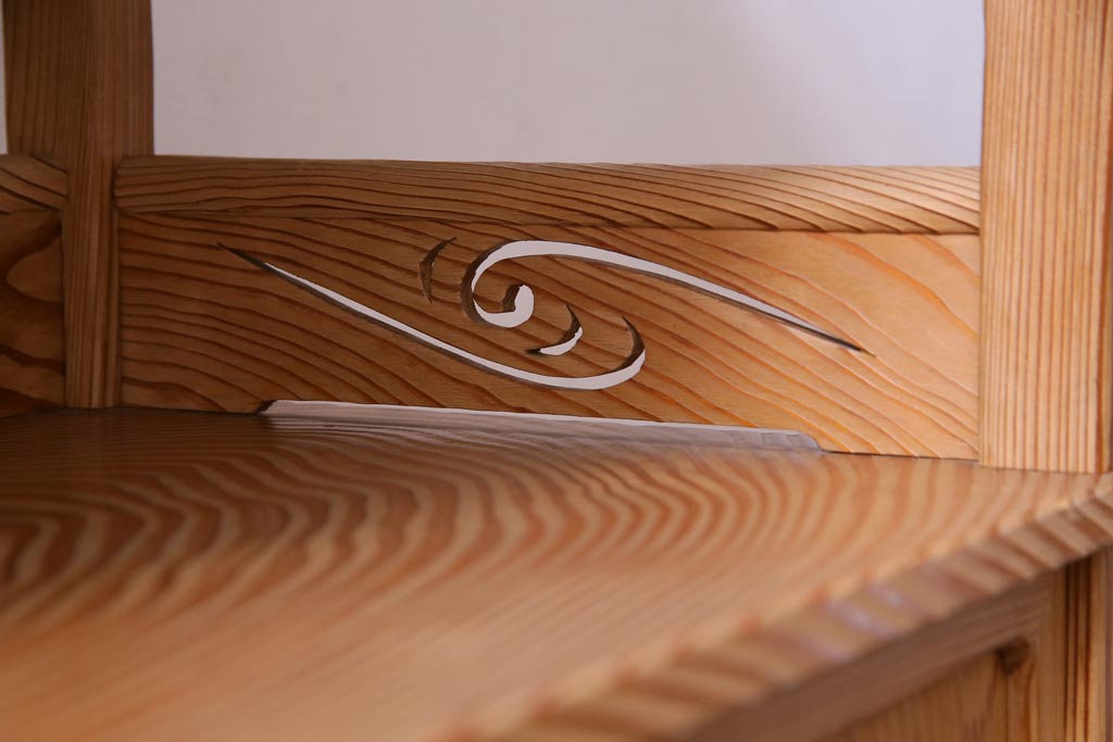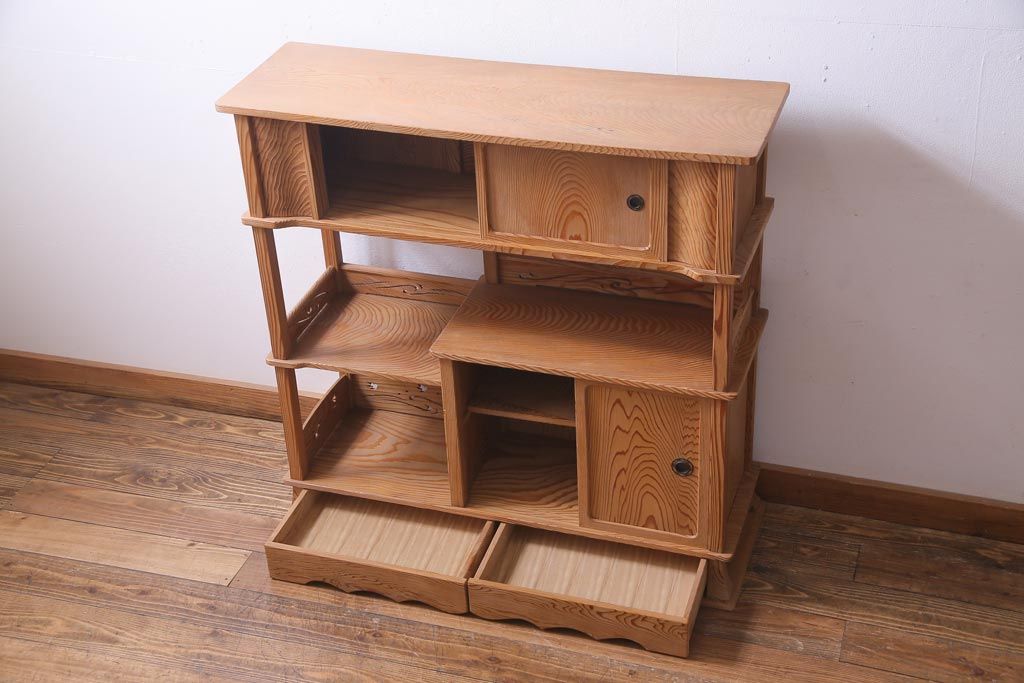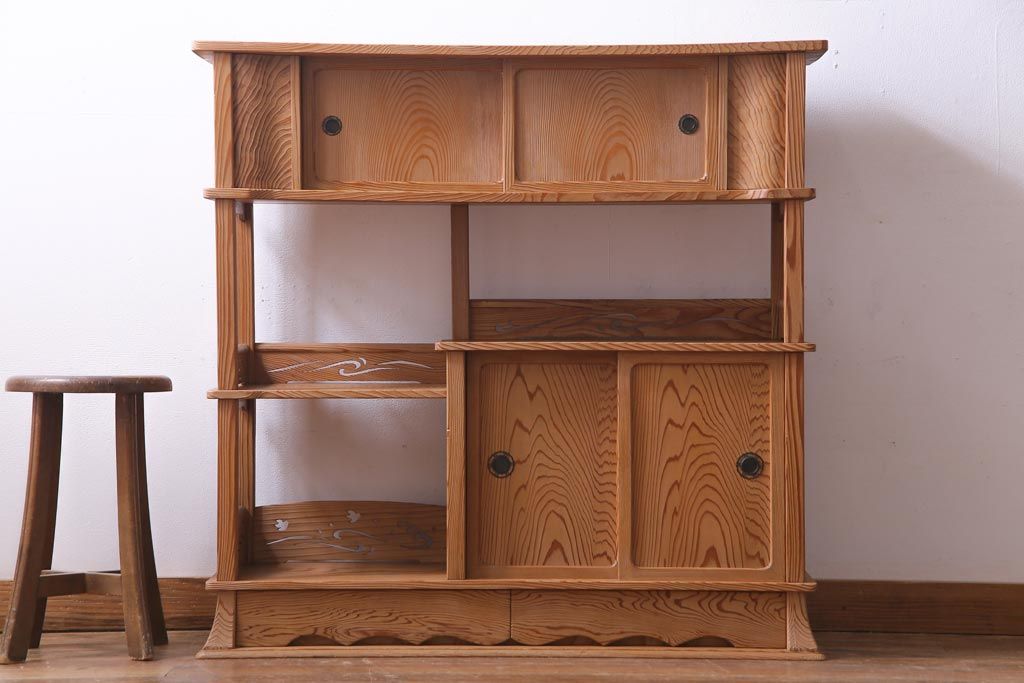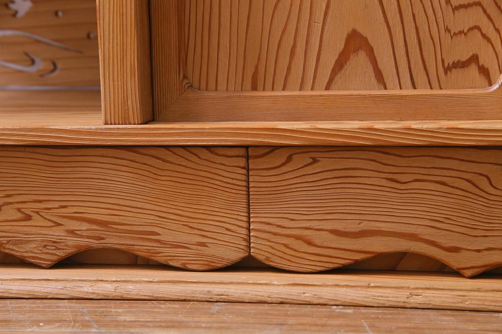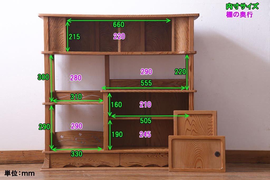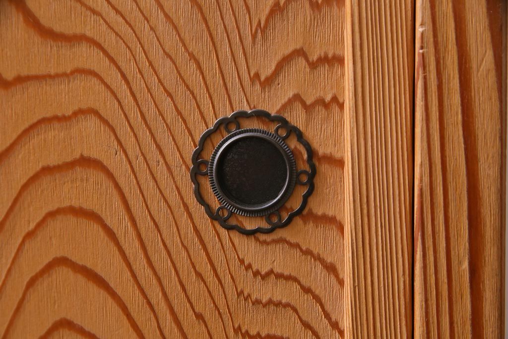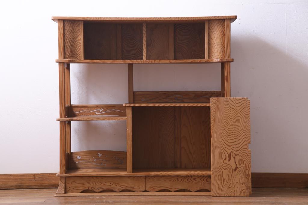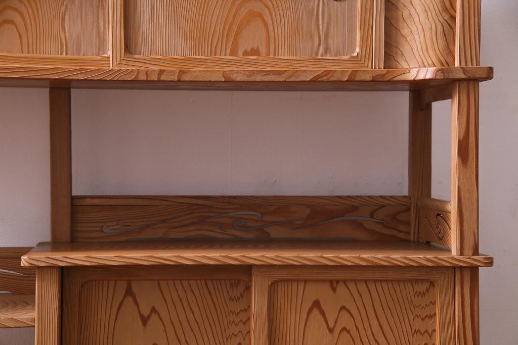 和箪笥> 茶箪笥・茶棚 > 中古 高級杉材使用 浮造り 職人のこだわりを感じる細部までつくり込まれた茶棚(飾棚)