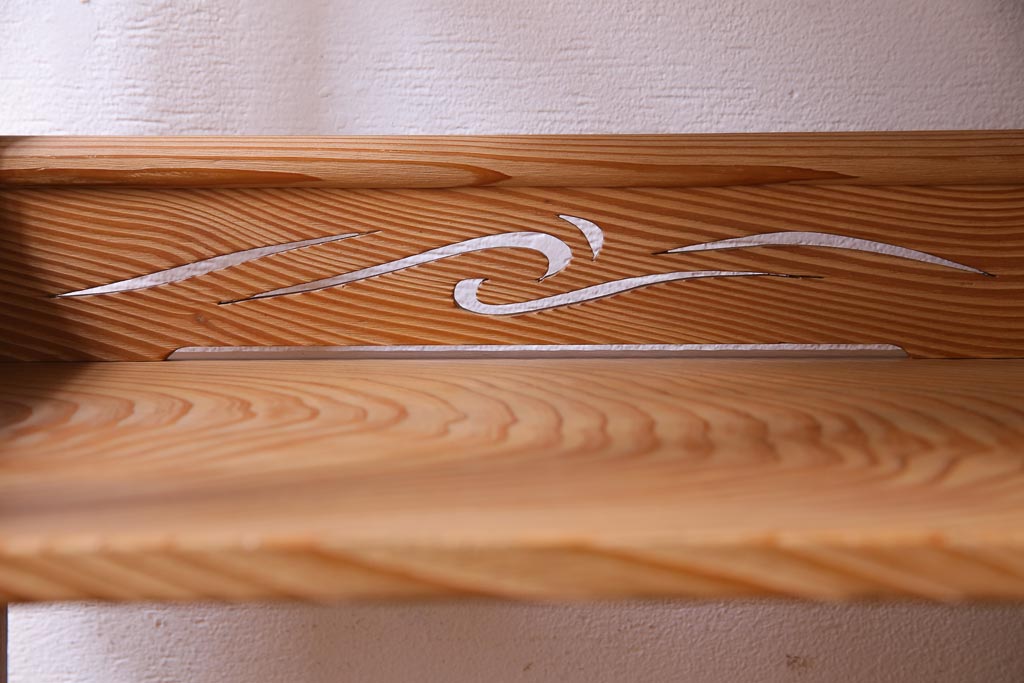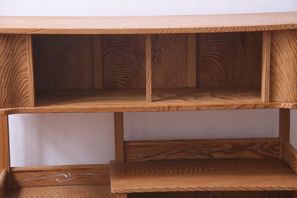 中古 高級杉材使用 浮造り 職人のこだわりを感じる細部までつくり込まれた茶棚(飾棚)