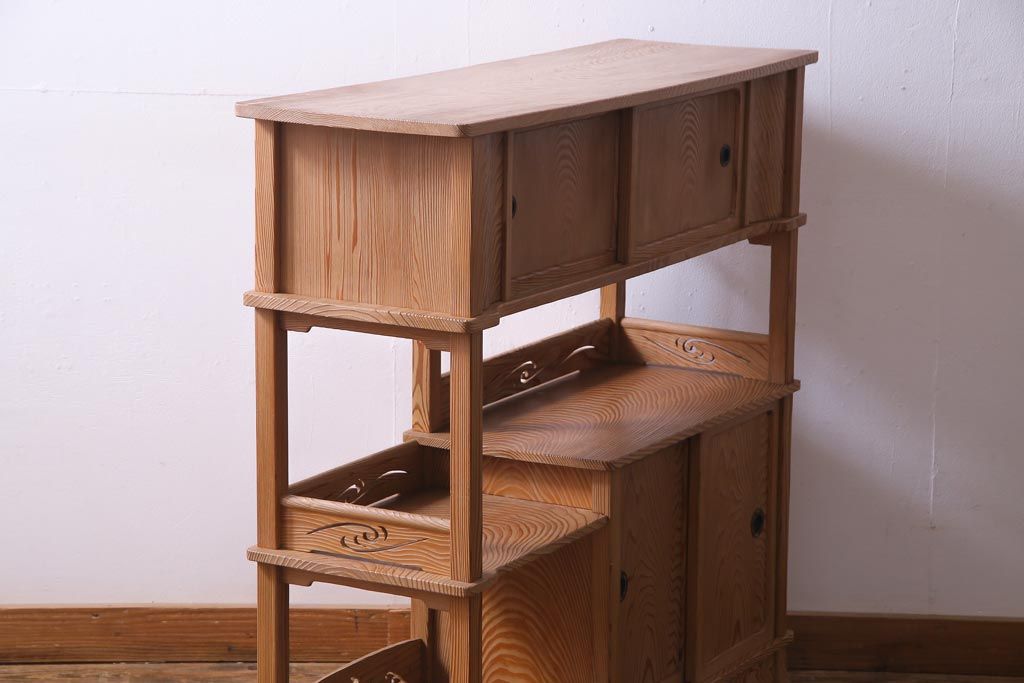 中古 高級杉材使用 浮造り 職人のこだわりを感じる細部までつくり込まれた茶棚(飾棚)です。