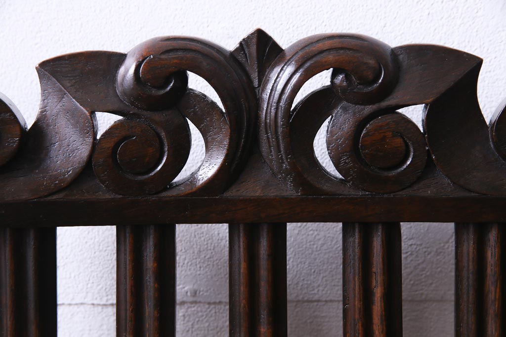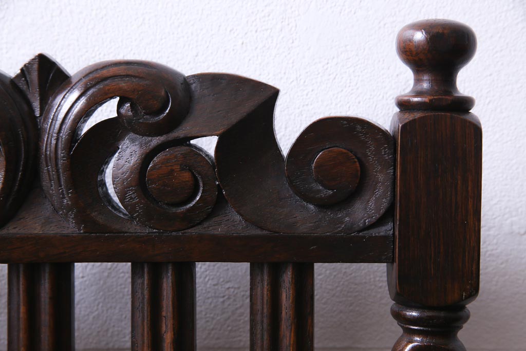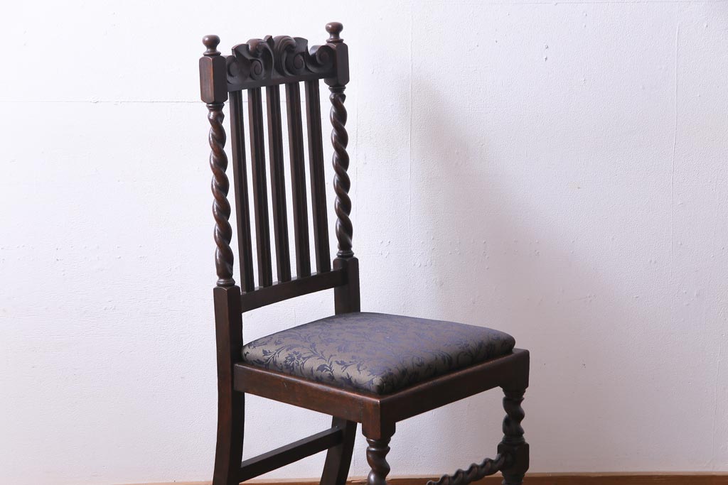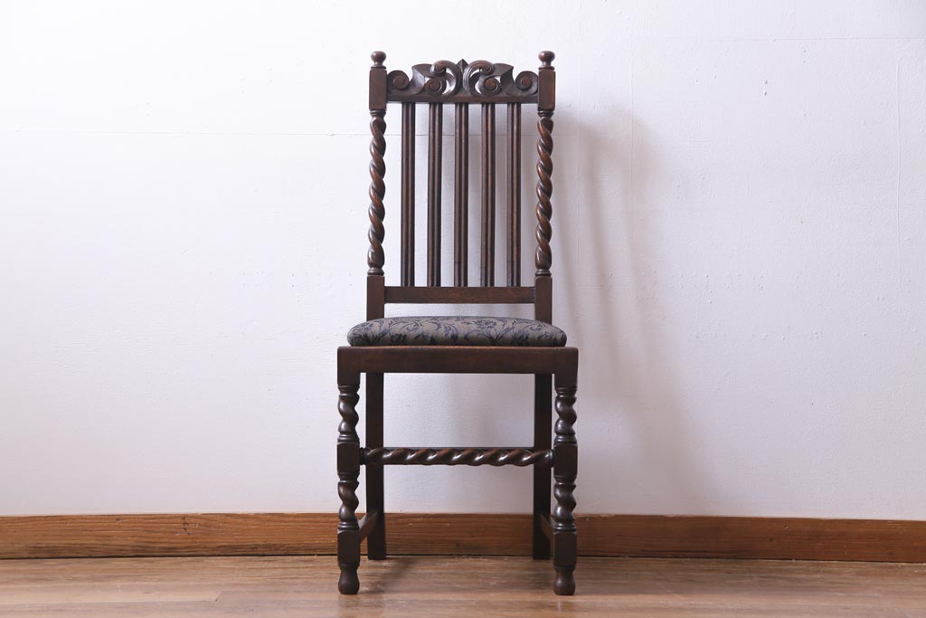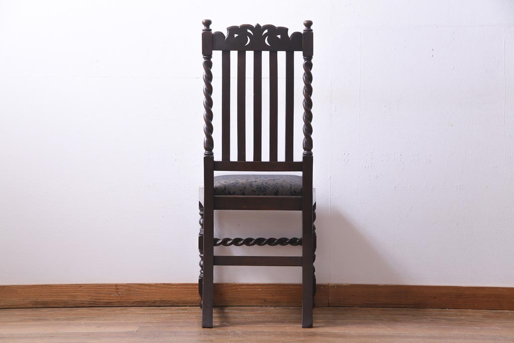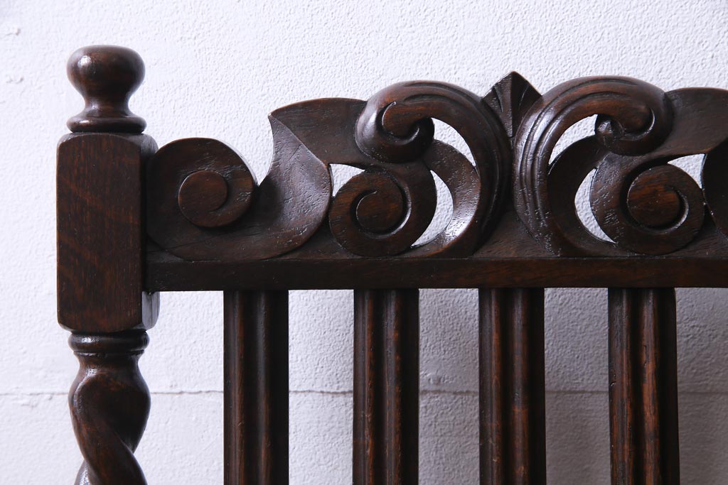 アンティーク家具 イギリスアンティーク ジャコビアン様式 彫刻が目を引くダイニングチェア(ハイバックチェア、椅子)