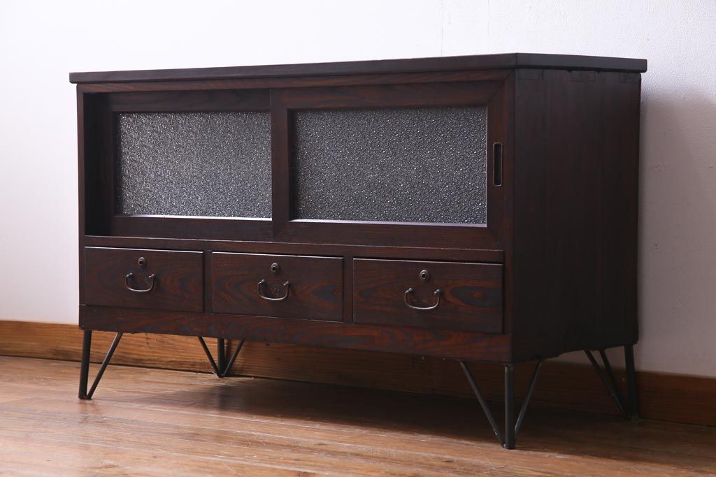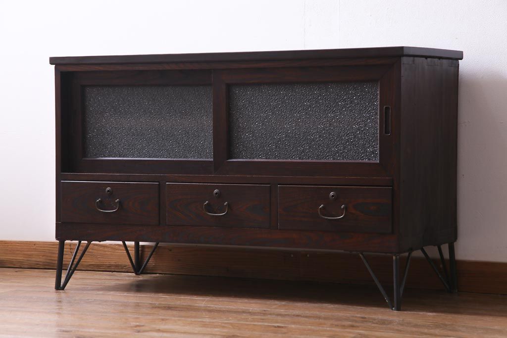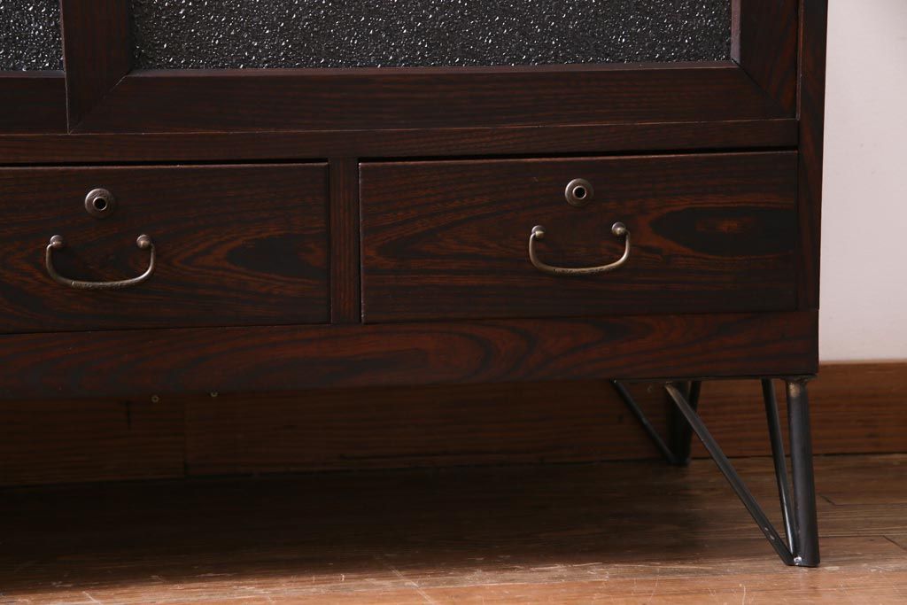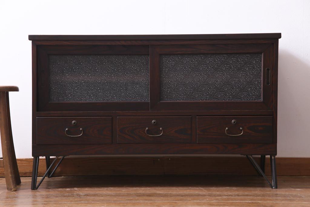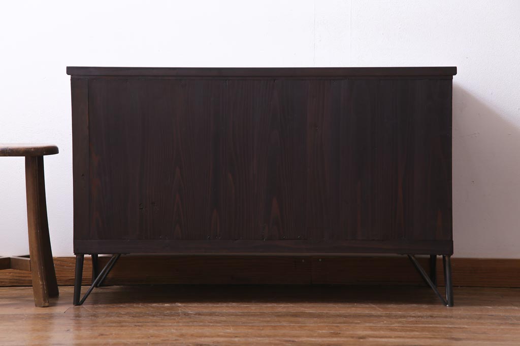 アンティーク家具 昭和初期 前面ケヤキ材 鉄脚リメイク シンプルな引手が上品なリビングボード(戸棚)