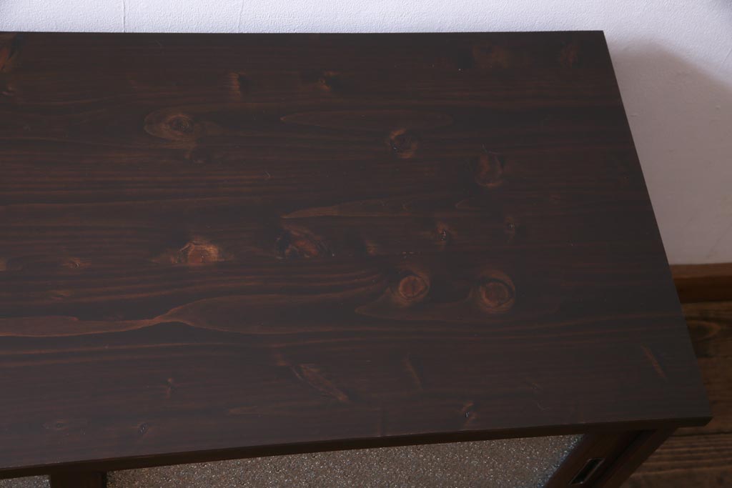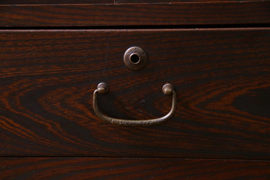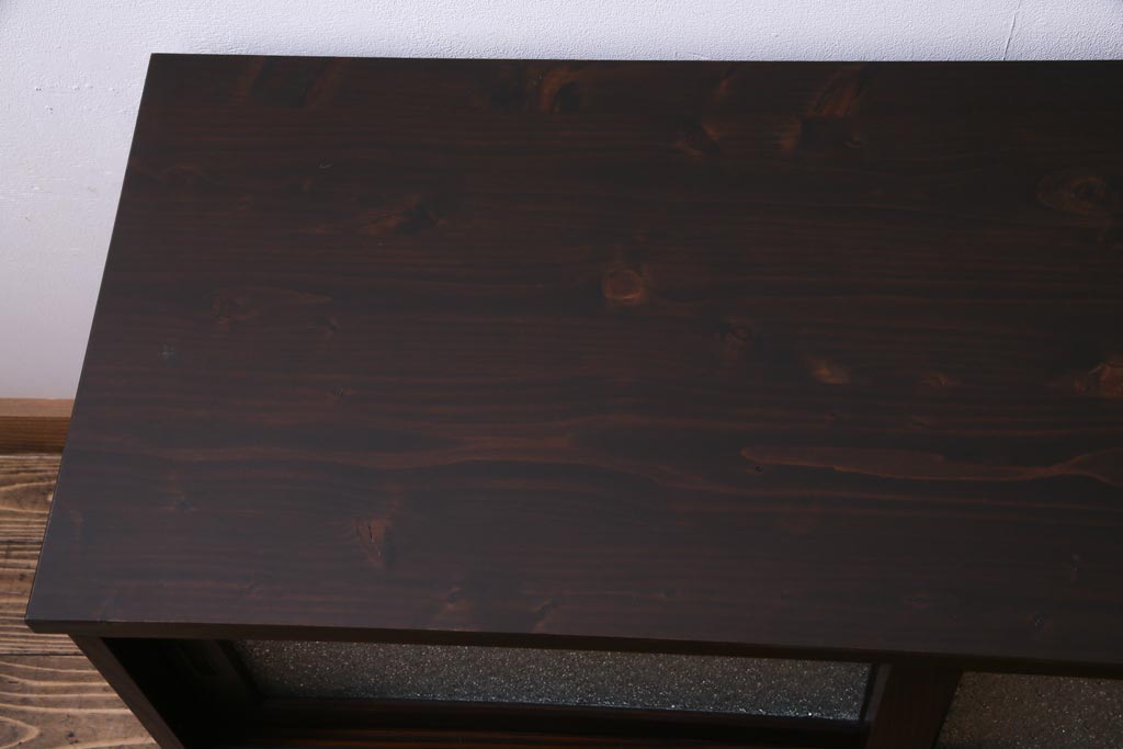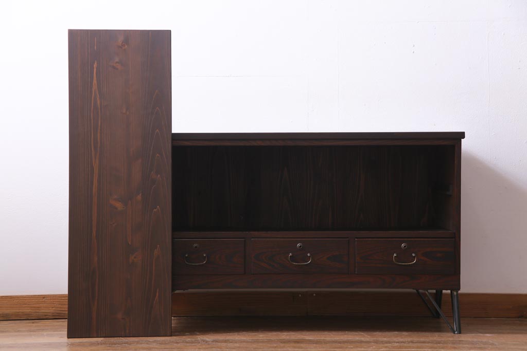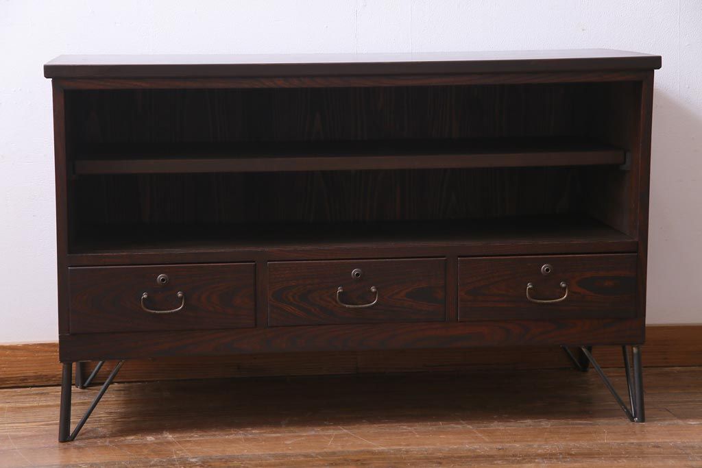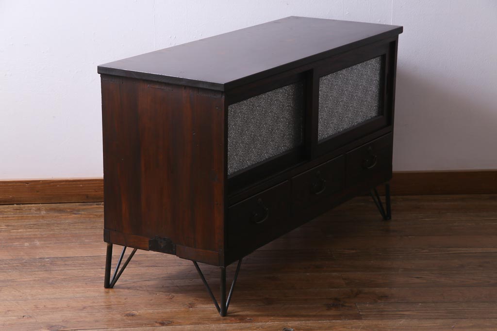 アンティーク家具 昭和初期 前面ケヤキ材 鉄脚リメイク シンプルな引手が上品なリビングボード(戸棚)