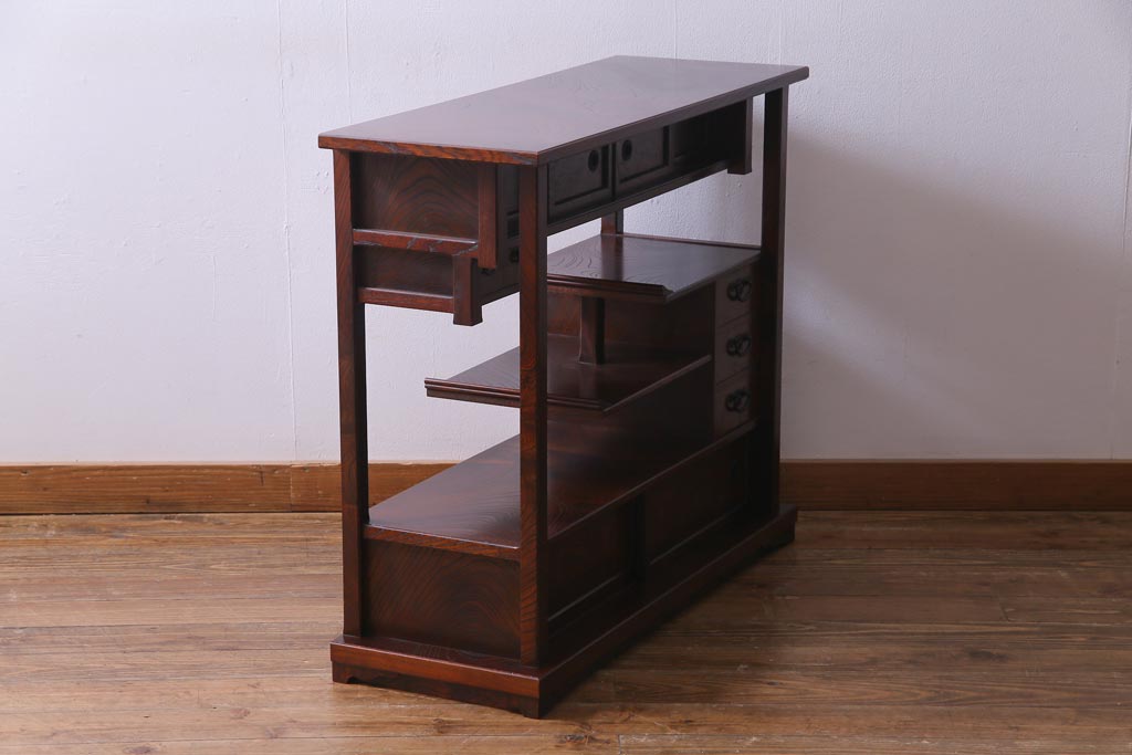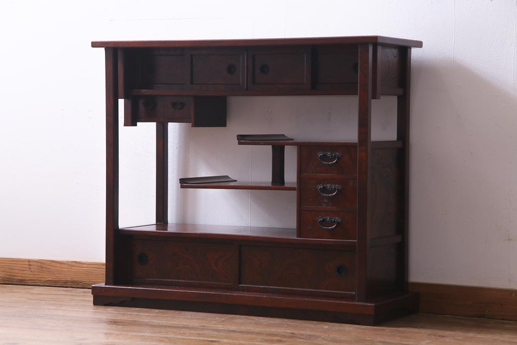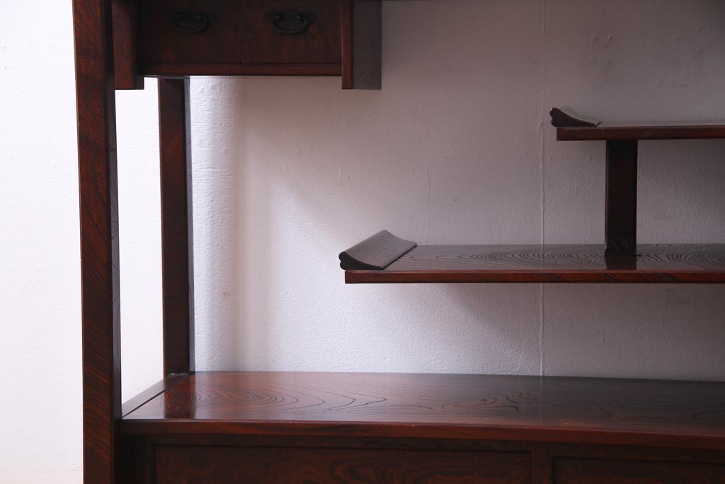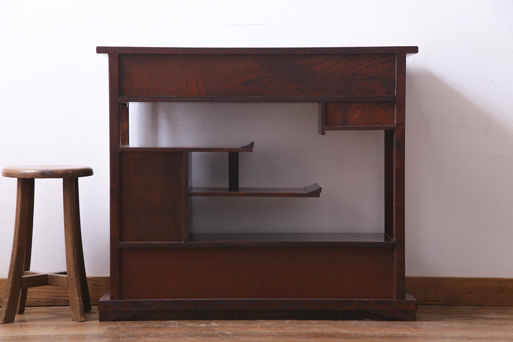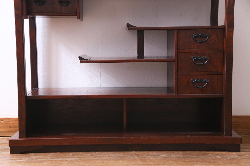 中古 駿河民芸 本漆塗り ケヤキ材 高級な和の雰囲気漂う飾り棚(茶棚)(1)