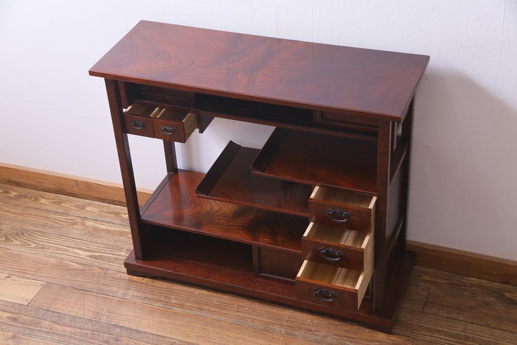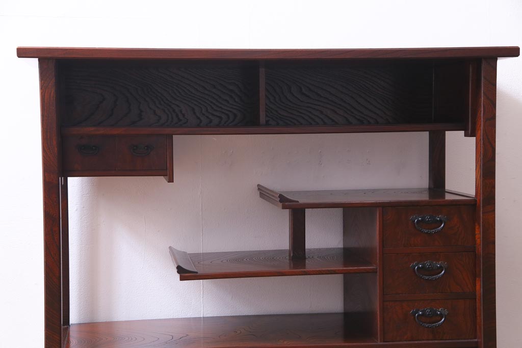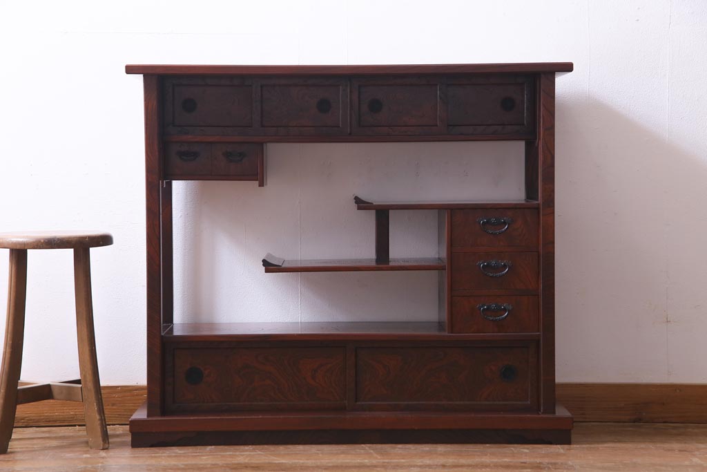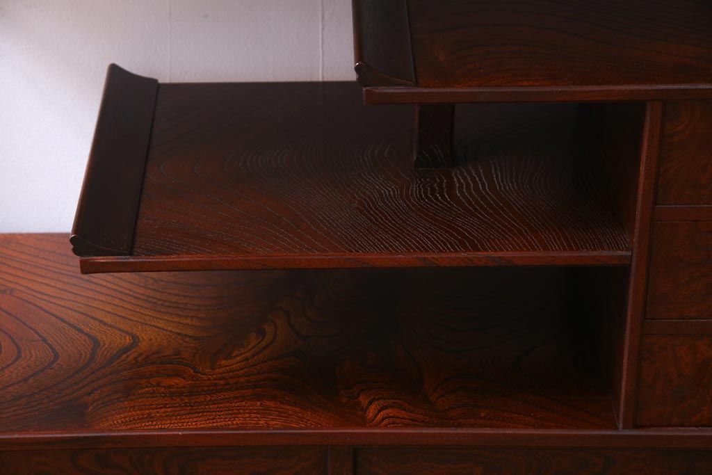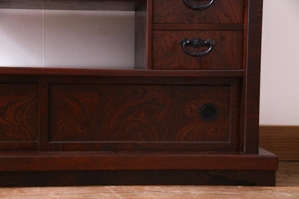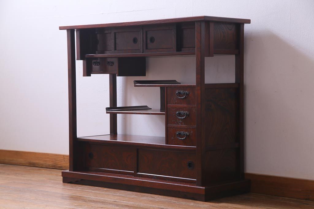 中古 駿河民芸 本漆塗り ケヤキ材 高級な和の雰囲気漂う飾り棚(茶棚)(1)