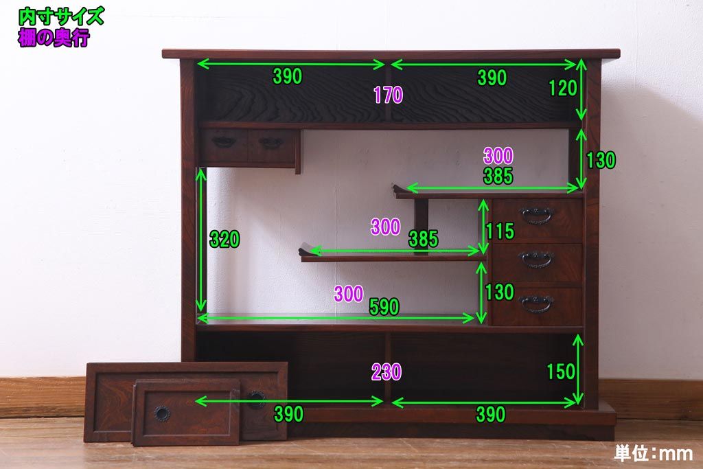 ■引き出しの内寸(大) 各 深さ70mm/幅160mm/奥行245mm