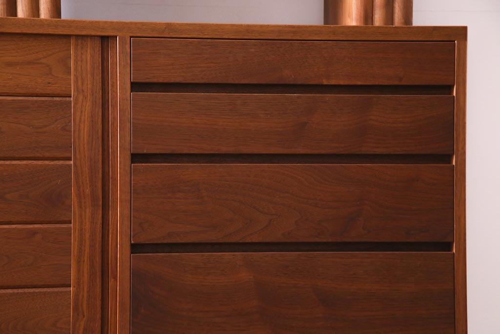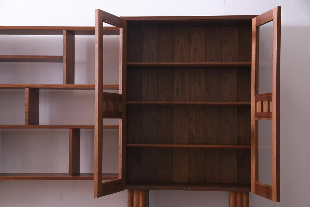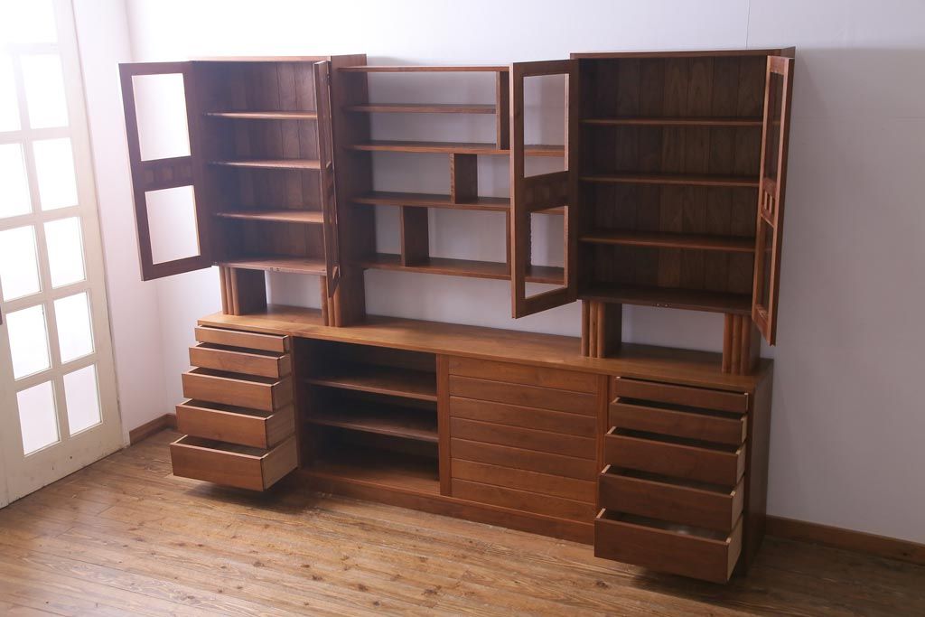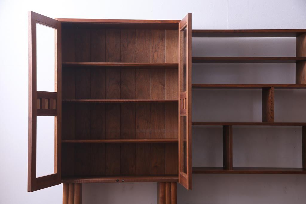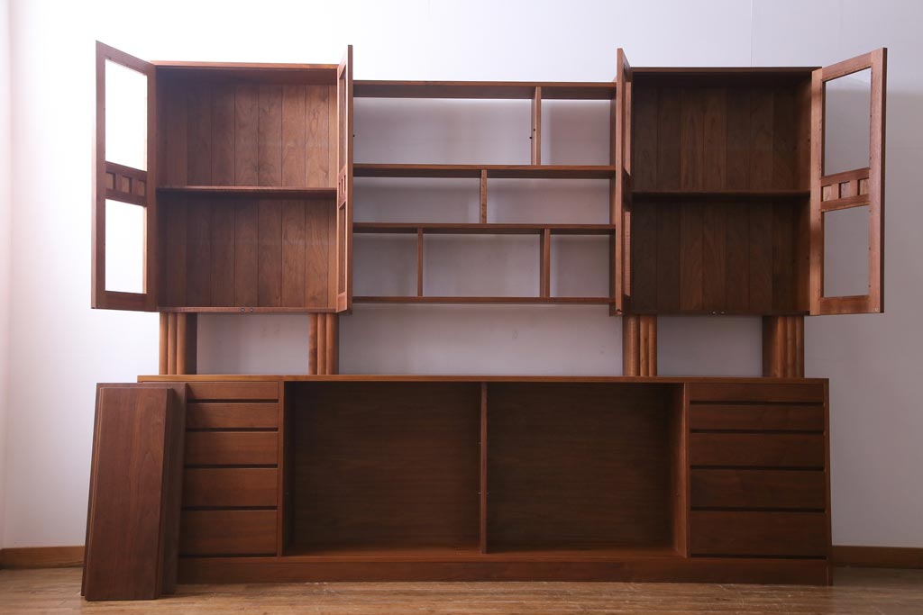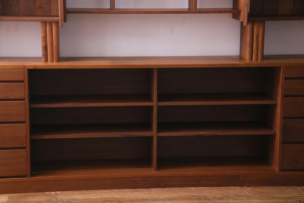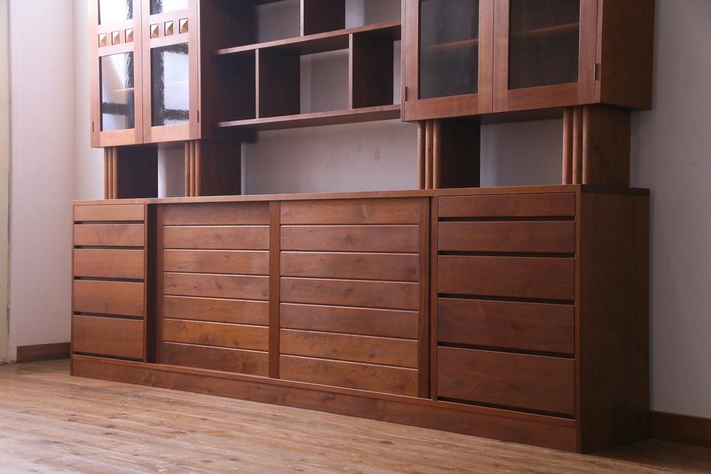中古美品 ウッドユウライク製 ウォールナット無垢材 ストーリーズキャビネット(ダイニングボード、収納棚、壁面収納)(定価約140万円)です。