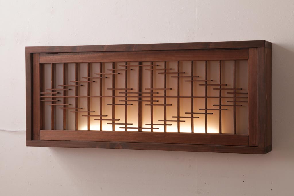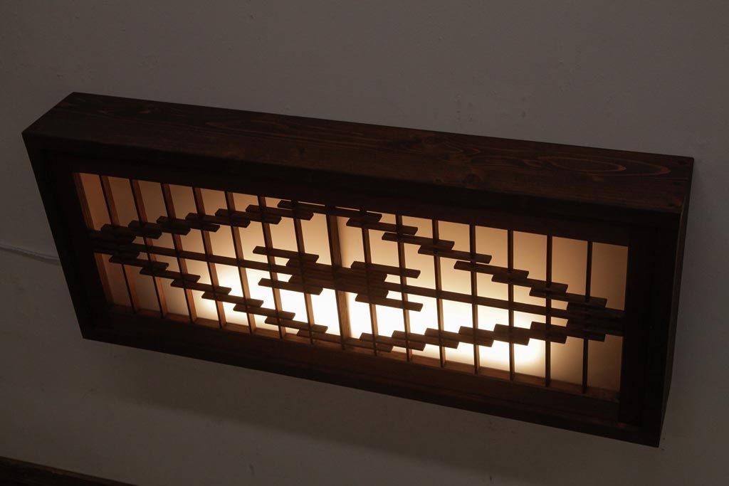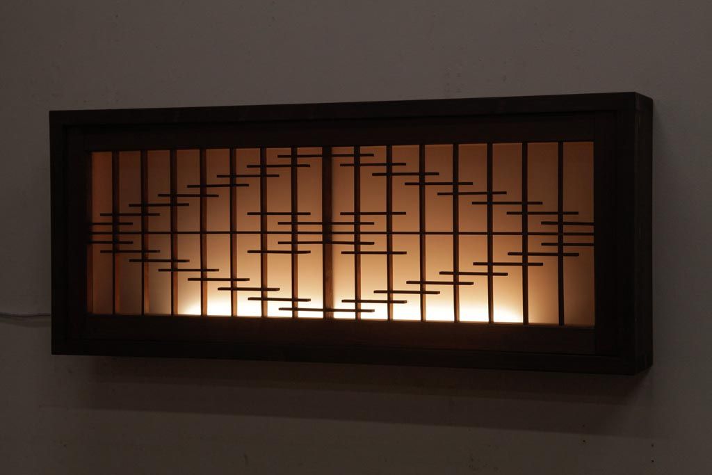 ラフジュ工房オリジナル 欄間リメイク 片面ガラス 素朴な木の風合いが温かみのある壁付け照明(ウォールランプ)