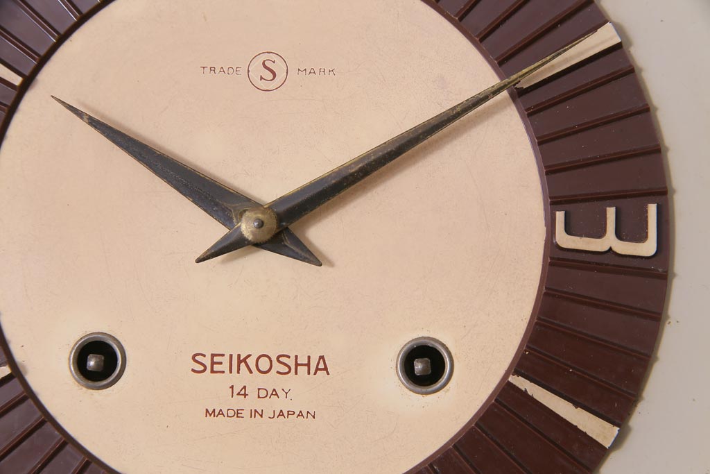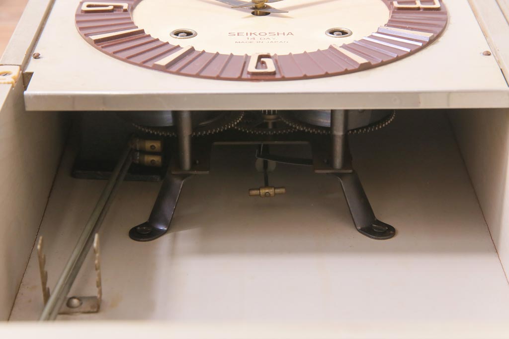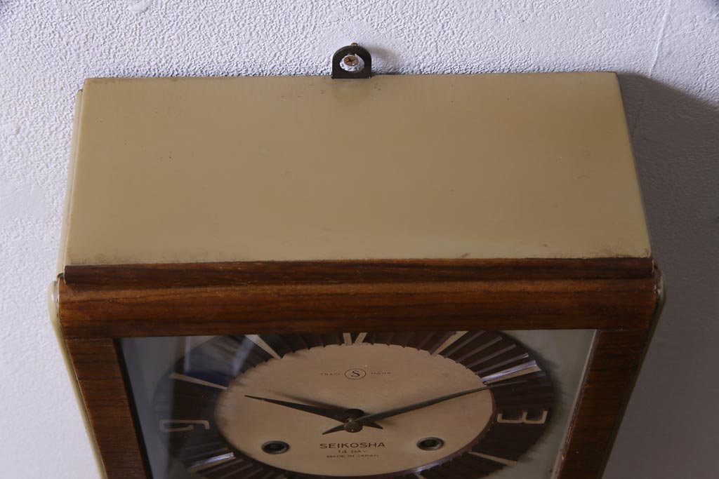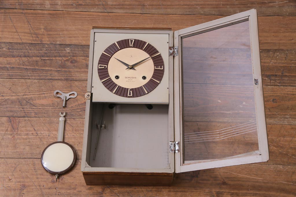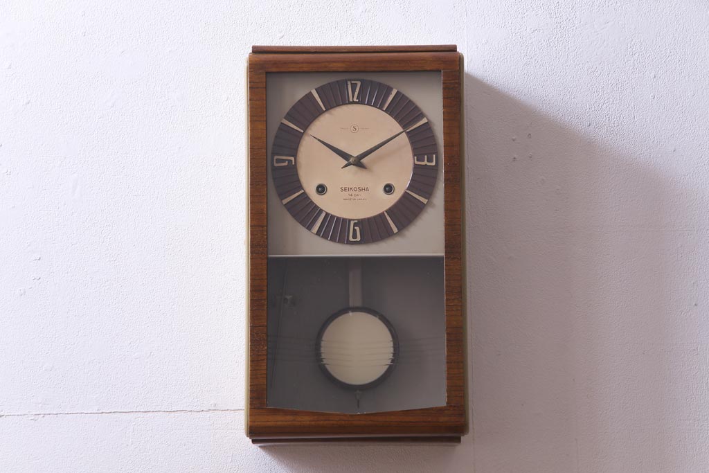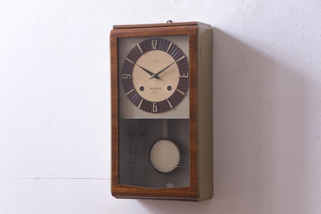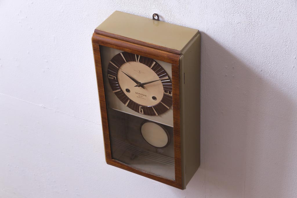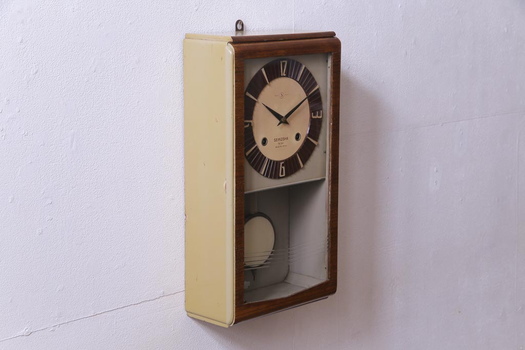 時計> 掛け時計 > アンティーク雑貨 昭和レトロ SEIKOSHA(精工舎、セイコー) 手巻き式 ミッドセンチュリーな雰囲気漂う掛け時計(振り子時計、柱時計、ゼンマイ時計)