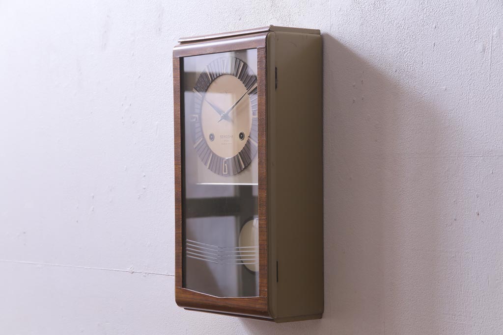 アンティーク雑貨 昭和レトロ SEIKOSHA(精工舎、セイコー) 手巻き式 ミッドセンチュリーな雰囲気漂う掛け時計(振り子時計、柱時計、ゼンマイ時計)