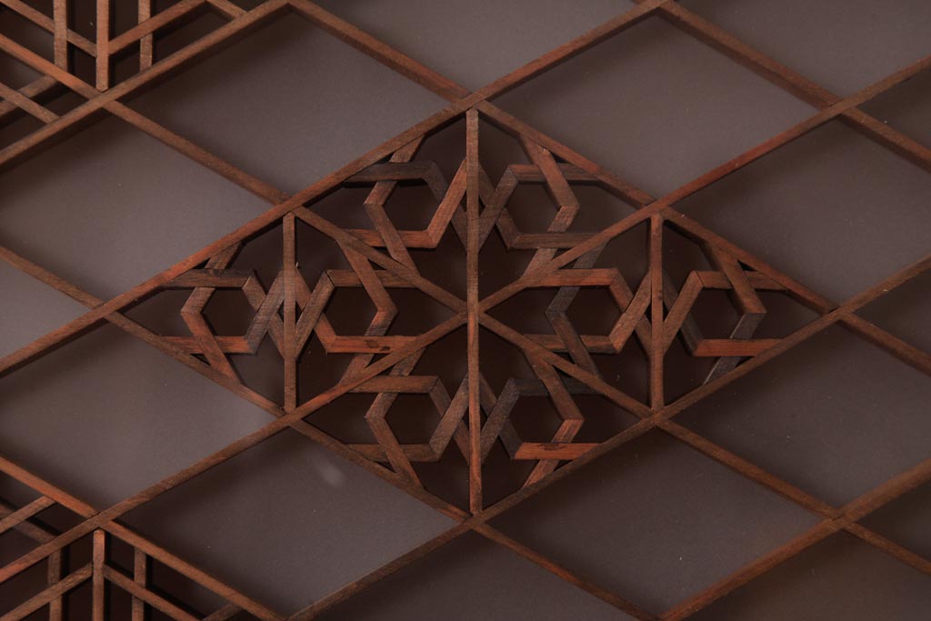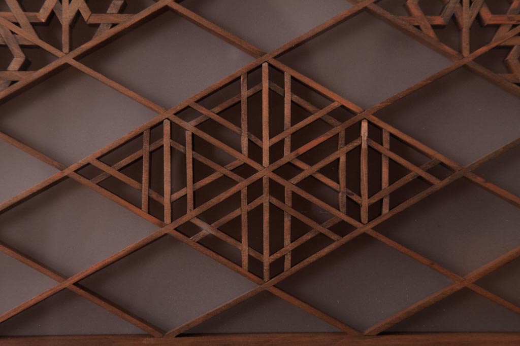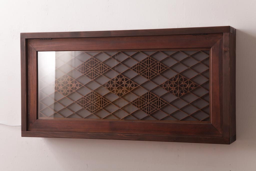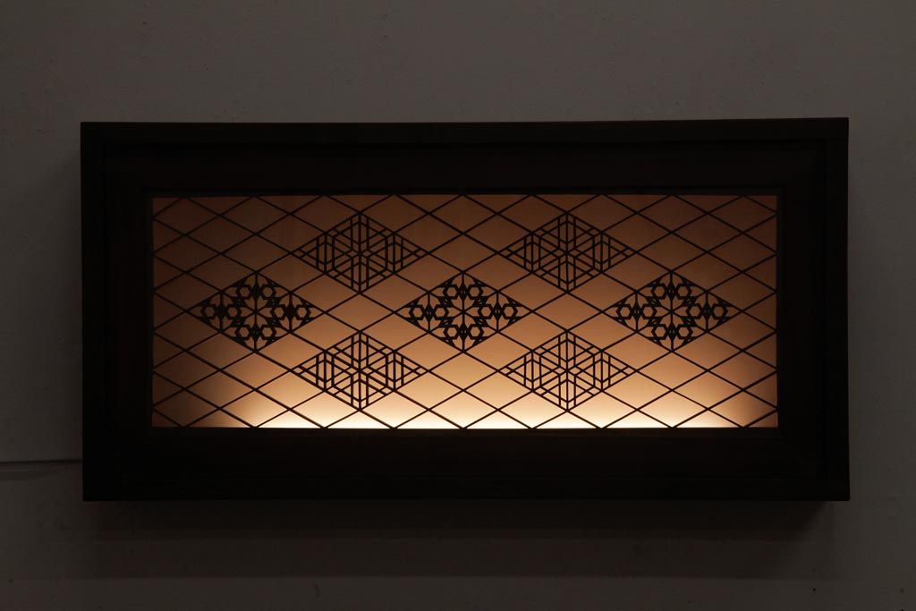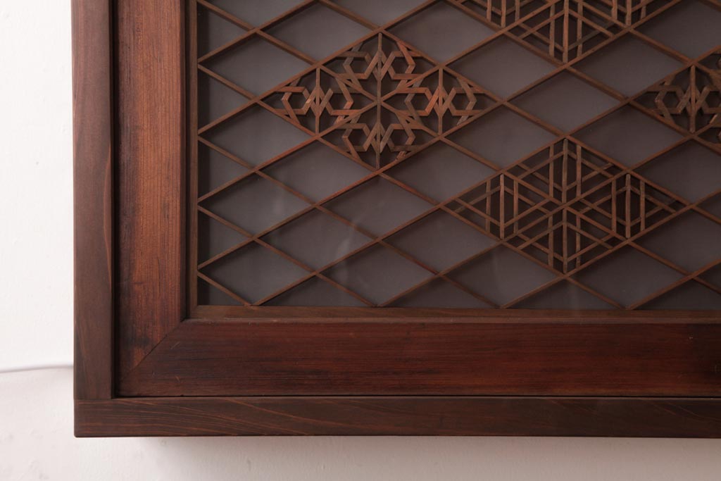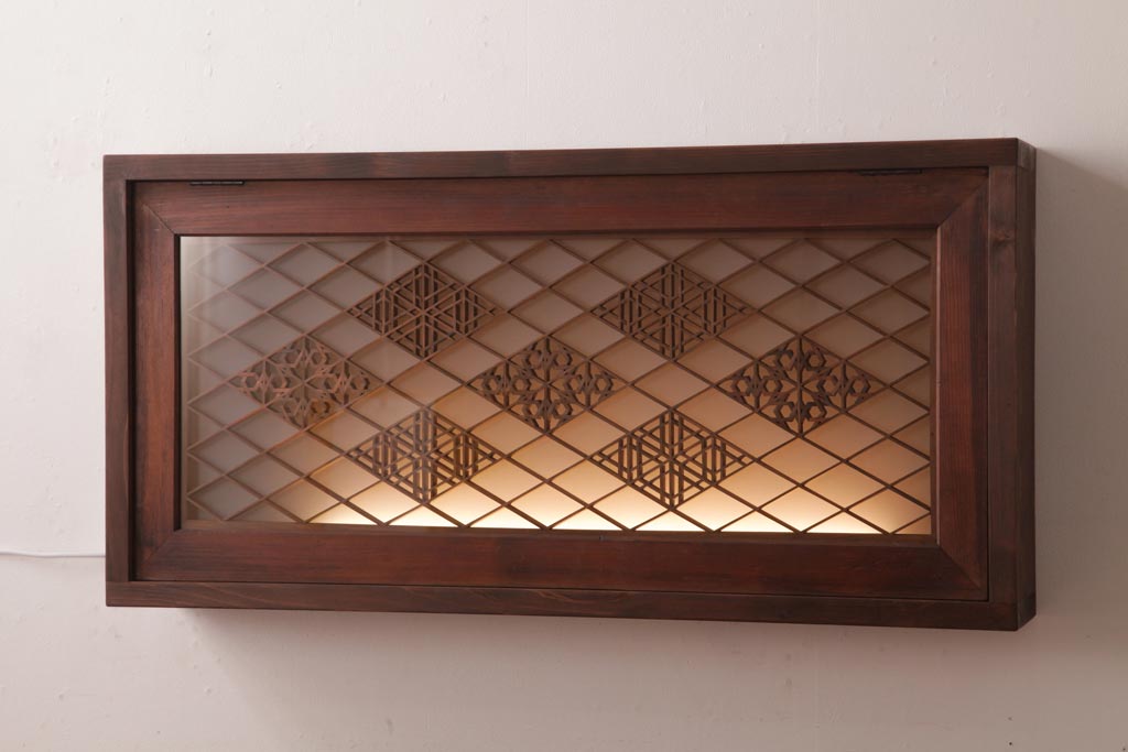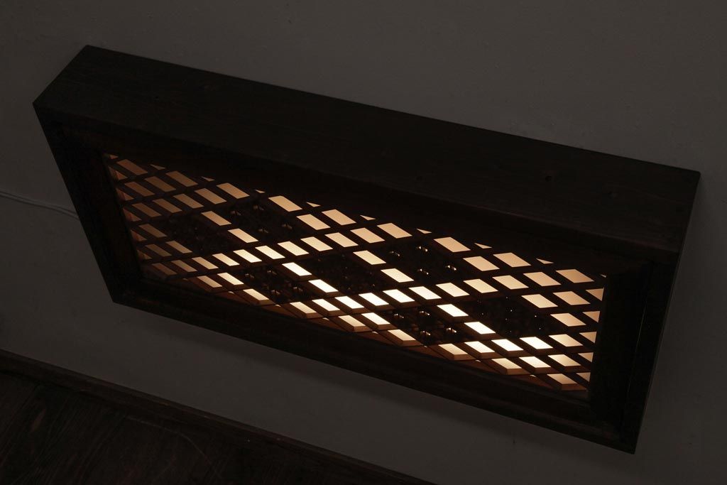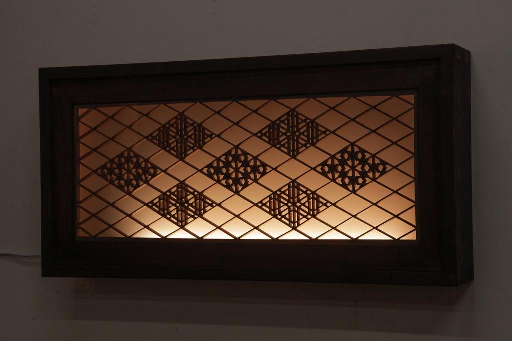 ラフジュ工房オリジナル 両面ガラス 欄間リメイク 凝ったデザイン組子がお洒落な壁付け照明(ウォールランプ)です。