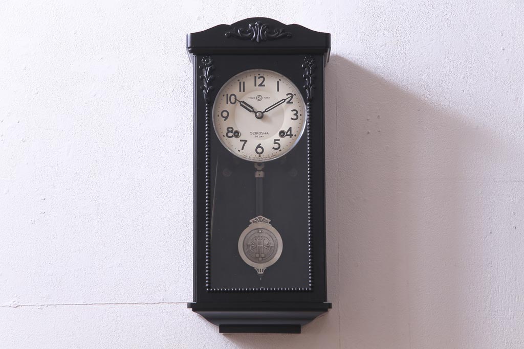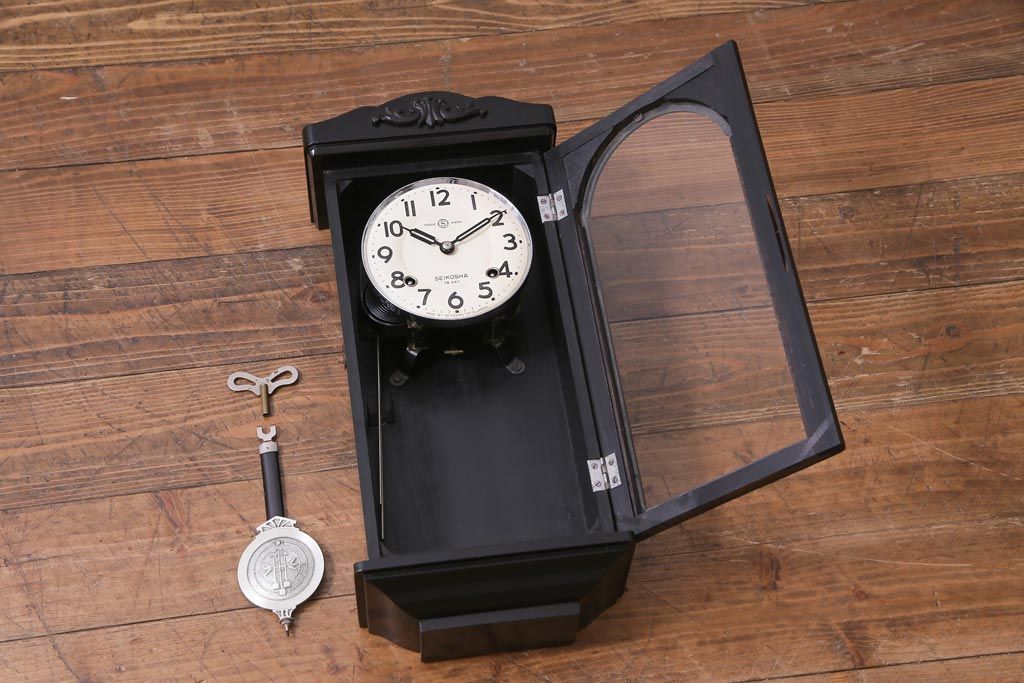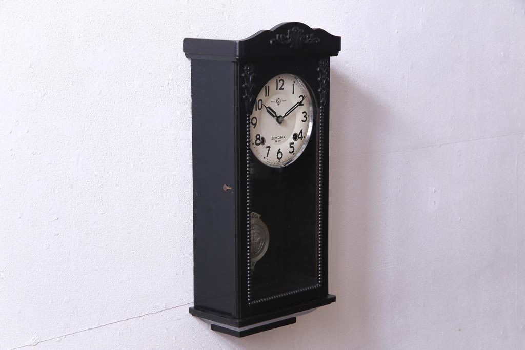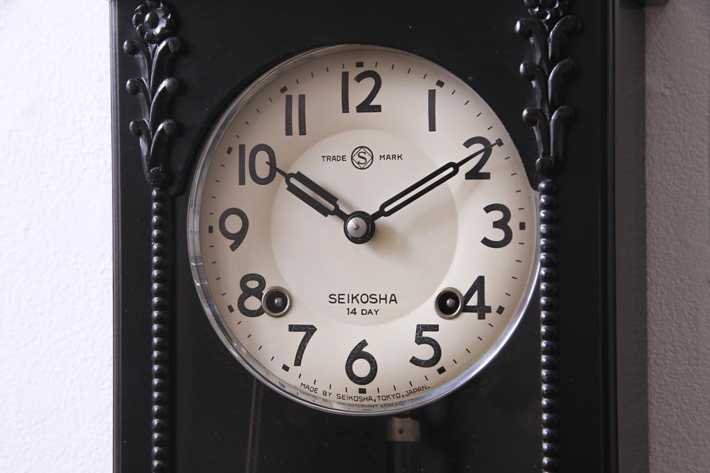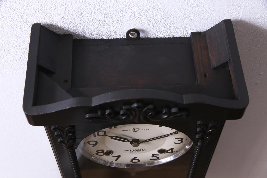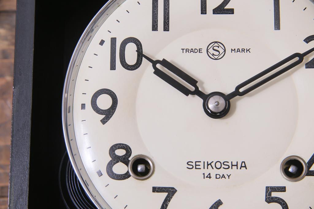 アンティーク雑貨 昭和期 SEIKOSHA(精工舎、セイコー) 14DAY クラシックなゼンマイ式掛け時計(振り子時計、柱時計)