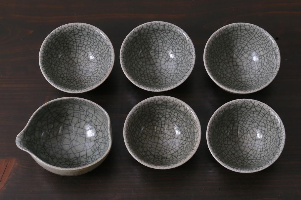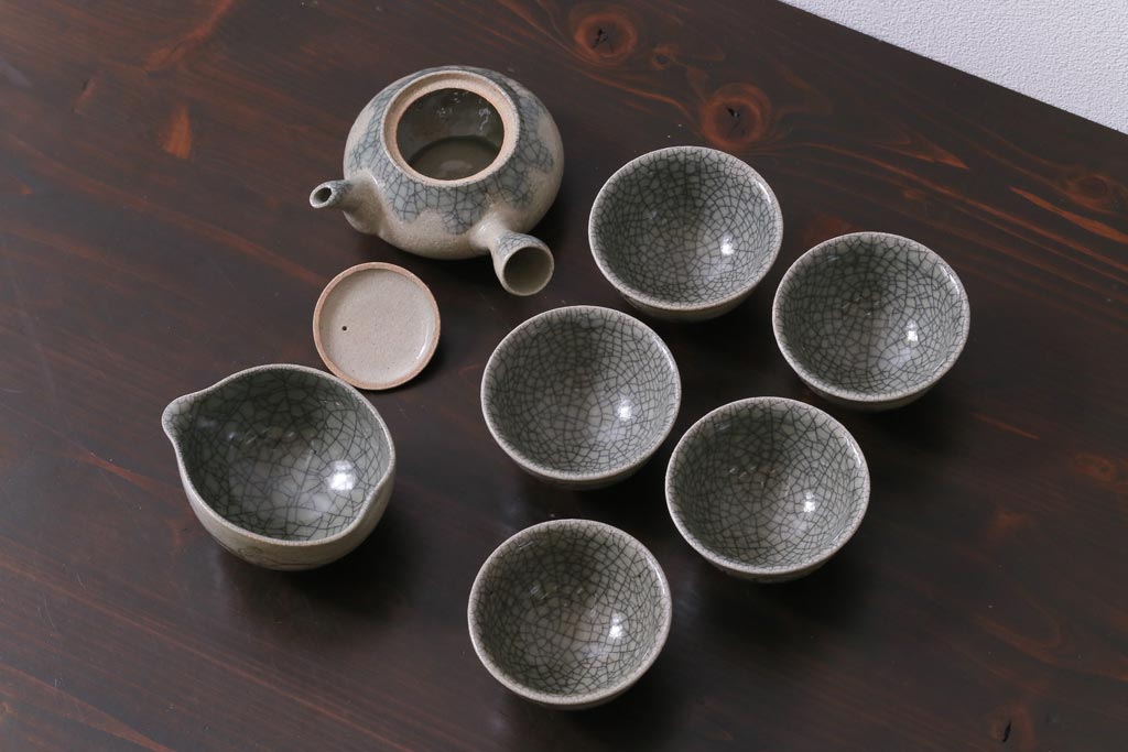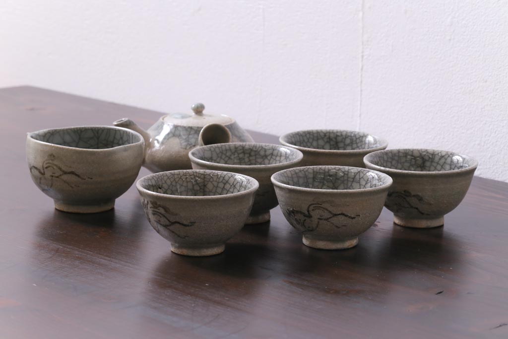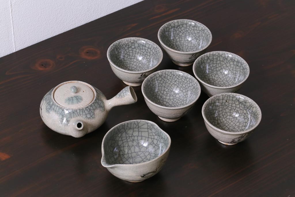 ラフジュ工房> 和食器・茶道具 > 昭和中期 田代法橋(清治右衛門) 共箱付き 相馬駒焼 煎茶器セット(急須、湯冷まし、湯呑み5客)