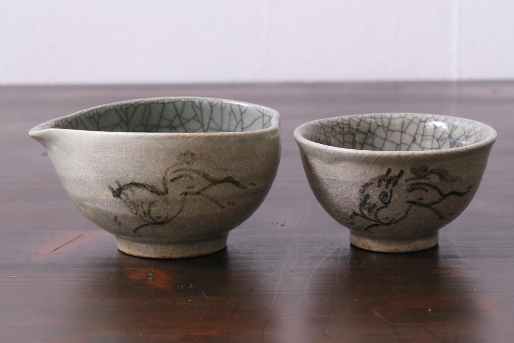 ラフジュ工房> 和食器・茶道具> 急須・湯吞み > 昭和中期 田代法橋(清治右衛門) 共箱付き 相馬駒焼 煎茶器セット(急須、湯冷まし、湯呑み5客)