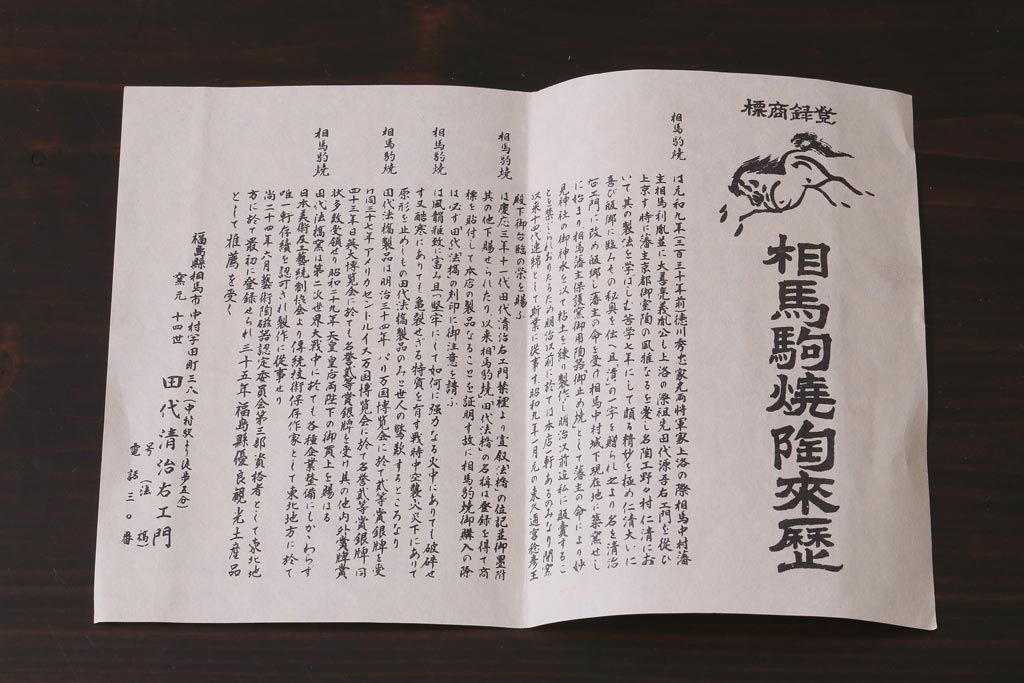 昭和中期 田代法橋(清治右衛門) 共箱付き 相馬駒焼 煎茶器セット(急須、湯冷まし、湯呑み5客)