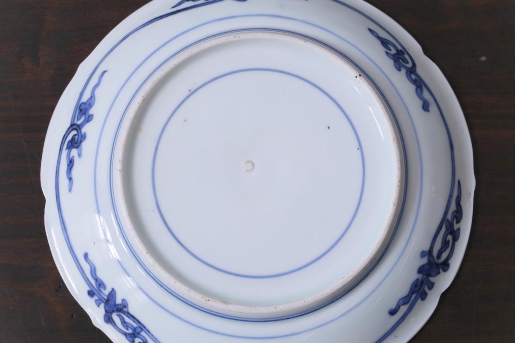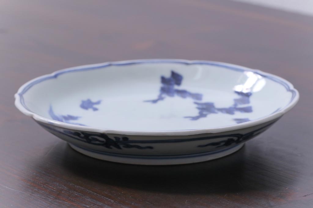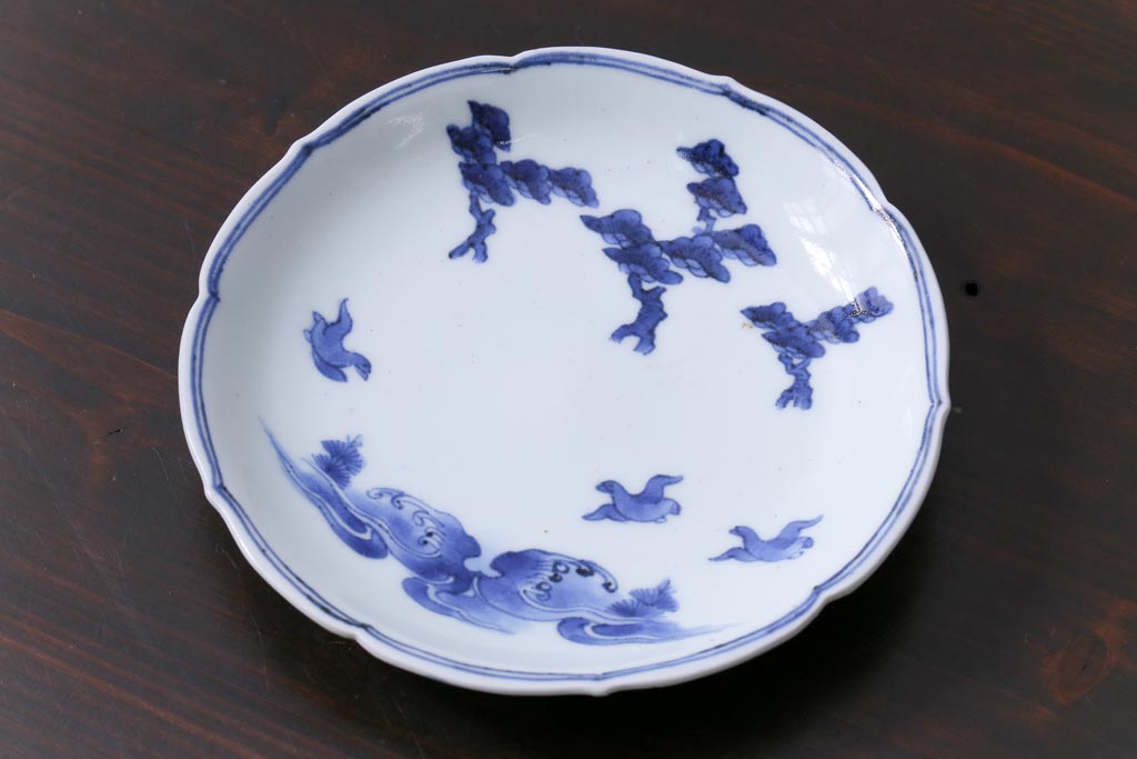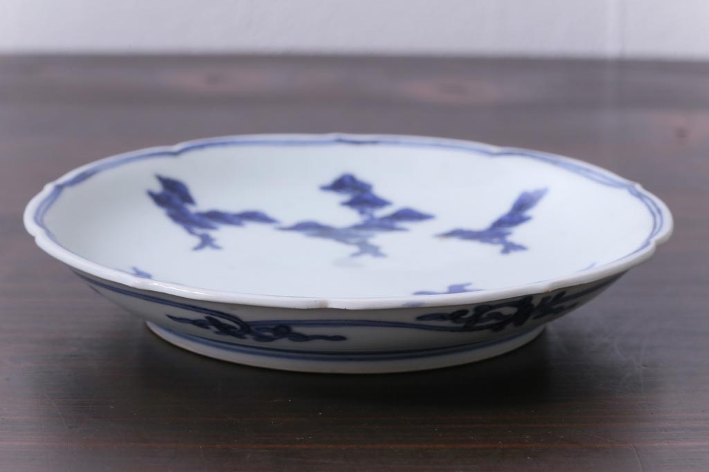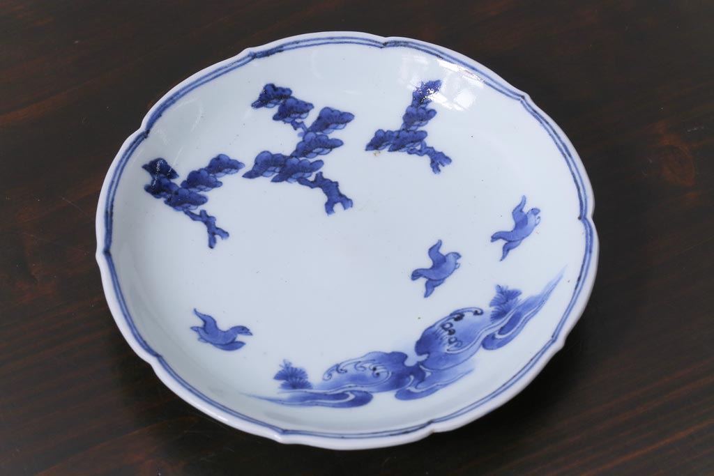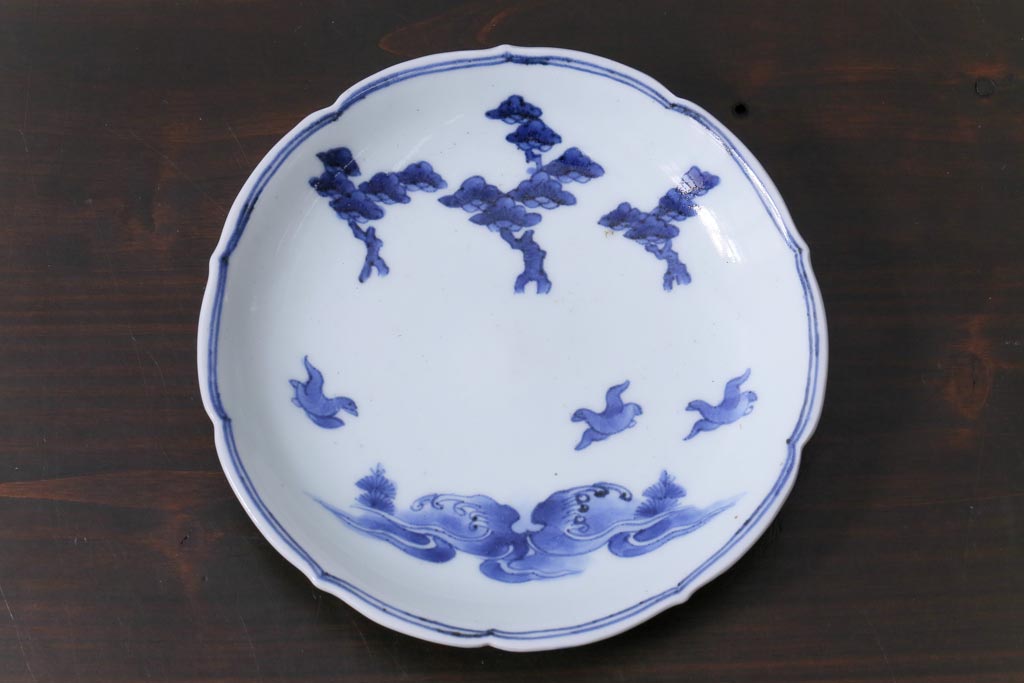 ラフジュ工房> 和食器・茶道具> 皿 > 古民具・骨董 江戸期 古伊万里 藍九谷 松と鴎 変形皿(中皿、和食器)(2)