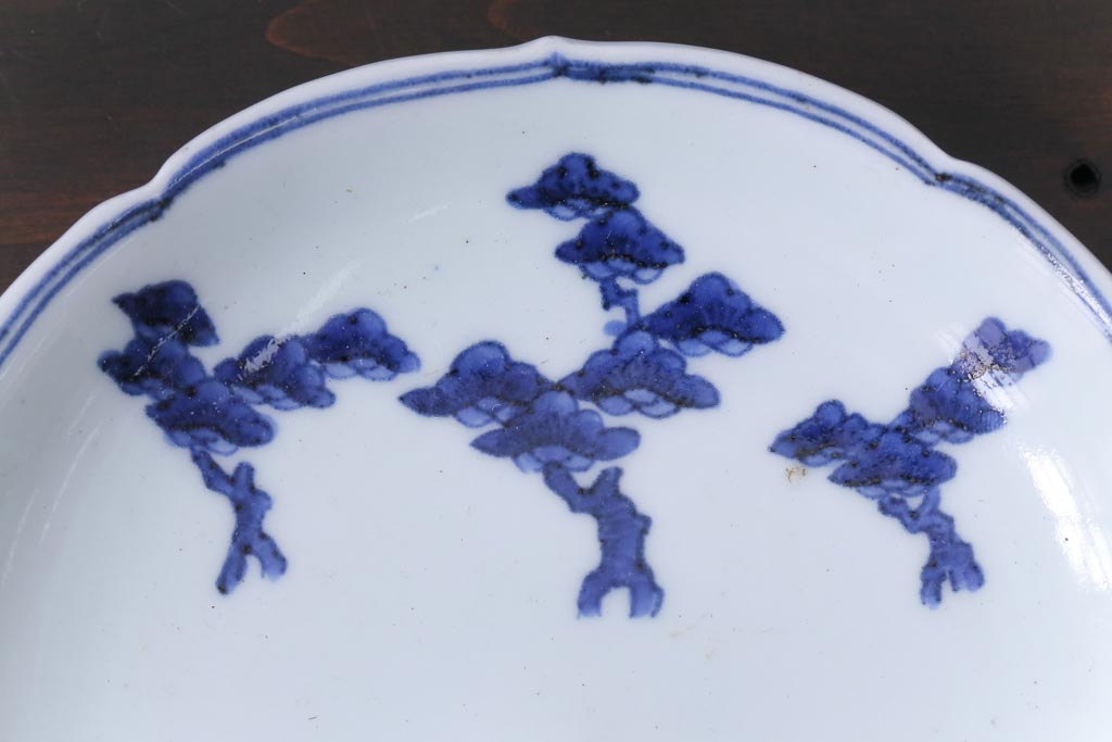 古民具・骨董 江戸期 古伊万里 藍九谷 松と鴎 変形皿(中皿、和食器)(2)