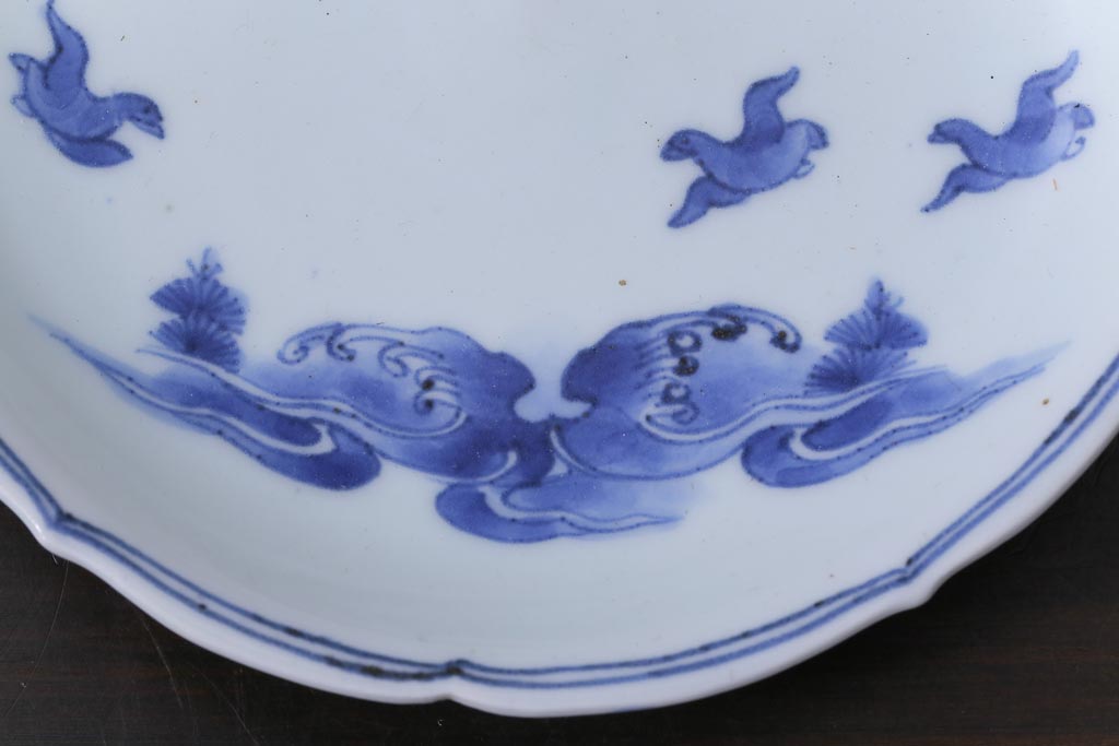 ラフジュ工房> 骨董・美術品 > 古民具・骨董 江戸期 古伊万里 藍九谷 松と鴎 変形皿(中皿、和食器)(2)