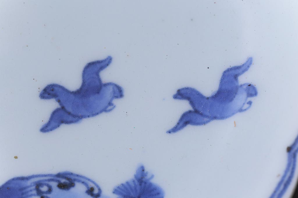ラフジュ工房> 骨董・美術品> 骨董-陶磁器 > 古民具・骨董 江戸期 古伊万里 藍九谷 松と鴎 変形皿(中皿、和食器)(2)