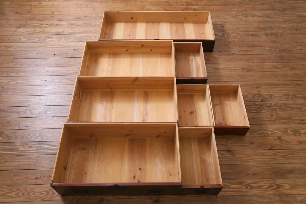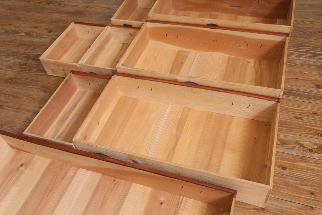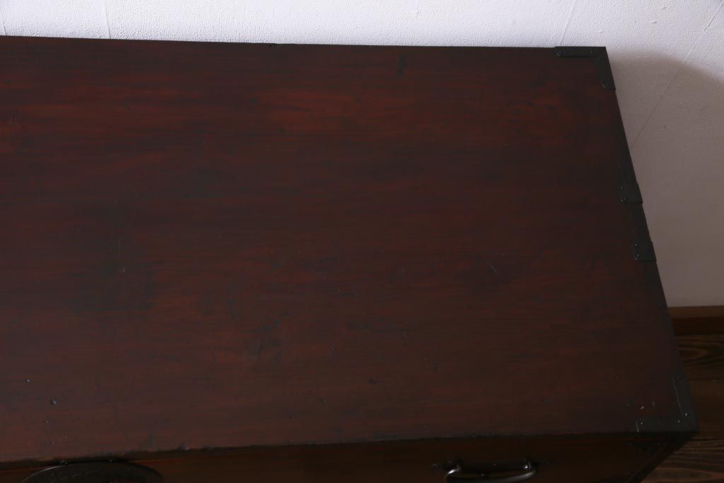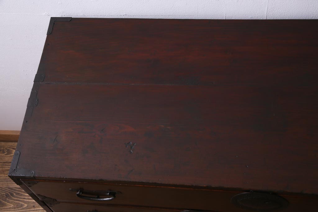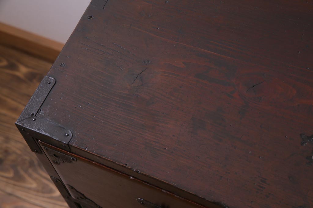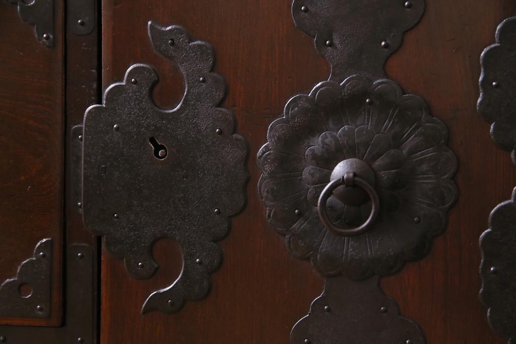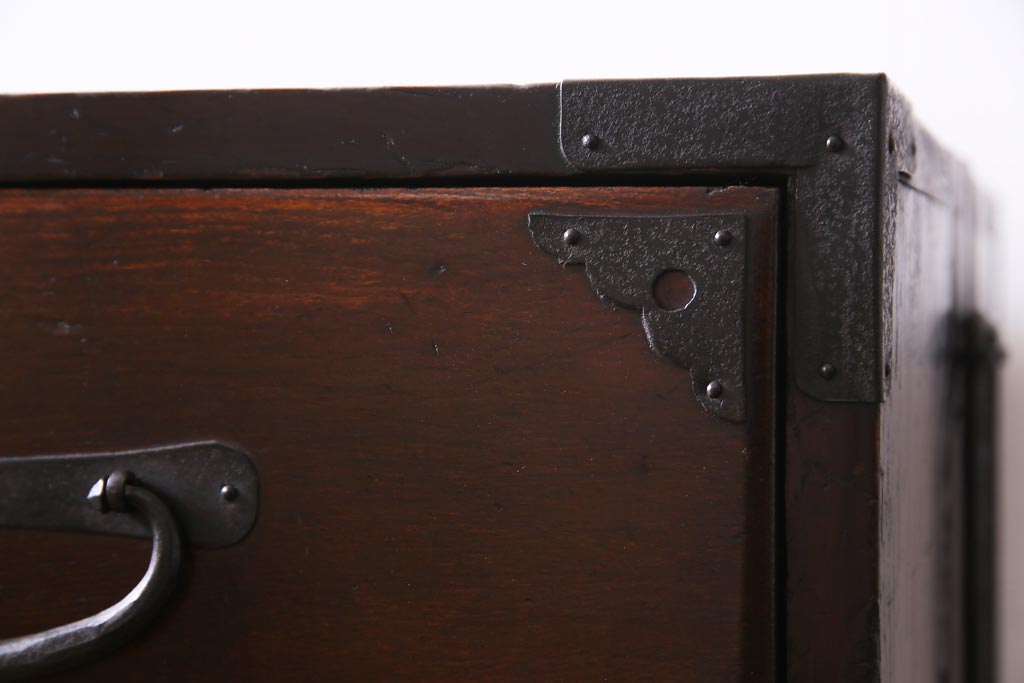 アンティーク家具 和製アンティーク 前面ケヤキ材 立体的な意匠が目を引く仙台箪笥(野郎箪笥、衣装箪笥、和タンス、引き出し)