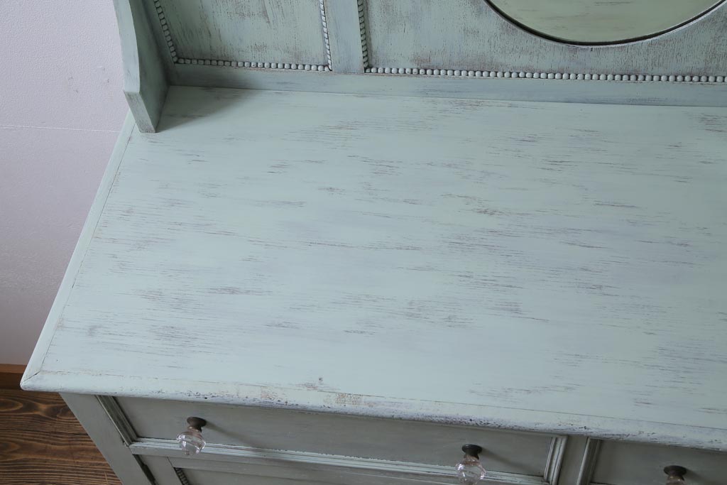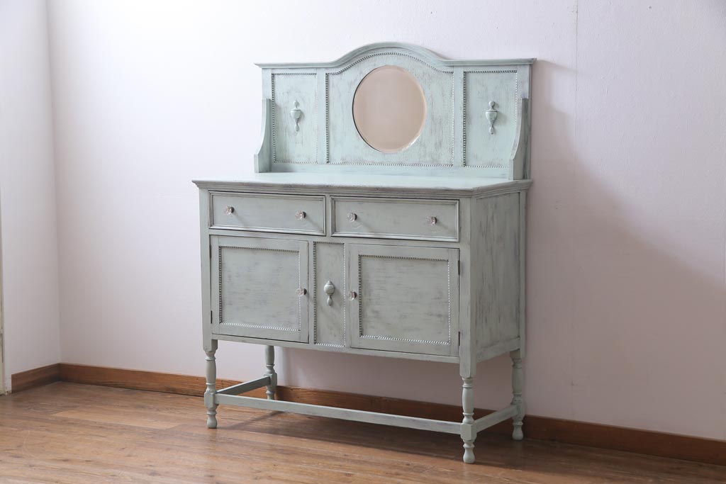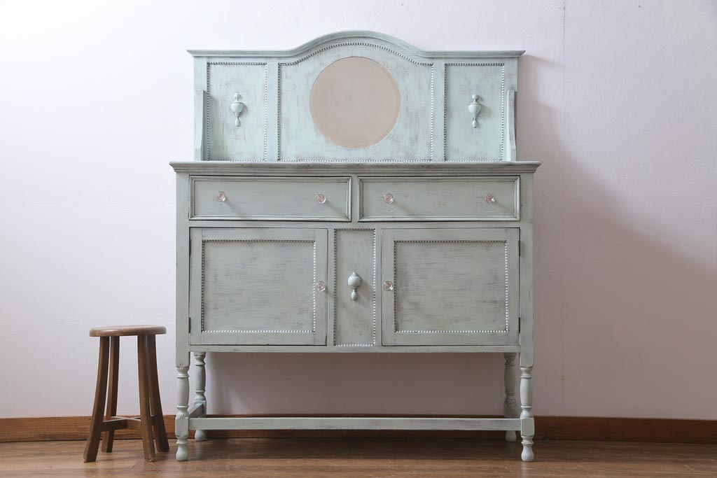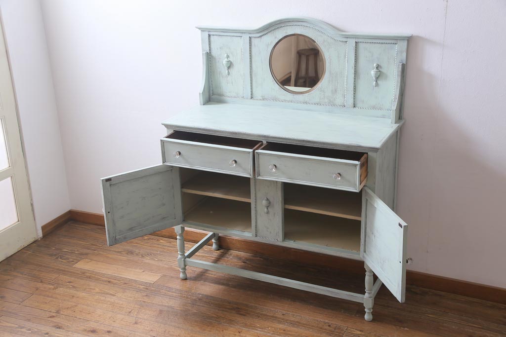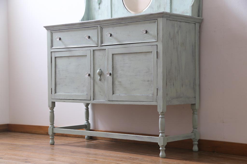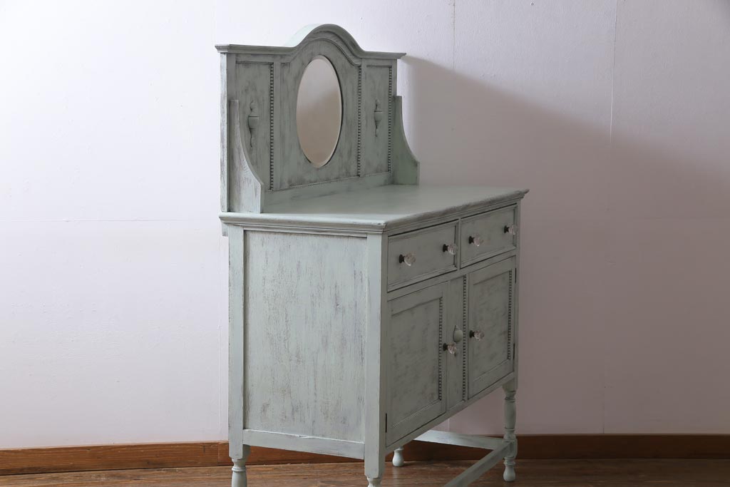 アンティーク家具 フランスアンティーク シャビーな風合いがおしゃれな鏡付きのペイントサイドボード(ドレッシングチェスト)