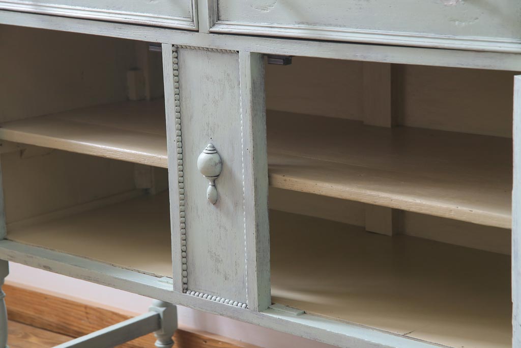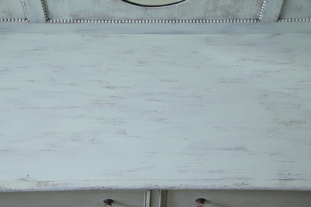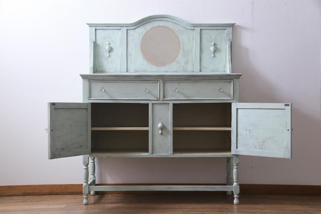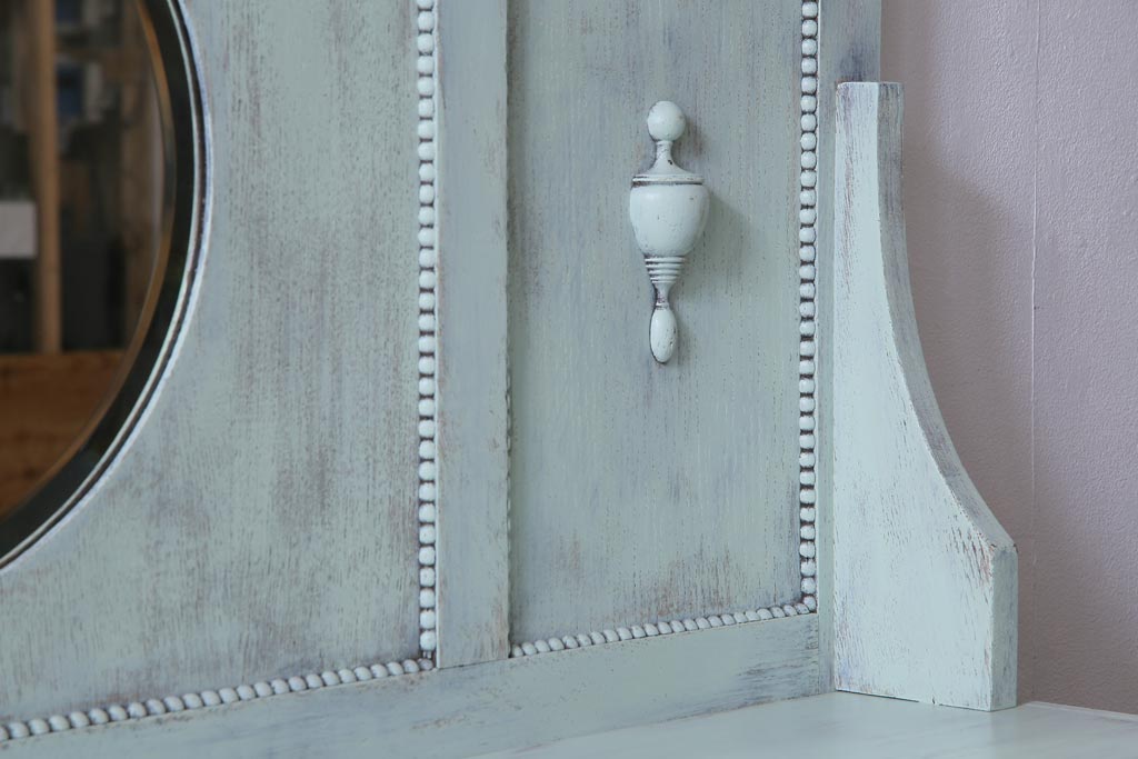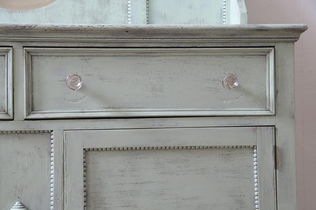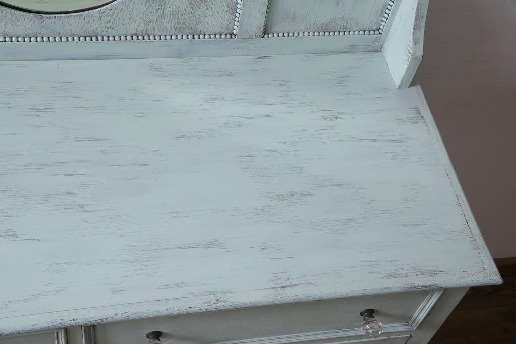 アンティーク家具 フランスアンティーク シャビーな風合いがおしゃれな鏡付きのペイントサイドボード(ドレッシングチェスト)