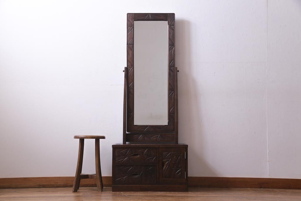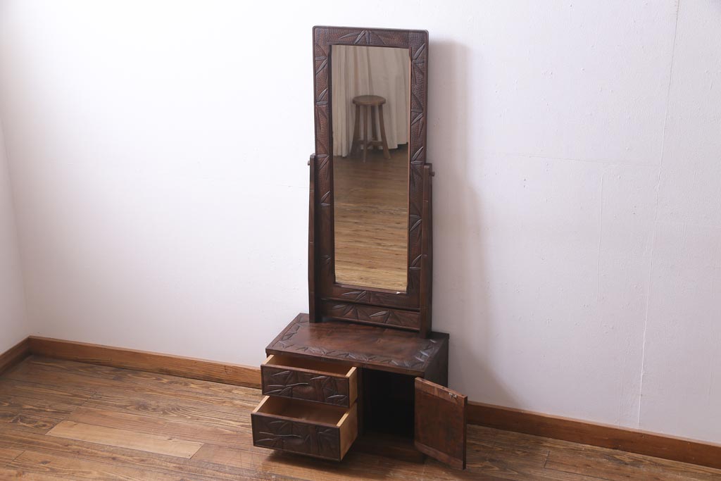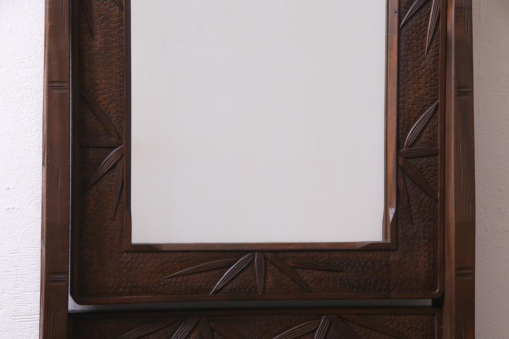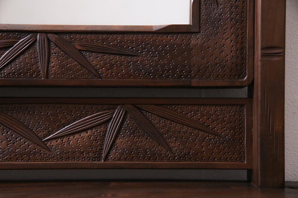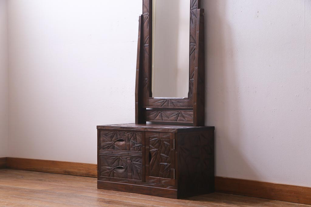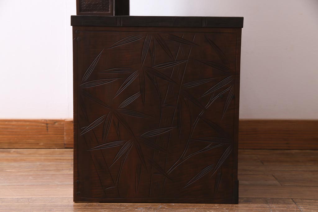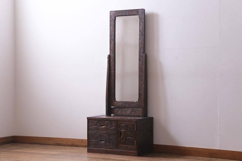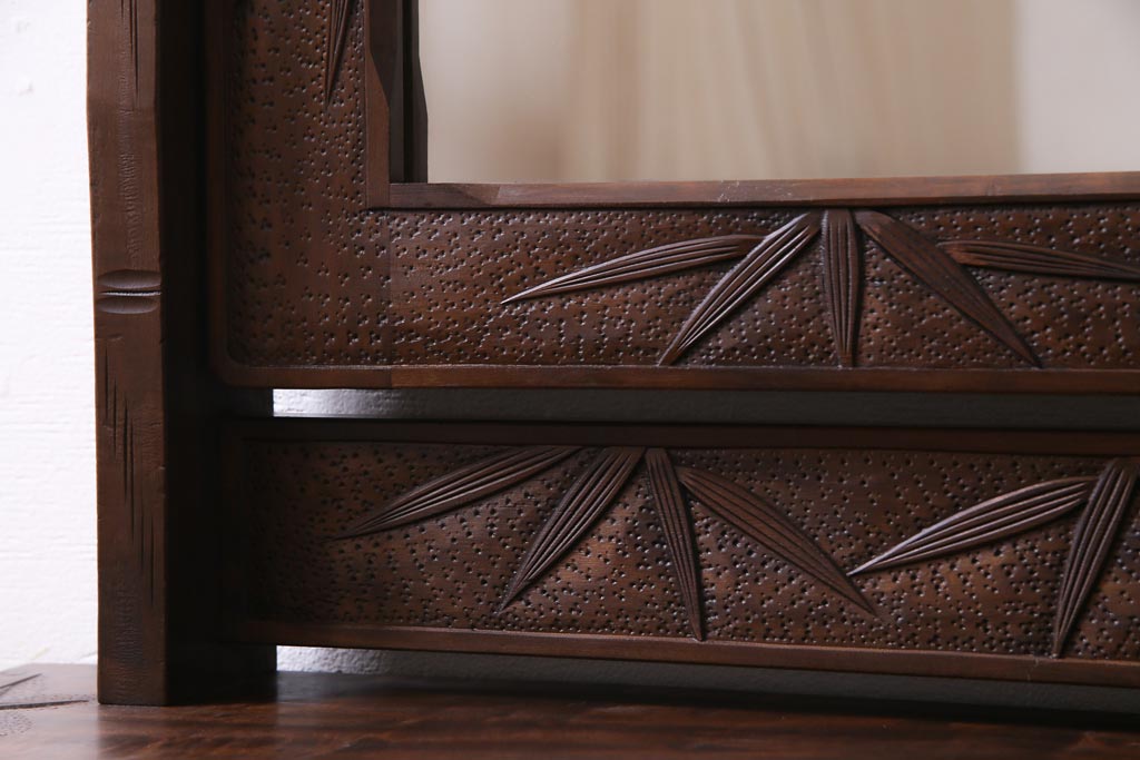 中古 伝統工芸 軽井沢彫り 情緒あふれる竹の意匠が見事なドレッサー(鏡台、ミラー)