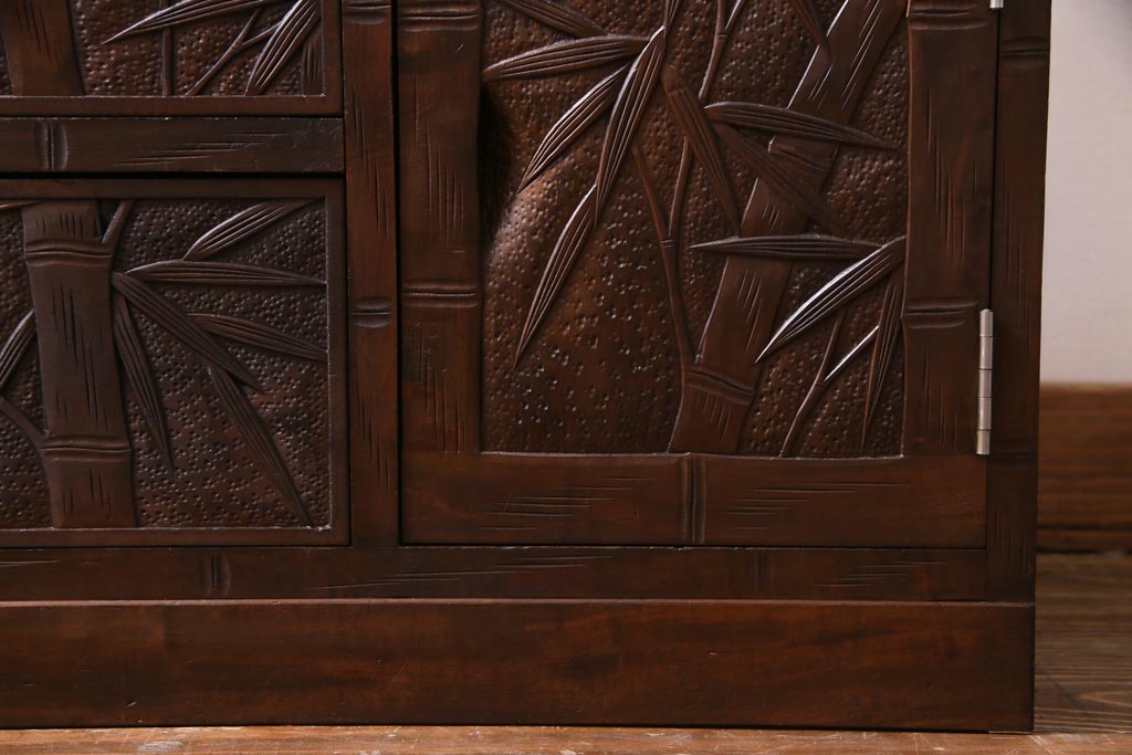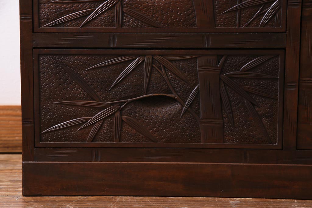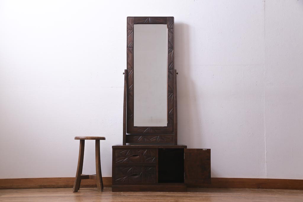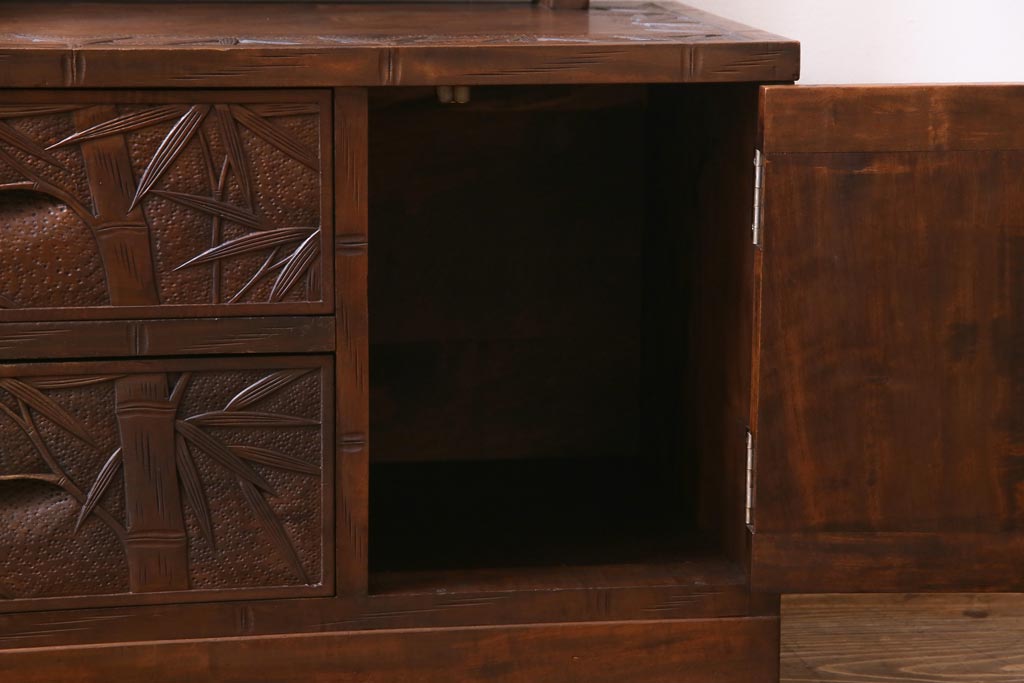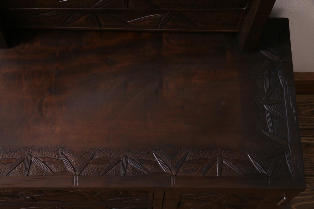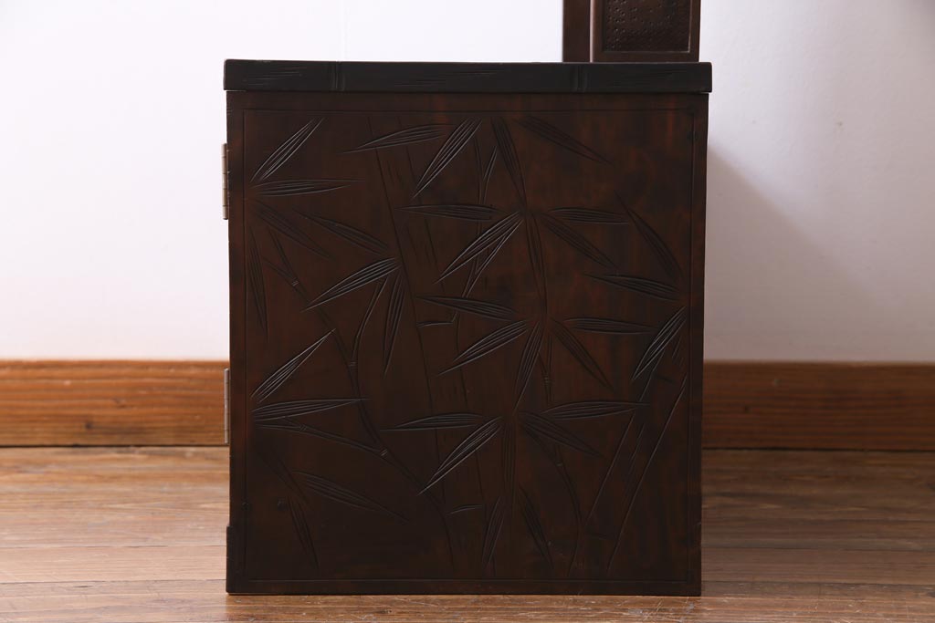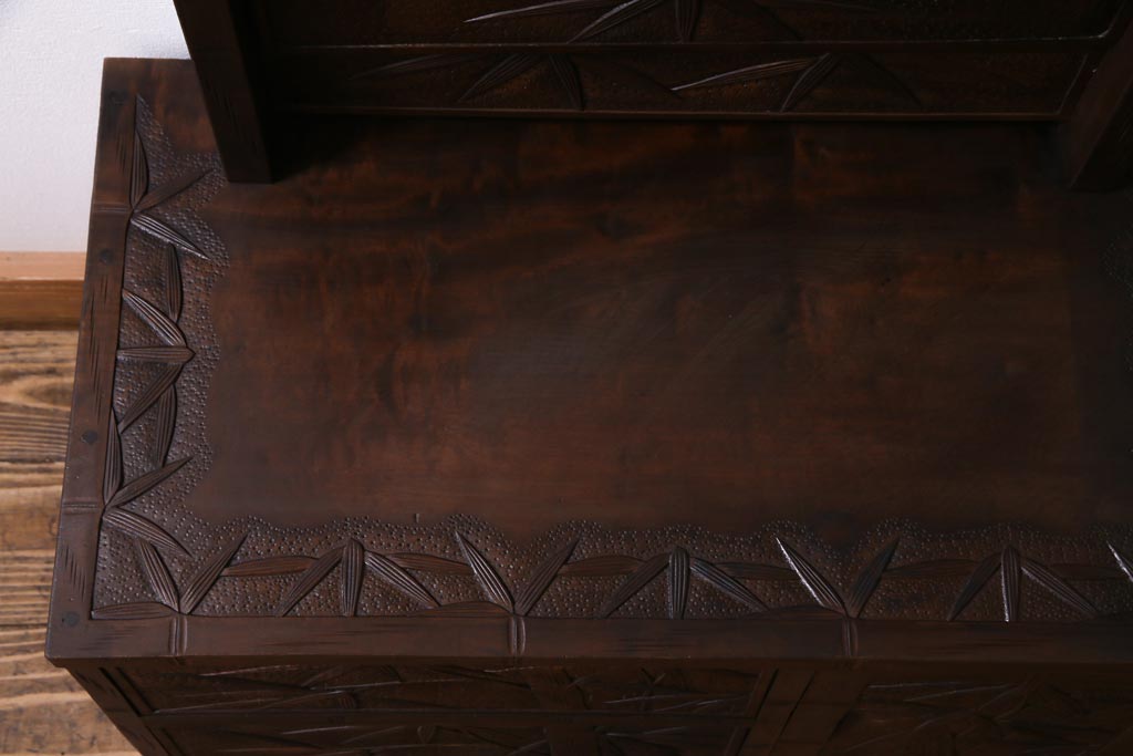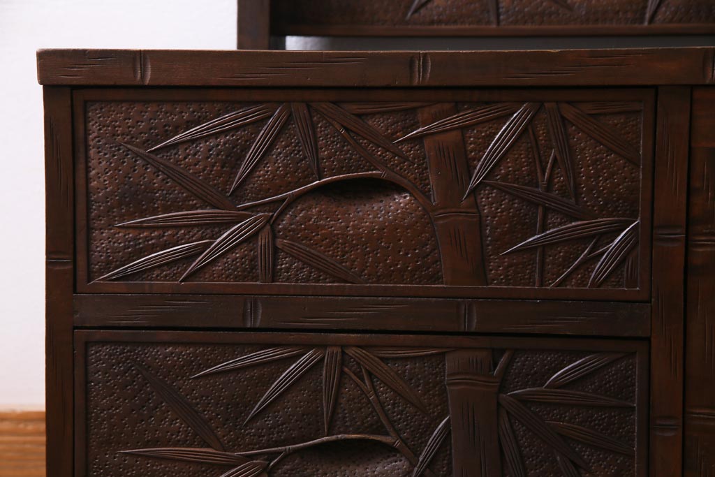 中古 伝統工芸 軽井沢彫り 情緒あふれる竹の意匠が見事なドレッサー(鏡台、ミラー)