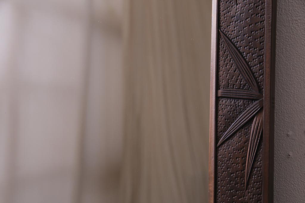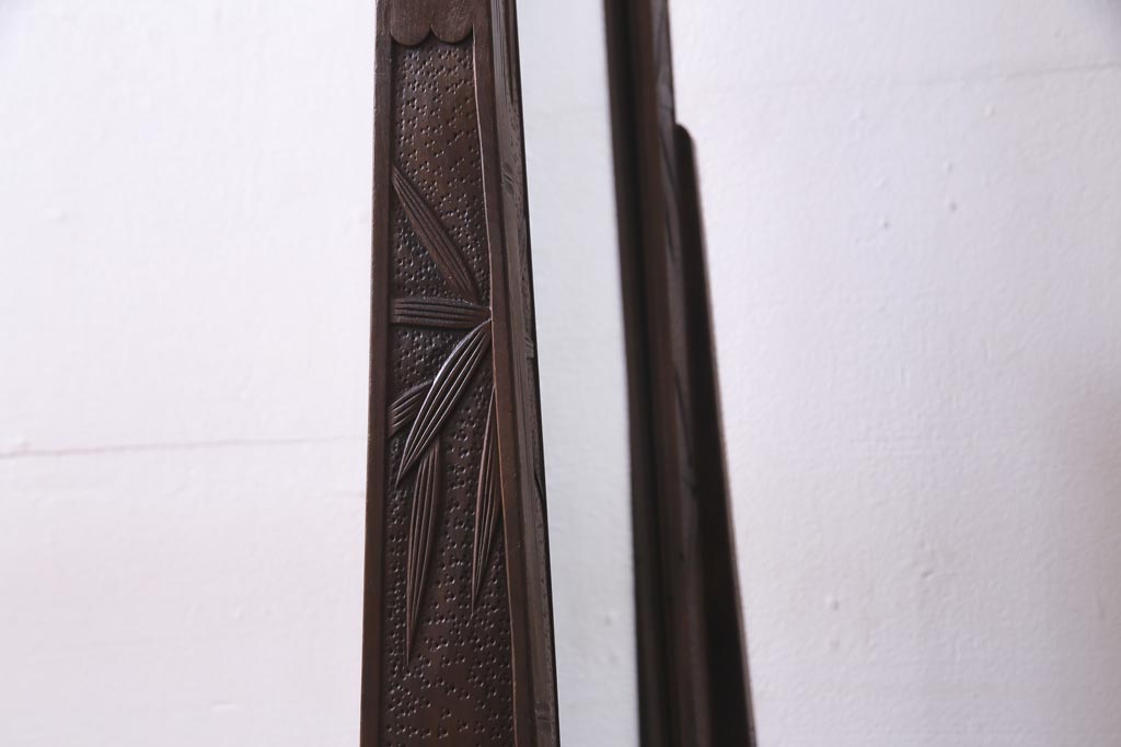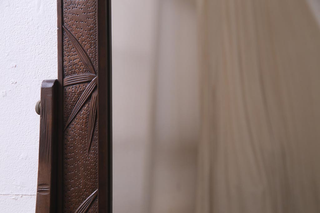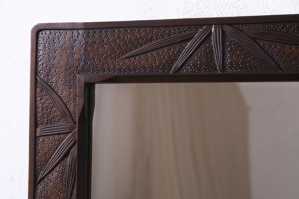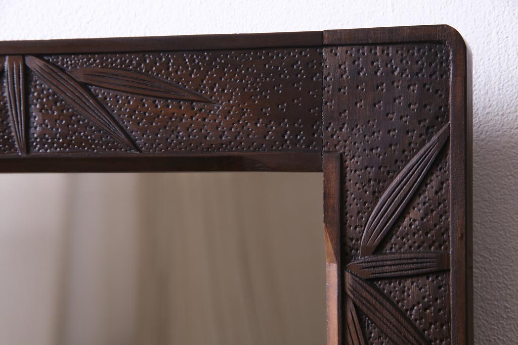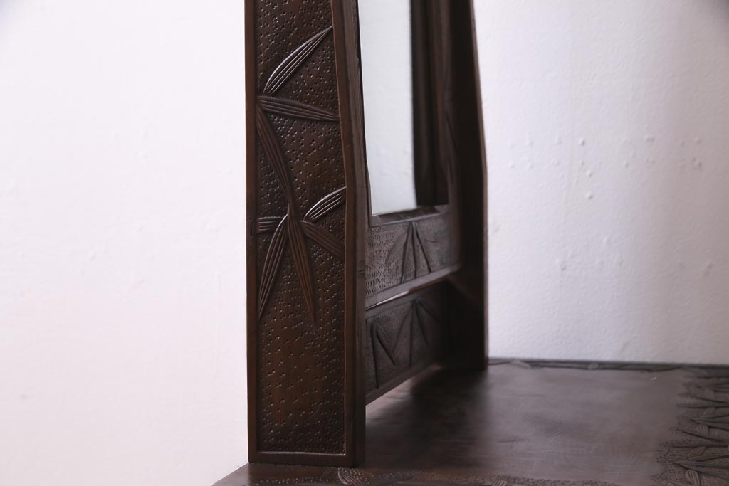 中古 伝統工芸 軽井沢彫り 情緒あふれる竹の意匠が見事なドレッサー(鏡台、ミラー)です。
