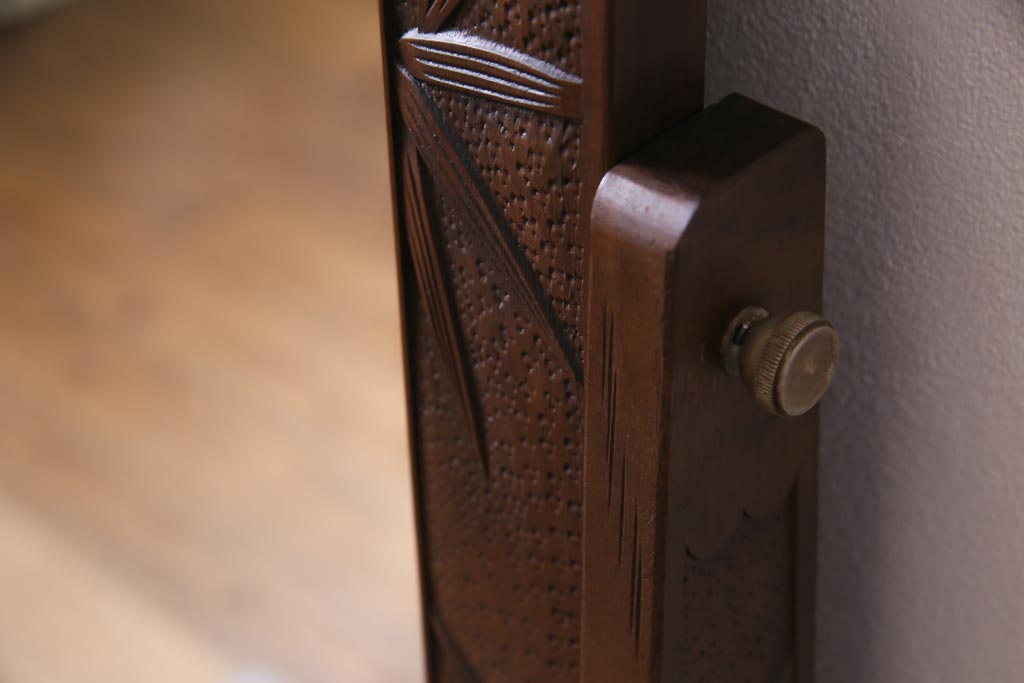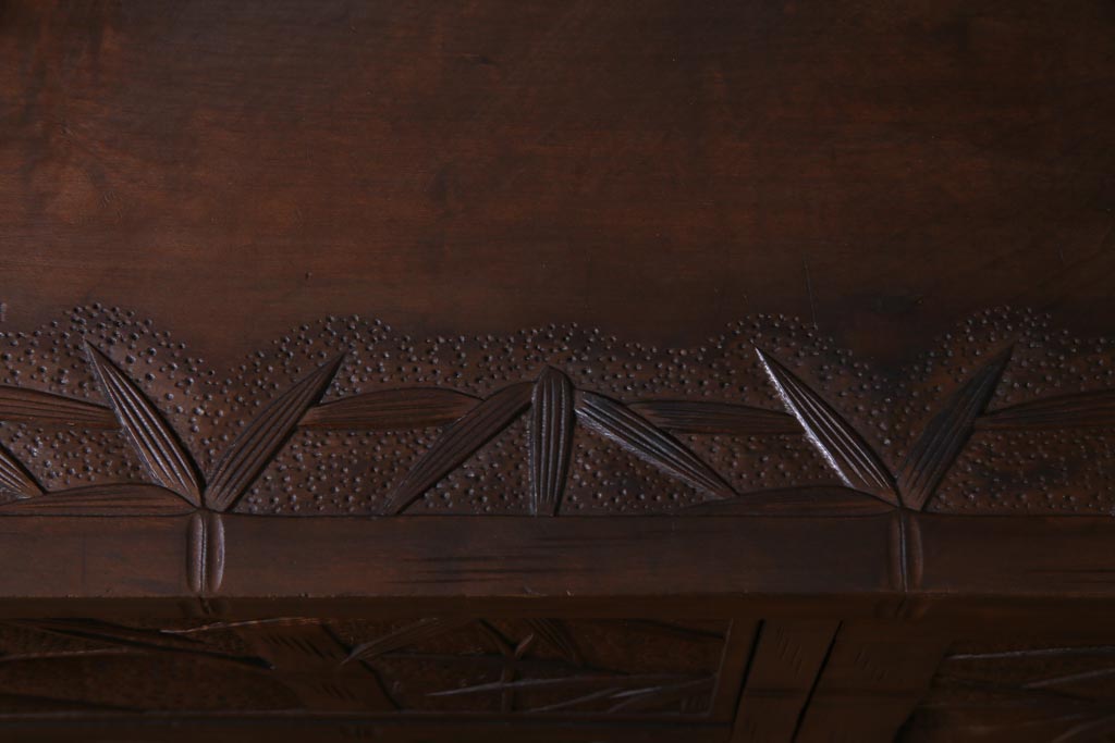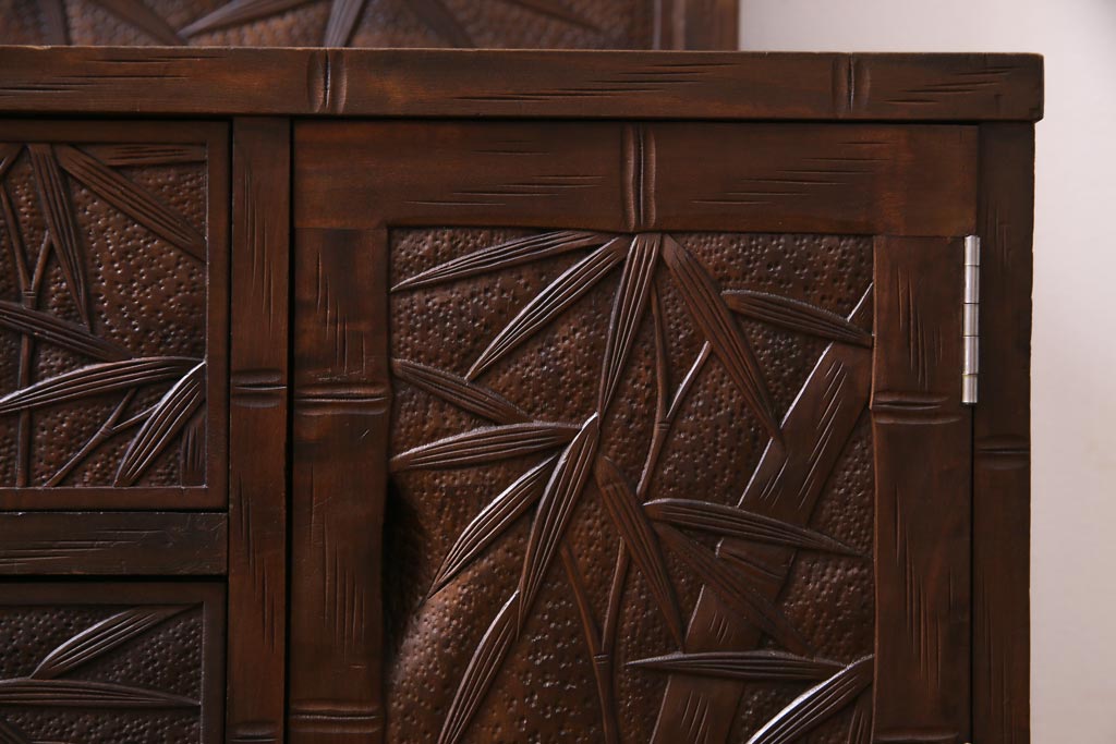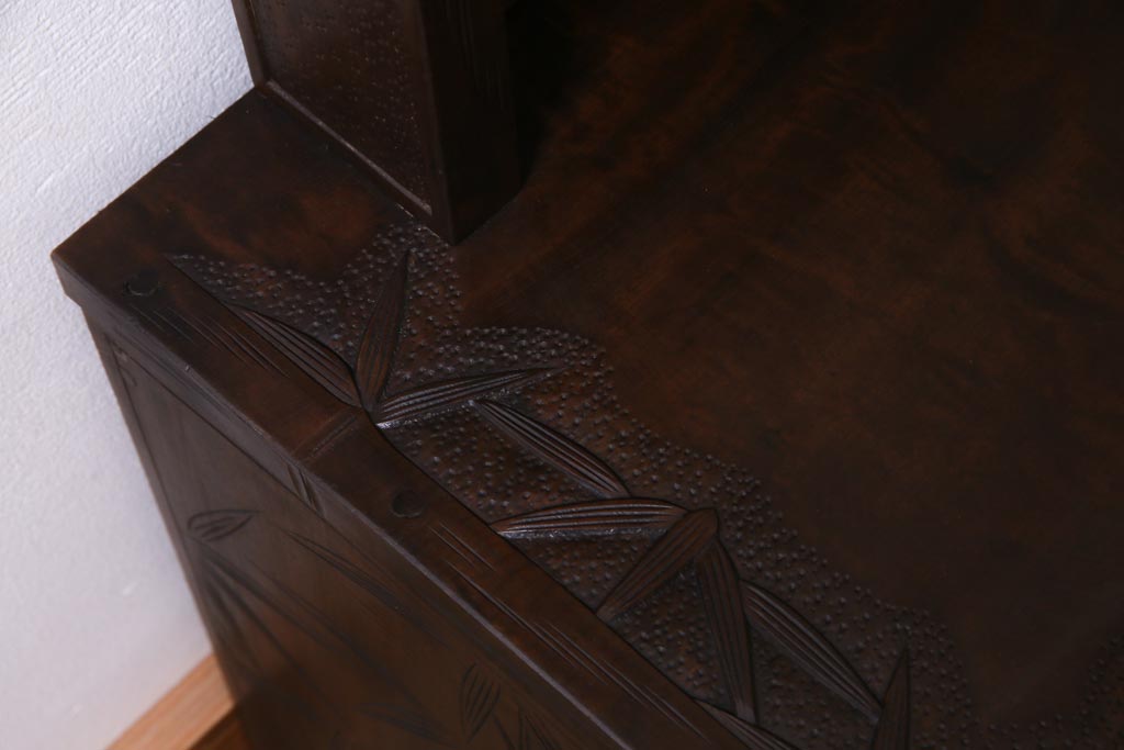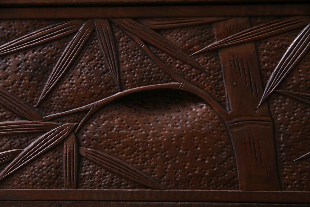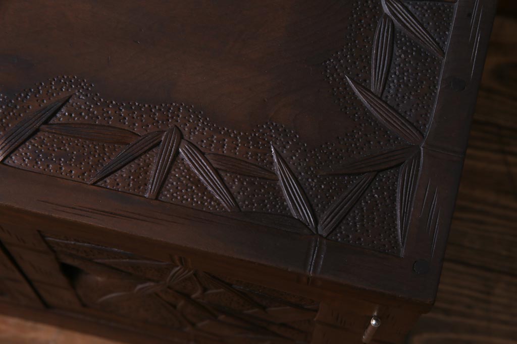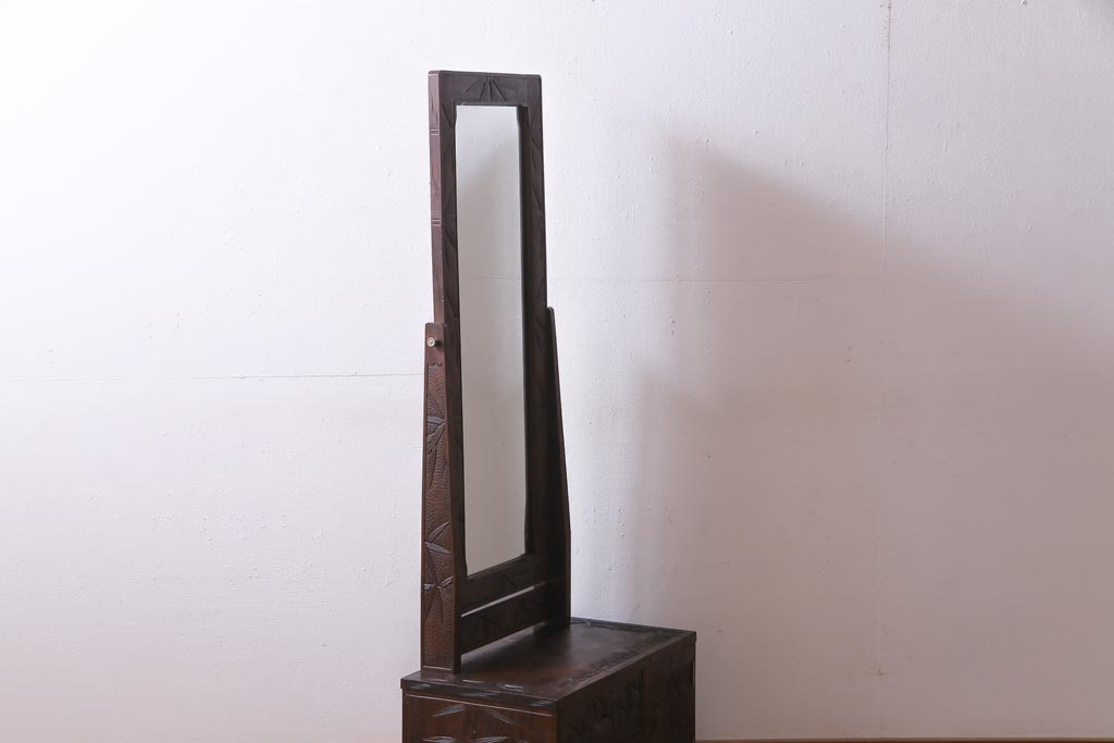 中古 伝統工芸 軽井沢彫り 情緒あふれる竹の意匠が見事なドレッサー(鏡台、ミラー)です。
