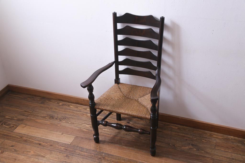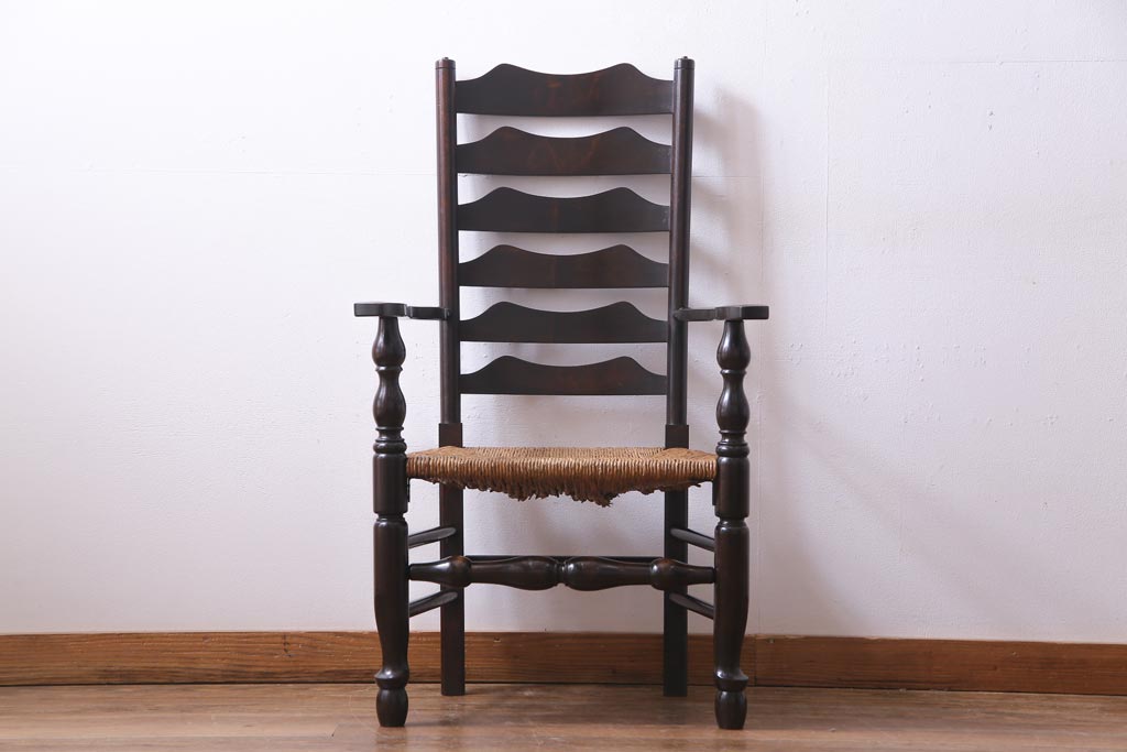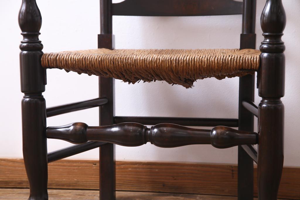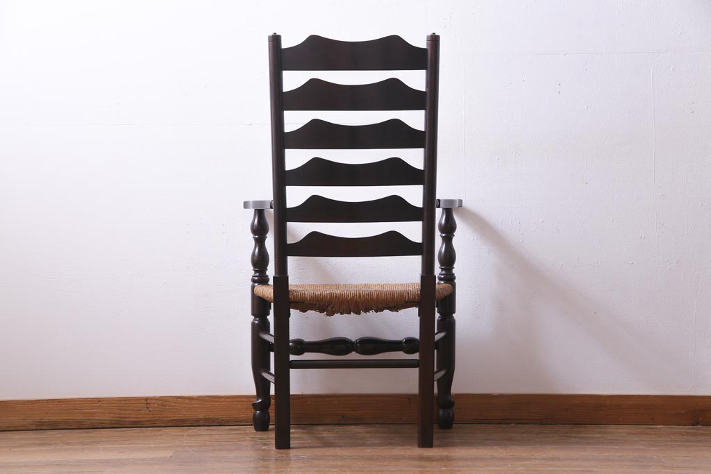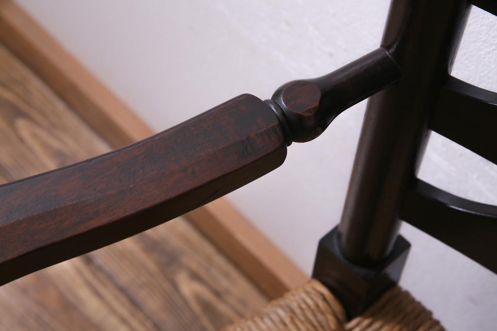 椅子・ベンチ> アームチェア > ビンテージ 松本民芸家具 #23型 ラッシ座面 山並みの背貫が素敵なラダーバックチェア(椅子)(定価約17.2万円)(3)