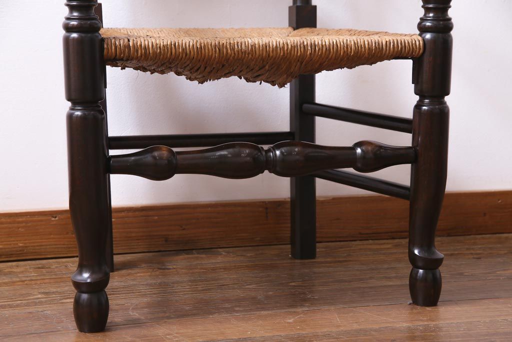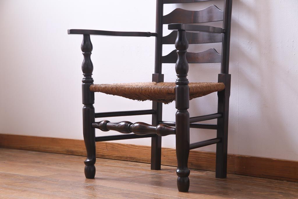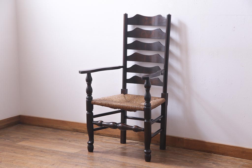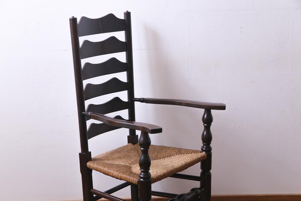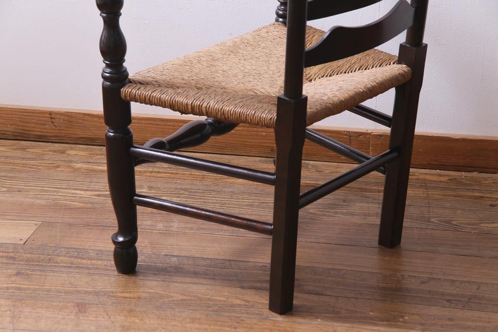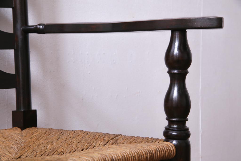 椅子・ベンチ> アームチェア > ビンテージ 松本民芸家具 #23型 ラッシ座面 山並みの背貫が素敵なラダーバックチェア(椅子)(定価約17.2万円)(3)